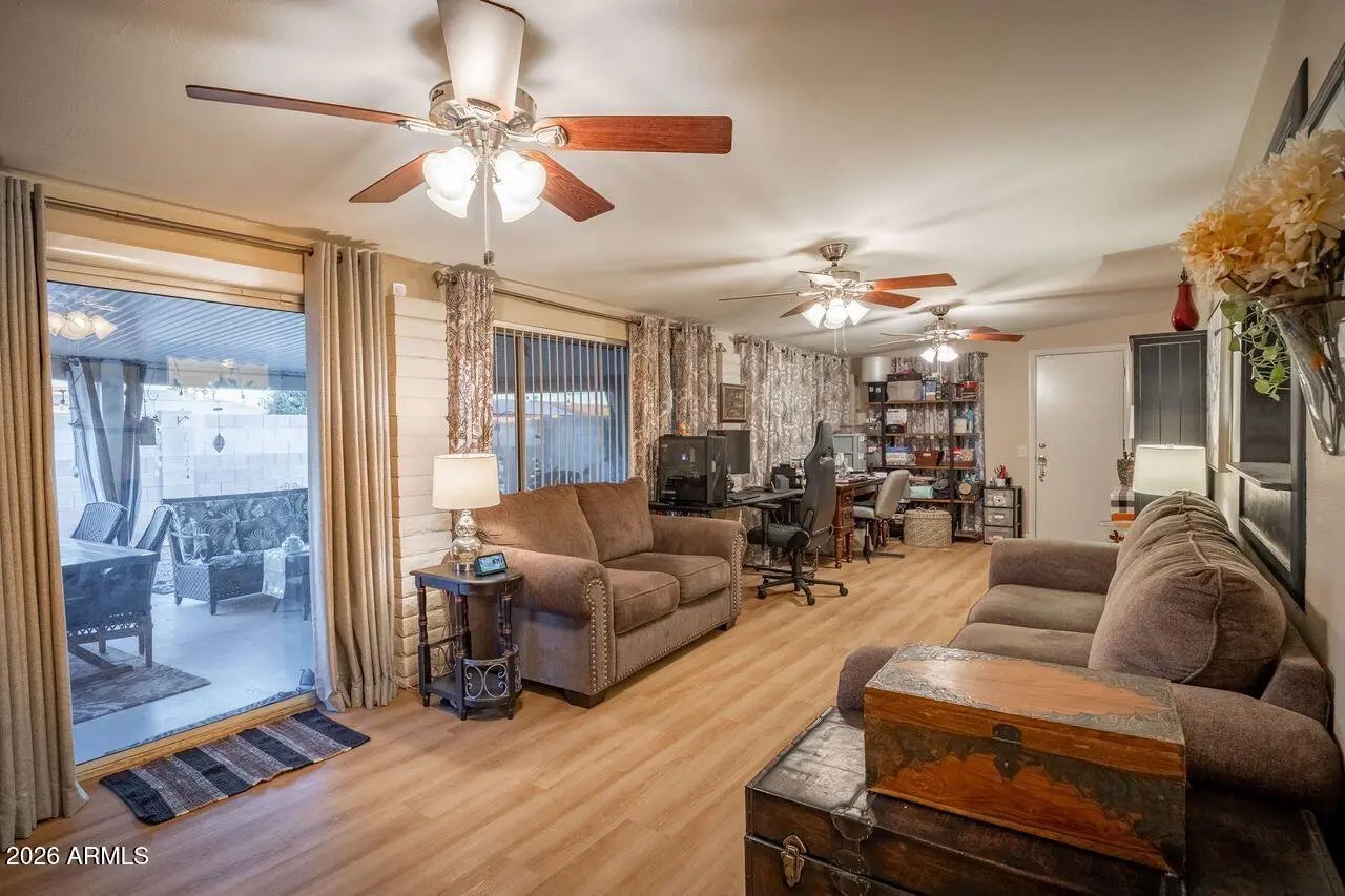 Welcome to this charming home in the heart of Sun City! Offering 2 spacious bedrooms, 2 bathrooms, and approximately 1,600 square feet, this well-maintained residence sits on an oversized lot with plenty of room to enjoy Arizona's beautiful weather. The functional floor plan provides generous living space, abundant natural light, and great potential to personalize. Located just minutes from Palmbrook Golf Club and close to recreation centers, shopping, and dining, this home offers the perfect blend of comfort, convenience, and active adult living. Don't miss this opportunity to enjoy all that Sun City has to offer!