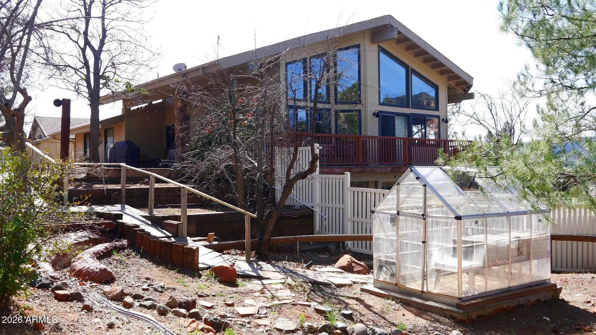 Welcome to the VOC! The Village of Oak Creek has it all. Beautiful red rocks, and excellent views along with shopping and tons of restaurants. Super convenient location only 10 minutes from I 17 and about the same amount of time to uptown Sedona. Tucked away on a quiet cul-de-sac off of Jacks Canyon Rd. This home boasts two primary suites with one on each level and main living with two guest bedrooms on the upper level. All of the very spacious bedrooms have outdoor access for convenience and enjoyment of the property. You'll love the wrap around deck for entertaining and gorgeous view of the Sedona sunsets. Come and take a look! This might be the one!