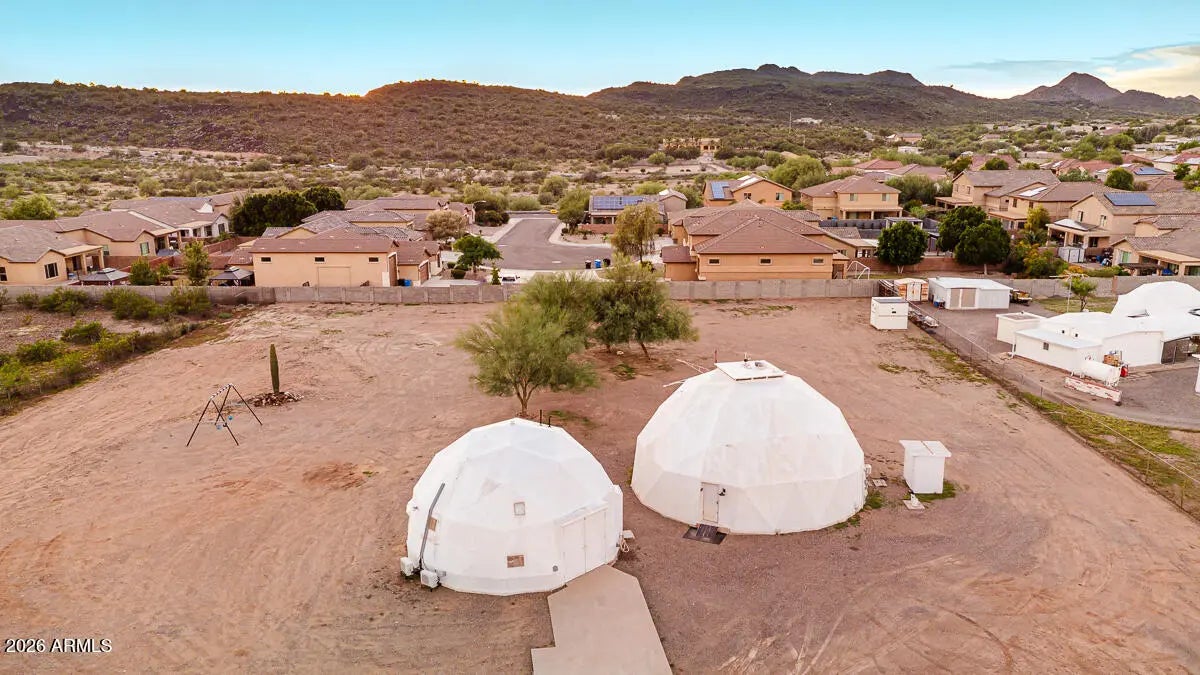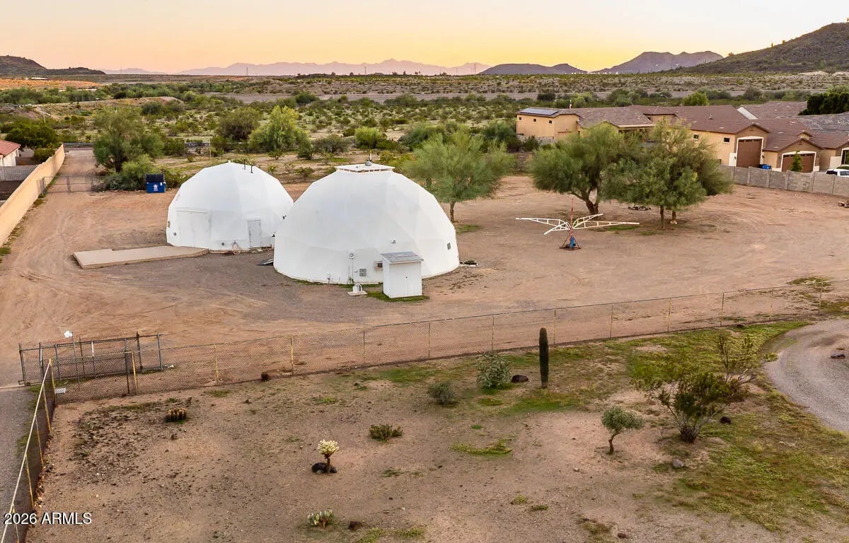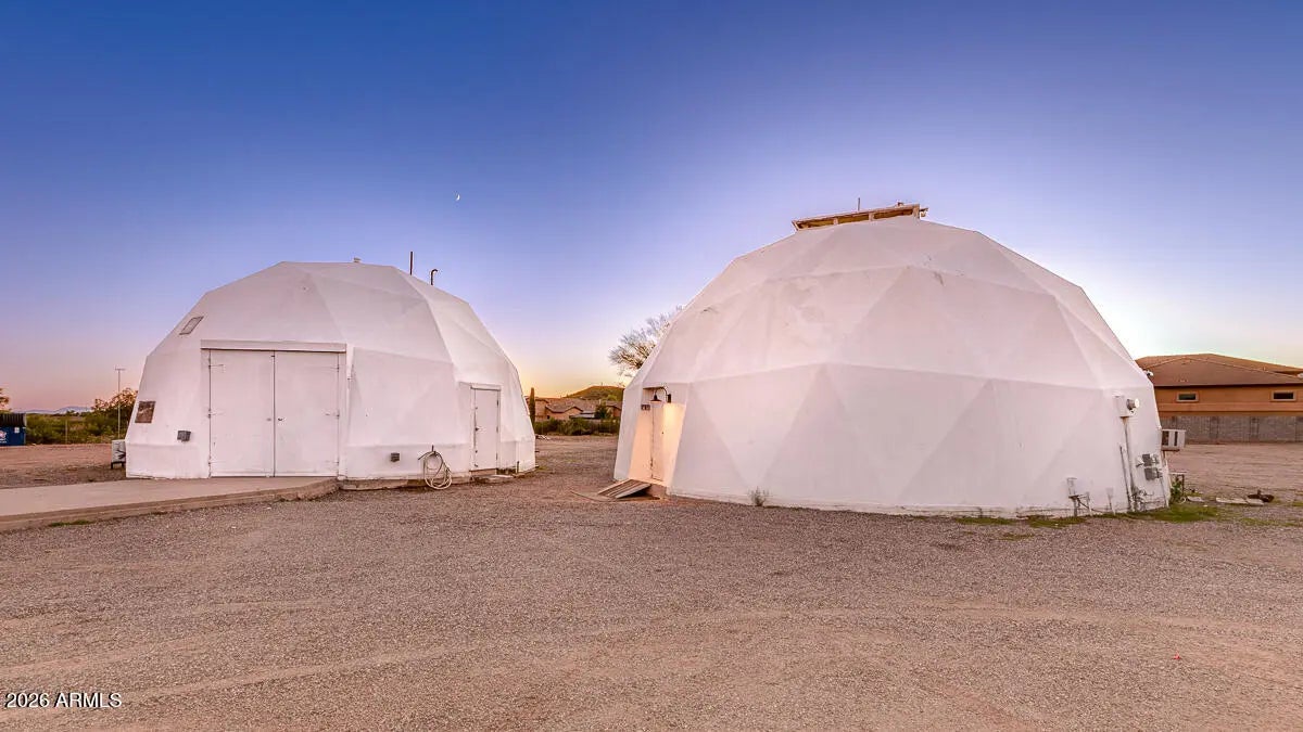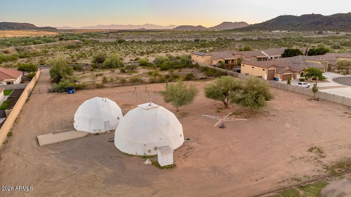 Calling all savvy builders, niche investors, and vision-driven buyers -- this is the kind of property you hold, expand, and capitalize on. Set on over an acre in North Phoenix with private well, septic, and electric already in place, this upgraded property offers unmatched flexibility for redevelopment, expansion, short-term rental concepts, or a one-of-a-kind desert compound. The two geodesic domes total approximately 2,408 sq ft (owner taped): • The smaller dome (approx. 771 sq ft down + 380 sq ft up) is fully livable and features a full kitchen with farmhouse sink, RO system, and upstairs primary bedroom/bath -- ideal to occupy while you build or reposition the property. •Larger dome primed for completion or creative reconfiguration. strategic acquisition with multiple exit