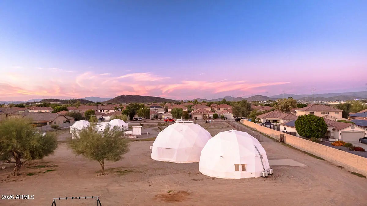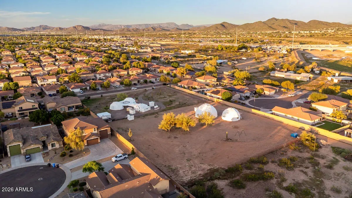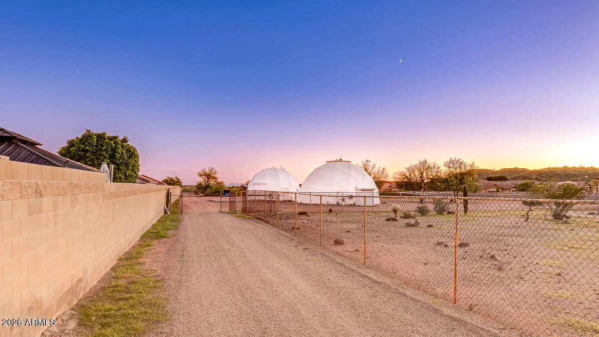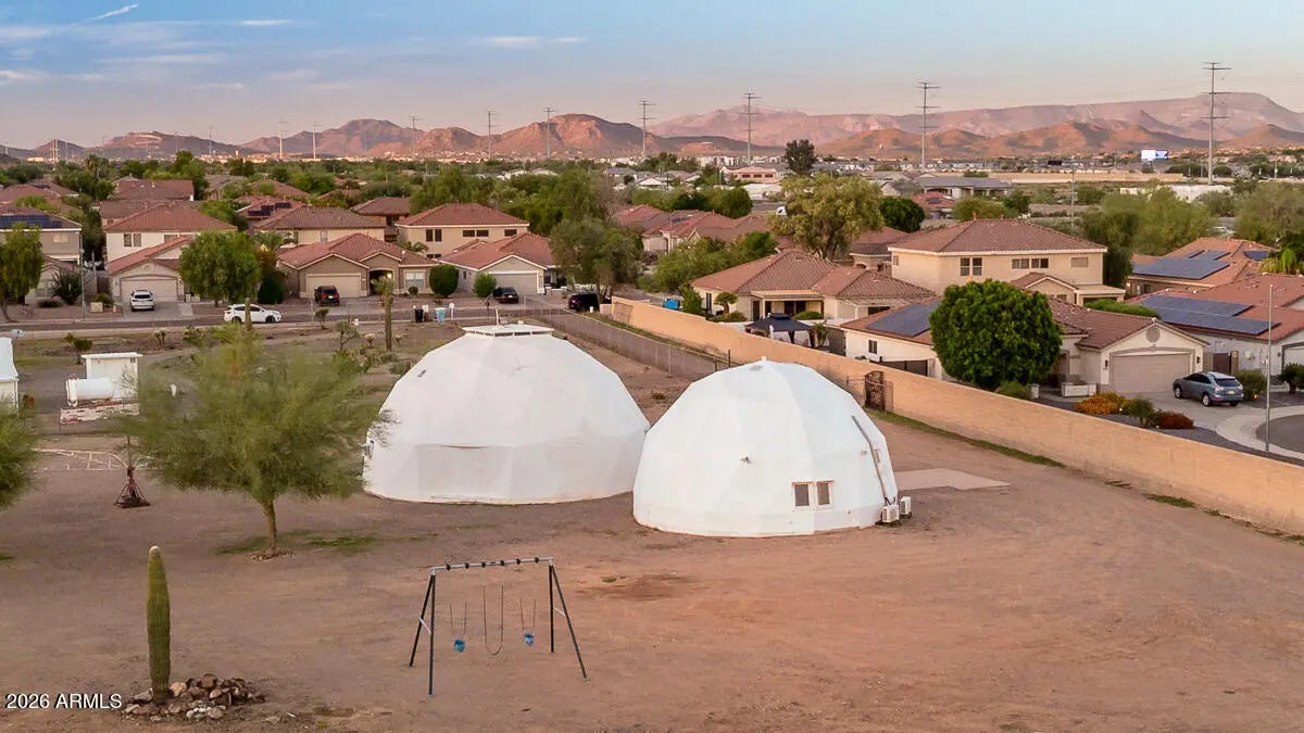 Calling all savvy builders, niche investors, and vision-driven buyers -- this is the kind of property you hold, expand, and capitalize on. Set on over an acre in North Phoenix with private well, septic, and electric already in place, this upgraded property offers unmatched flexibility for redevelopment, expansion, short-term rental concepts, or a one-of-a-kind desert compound. The two geodesic domes total approximately 2,408 sq ft (owner taped): • The smaller dome (approx. 771 sq ft down + 380 sq ft up) is fully livable and features a full kitchen with farmhouse sink, RO system, and upstairs primary bedroom/bath -- ideal to occupy while you build or reposition the property. •Larger dome primed for completion or creative reconfiguration. strategic acquisition with multiple exit
