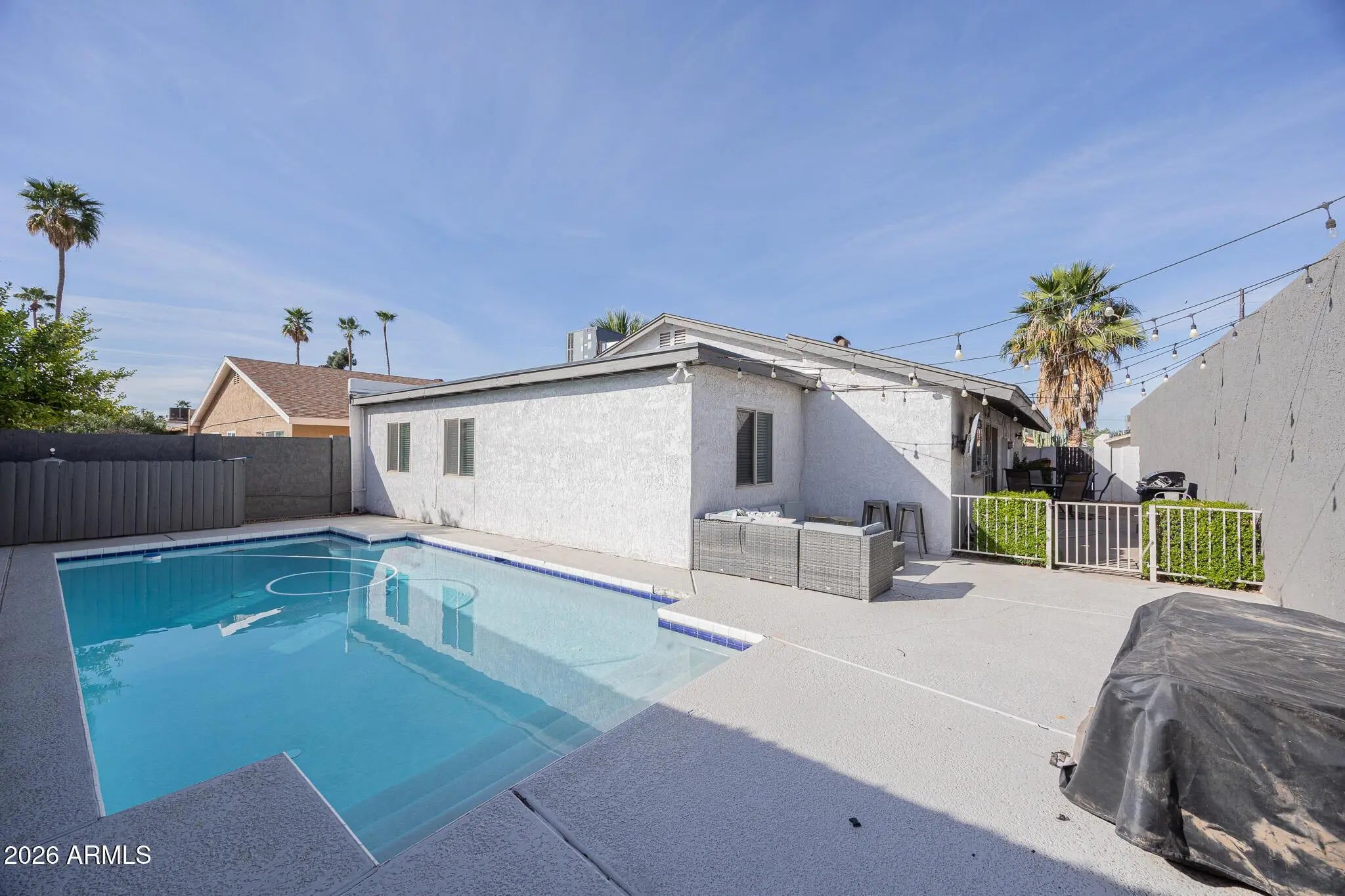 Stylish Living in this 4/2.5 Scottsdale House! Welcome to this beautiful 4-bed, 2.5-bath single-family home offering 1,659 sq ft of comfort in South Scottsdale. This ranch-style residence features vaulted ceilings, tile flooring, plush bedroom carpet, upgraded lighting, and a soothing neutral palette. The modern kitchen boasts granite countertops, stainless steel appliances, pendant lighting, and abundant cabinetry, while the spacious living area includes a large picture window and courtyard entry. Relax in upscale baths and enjoy the private backyard with a play pool - perfect for entertaining. With a 2-car garage and proximity to Old Town Scottsdale, Tempe, Papago Park, and major freeways, this home blends convenience, style, and lifestyle appeal.