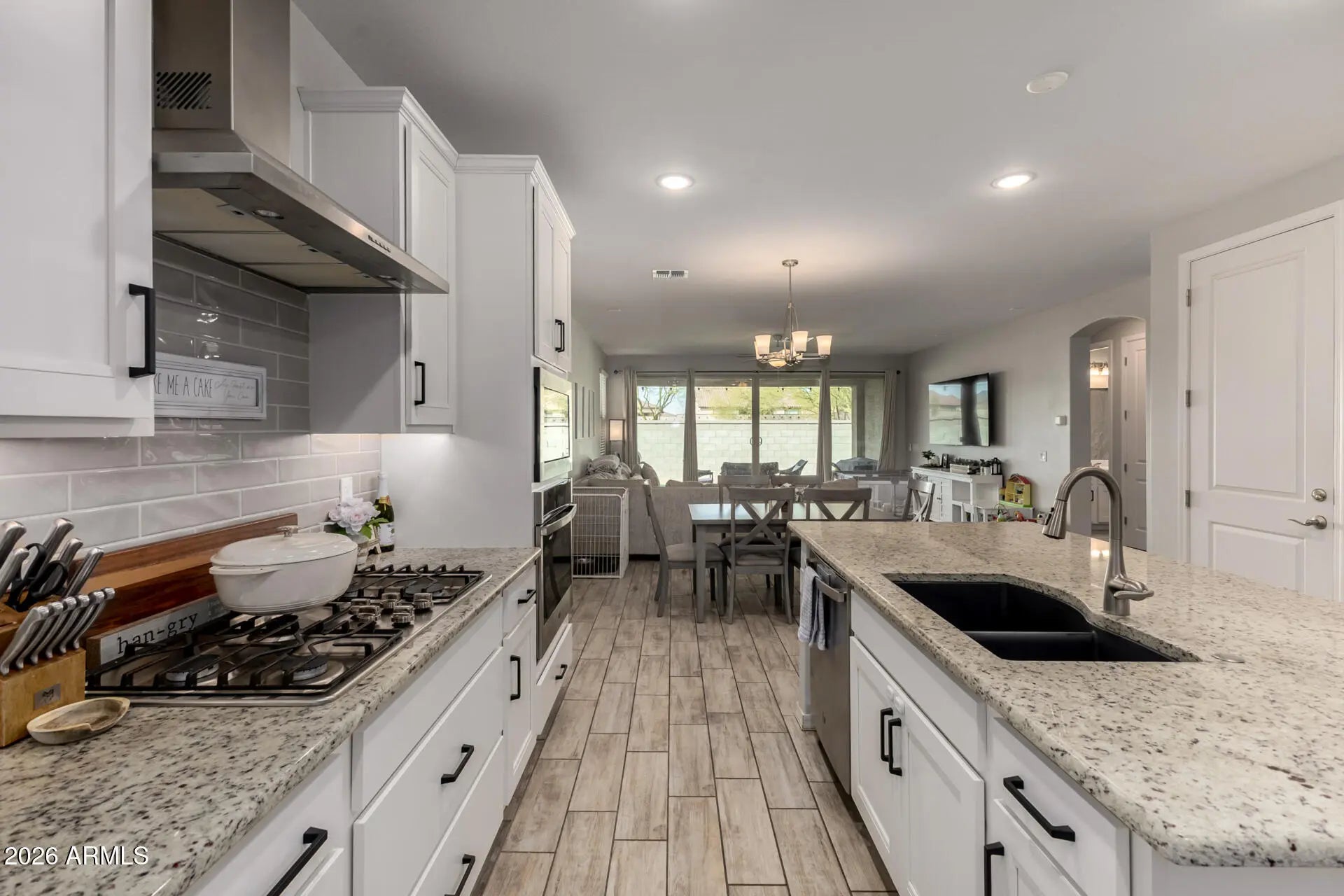 You'll love this beautiful 4-bed, 3-bath home in Escalante! Stone accent details, low-care landscape, front porch, & a 2-car garage w/paver driveway are just the beginning. The fabulous interior features tons of natural light, neutral paint, and soft carpet & wood-look tile floors t/out. The desirable great room is paired with multi-sliding doors to the back! The gourmet kitchen has granite counters, a pantry, ample white cabinets, tile backsplash, island w/breakfast bar, and SS appliances w/cooktop gas. One bedroom & one bathroom downstairs. Cozy loft awaits upstairs! Also including the main bedroom, boasting an ensuite with dual sinks, separate tub/shower, & a walk-in closet. Laundry room w/sink & cabinetry. Outback, you have a covered patio, artificial turf, &well-laid pavers. Just WOW!