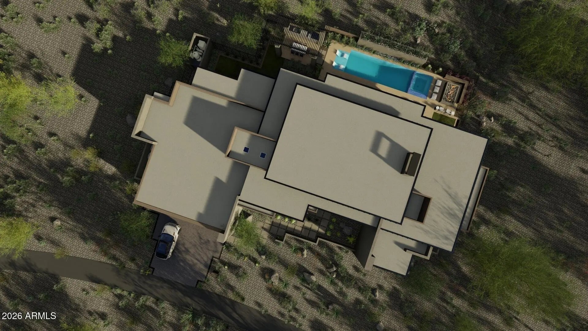 Experience luxury desert living in the prestigious gated community of Candlewood Estates at Troon North. This stunning new construction home offers 4,691 square feet, featuring 4 spacious bedrooms, an office and 6 bathrooms, thoughtfully designed for both comfort and sophisticated entertaining. Each bedroom includes its own private en-suite bathroom, providing comfort and privacy for family and guests alike. Enjoy breathtaking mountain and sunset views from expansive outdoor living spaces featuring a resort-style pool and spa, an outdoor shower, and large patios perfect for relaxing or hosting gatherings under the Arizona sky. Inside, the home showcases a designer kitchen equipped with high-end appliances, gas range, double ovens, and quartz countertops, creating the perfect space for culinary enthusiasts. The open living area features vaulted ceilings and a striking fireplace, bringing warmth and elegance to the heart of the home. Located within the highly sought-after Troon North golf course community, residents enjoy privacy, spectacular desert scenery, and world-class golf just moments away. This exceptional property blends modern luxury, thoughtful design, and stunning desert surroundings--an outstanding opportunity in one of North Scottsdale's most desirable communities.