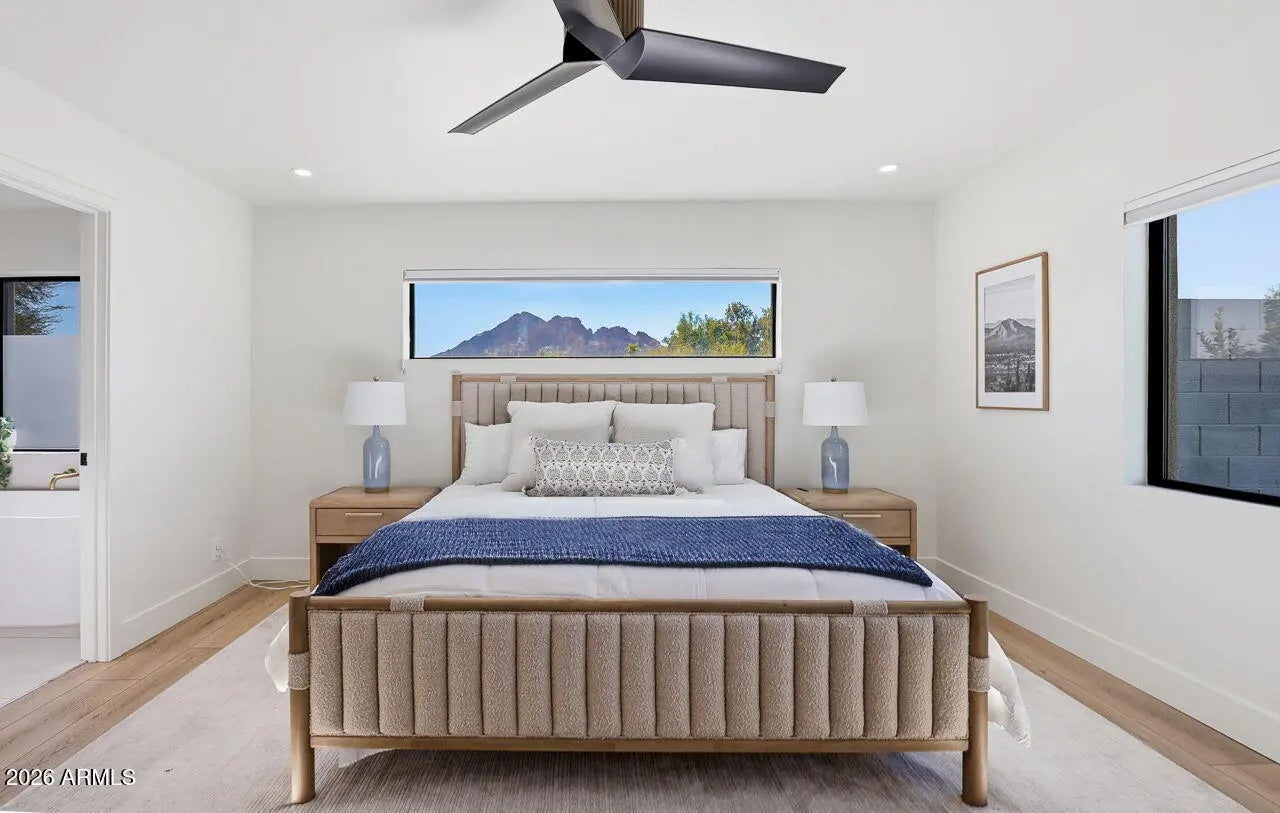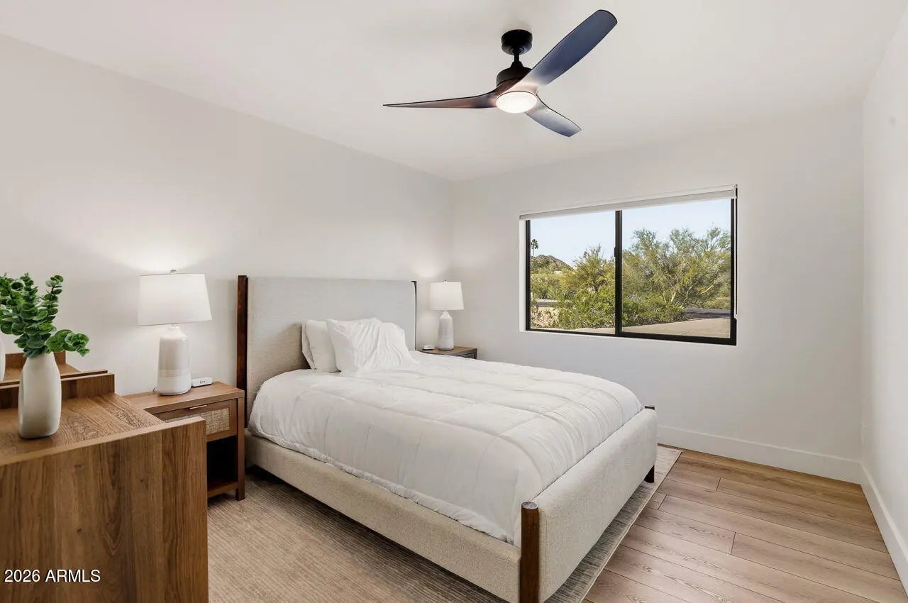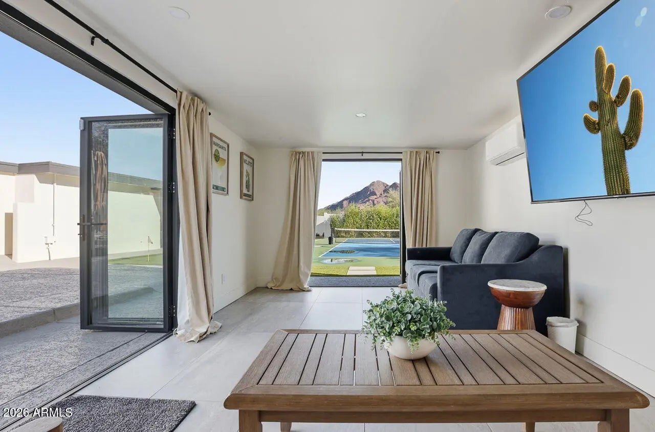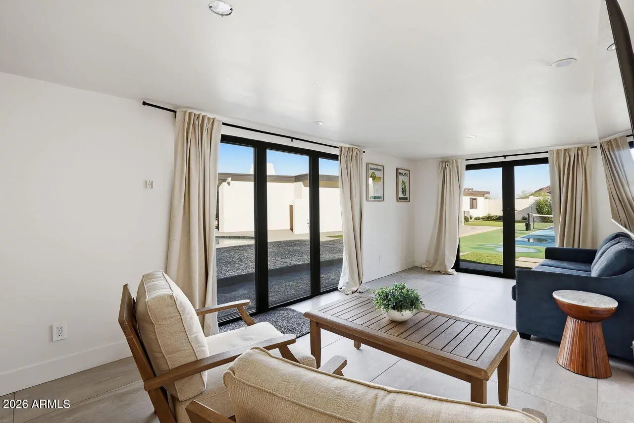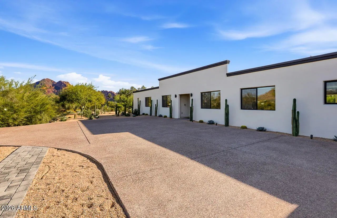 Luxurious move-in ready home in the heart of Paradise Valley offering views of Majestic Camelback Mountain on an acre lot. Fully reimagined home offers 5 generous sized bedrooms, 3 spa bathrooms & very sensible floor plan. Low maintenance, well manicured & mature landscaping. Your very own Pickleball court, Putting Green and a detached pool house! Extensively upgraded throughout with modern premium finishes. Redesigned chef's kitchen featuring premium appliances, custom cabinetry, and expansive counter space. Multiple living and dining areas provide flexible functionality, while large windows and glass doors create strong indoor-outdoor connectivity and natural light throughout the main living spaces. Spacious and well-appointed primary suite with incredible views and updated finish Secondary bedrooms are generously sized and adaptable for guests and additional living needs. The backyard is designed for privacy and entertaining, featuring a resort-style pool, defined outdoor living areas, and professionally designed landscaping with mature plantings. A detached pool house adds versatility for guest accommodations, a home office, fitness studio, or additional recreational space. Situated within one of Paradise Valley's most desirable enclaves, the property offers convenient access to Scottsdale dining, shopping, golf, and major transportation corridors while maintaining the privacy and prestige the area is known for.
