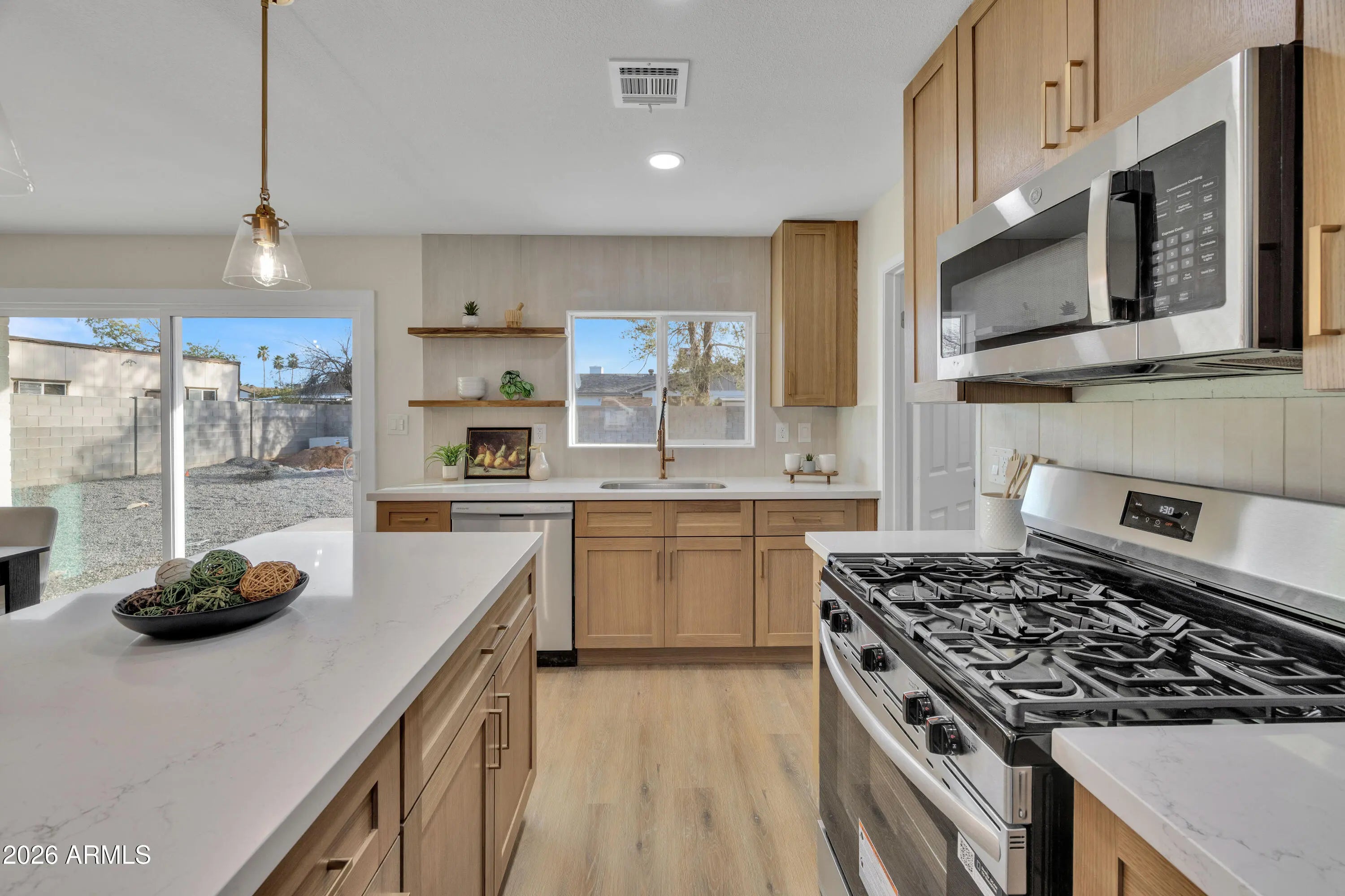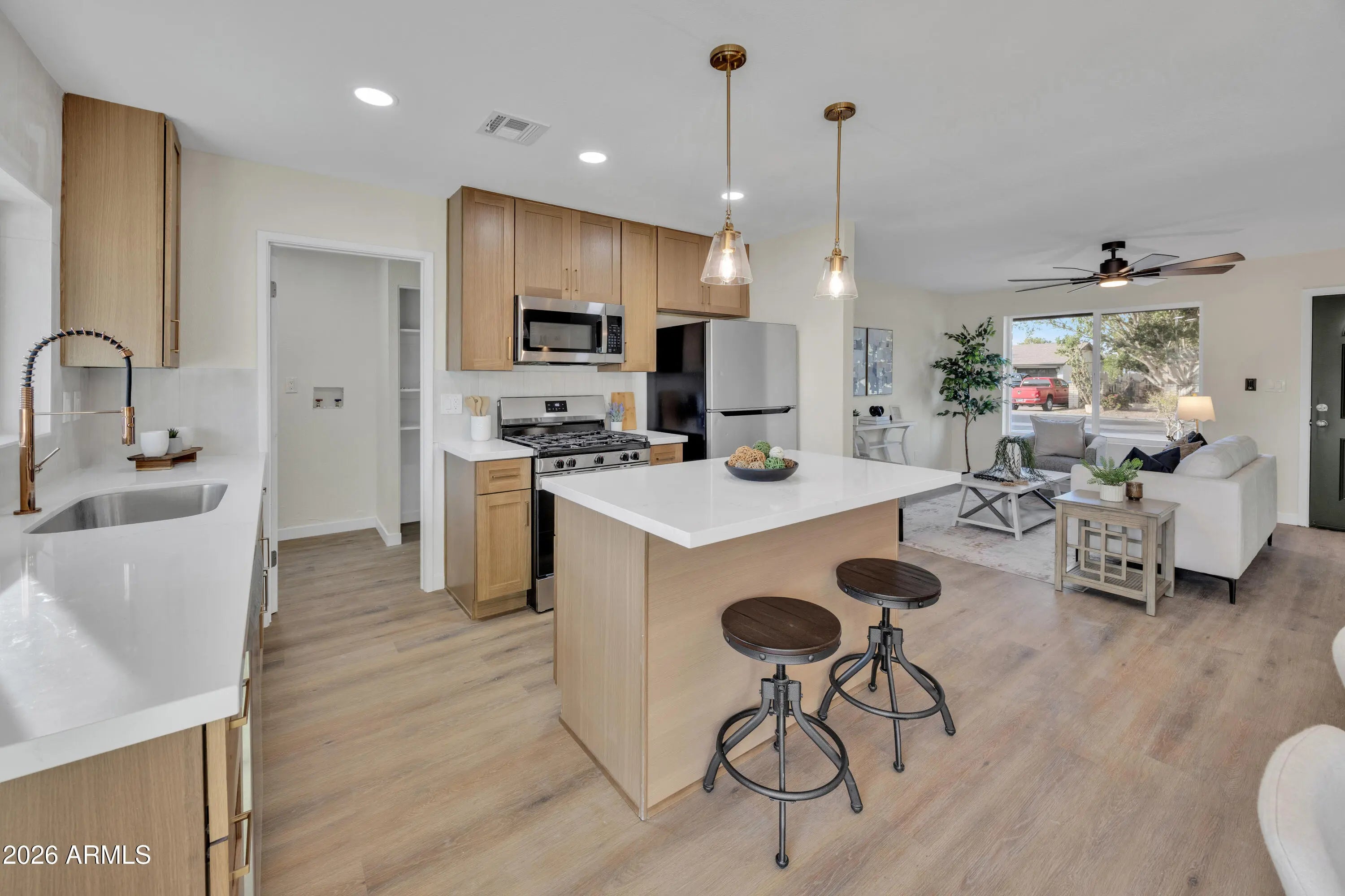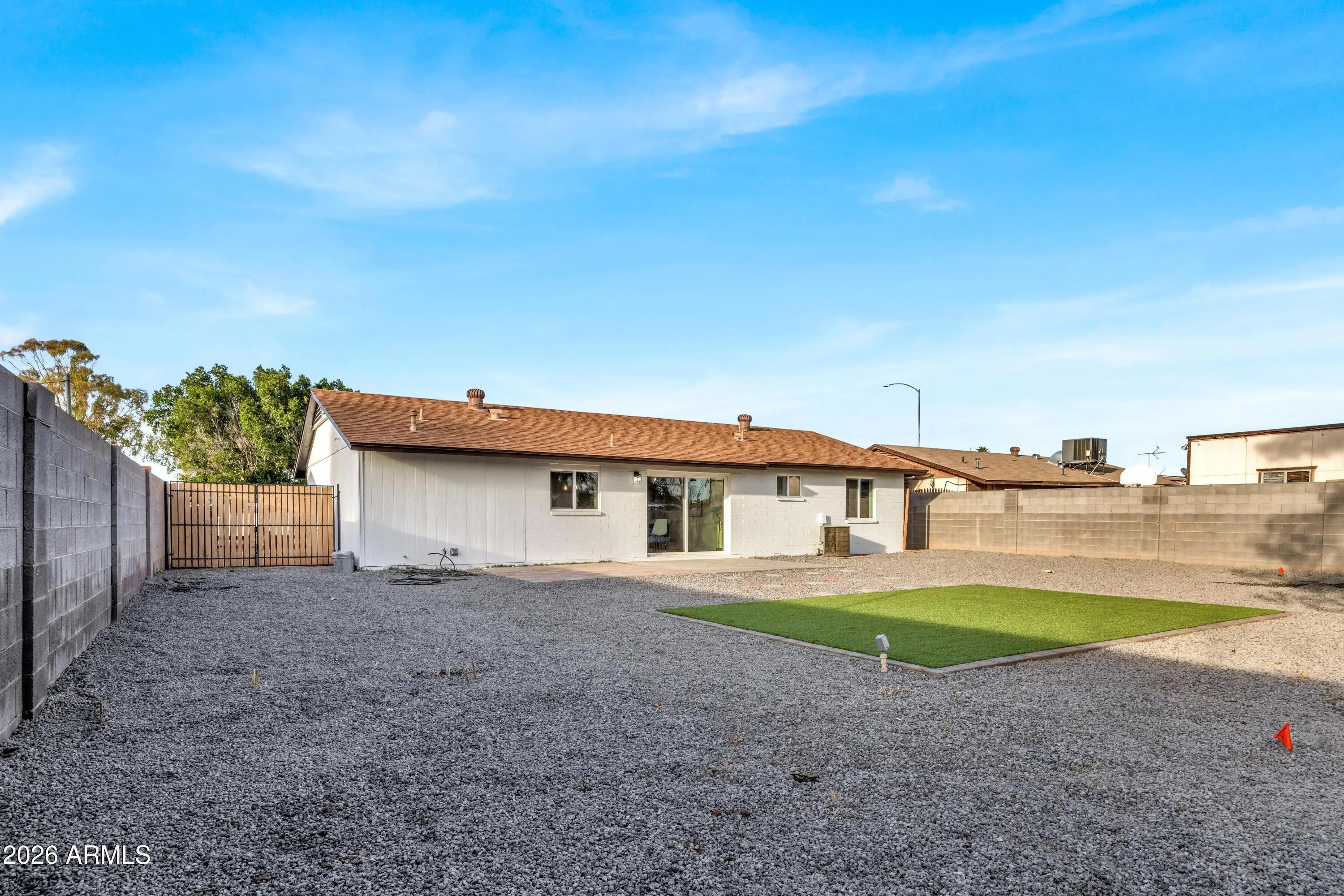 Tastefully renovated inside and out, this move-in ready home sits on a large lot in a quiet community with no HOA. The interior features new flooring, fresh paint throughout, slow-close cabinetry, quartz countertops, and updated finishes that create a modern yet comfortable feel. Dual pane windows provide energy efficiency, and the one-car garage adds convenience and storage. The exterior renovation was done with no expense spared, offering curb appeal, long-term peace of mind and also equipped with an RV gate. One of the most affordable fully renovated single-family homes in the east valley, don't miss this opportunity to make this home yours!