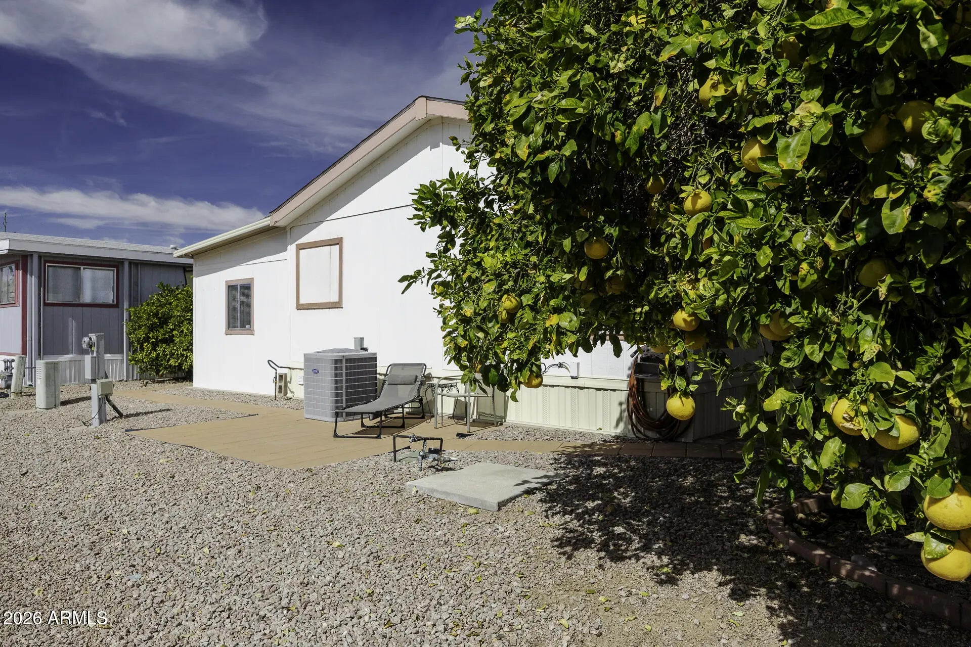 Welcome home to your 55+ retreat! Step inside to this fully furnished home that includes the golf cart, ready with new batteries. The home features vaulted ceilings, tile in all the right places and 2 bedrooms, with an upgraded shower in the ensuite. The bonus area offers a great option for a home office or den. Enjoy time outside on the large Trex Deck, or the other 2 patio options avavilable. A large, storage/work shed and fruit trees are another added bonus to this beautiful home!