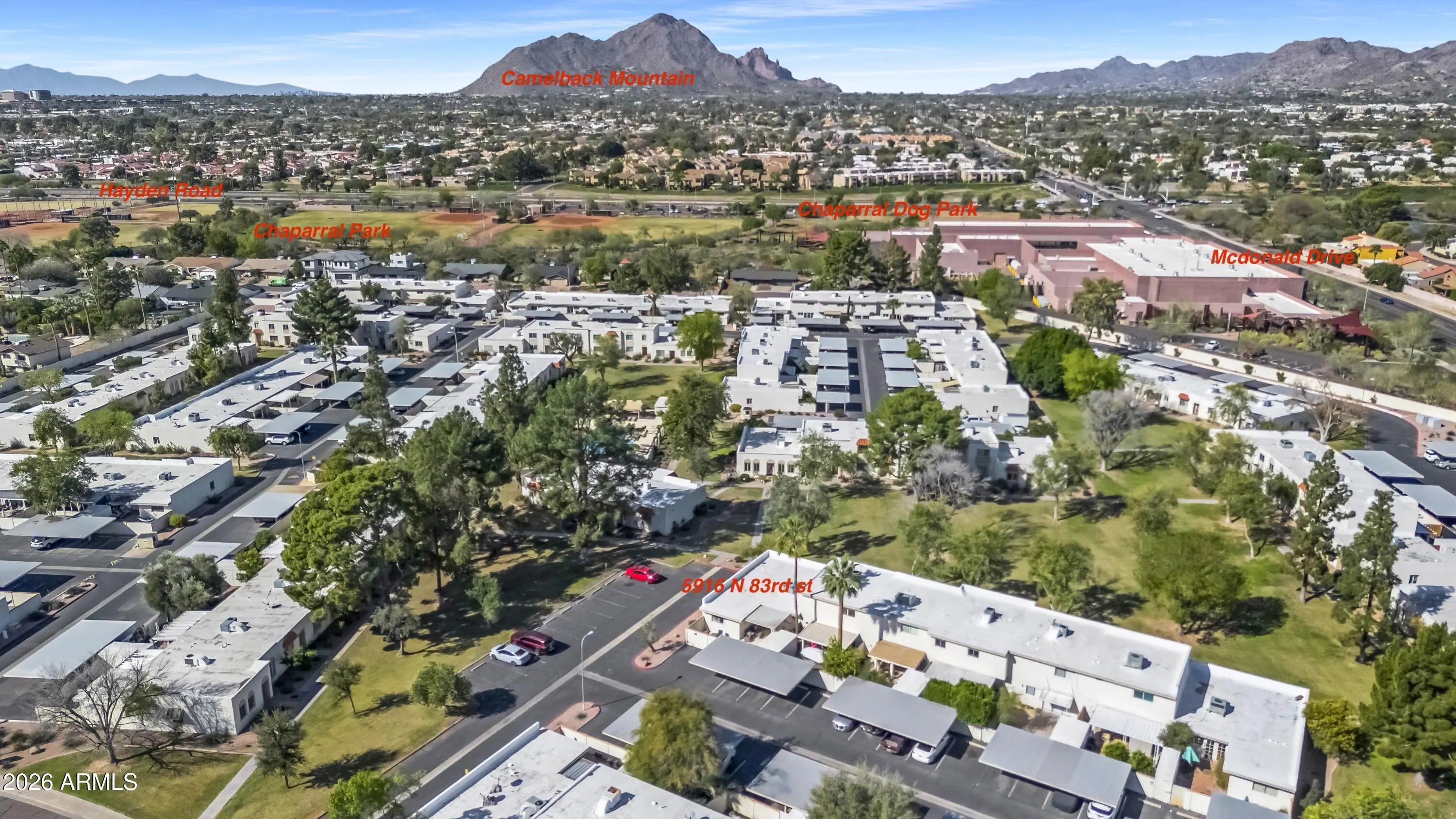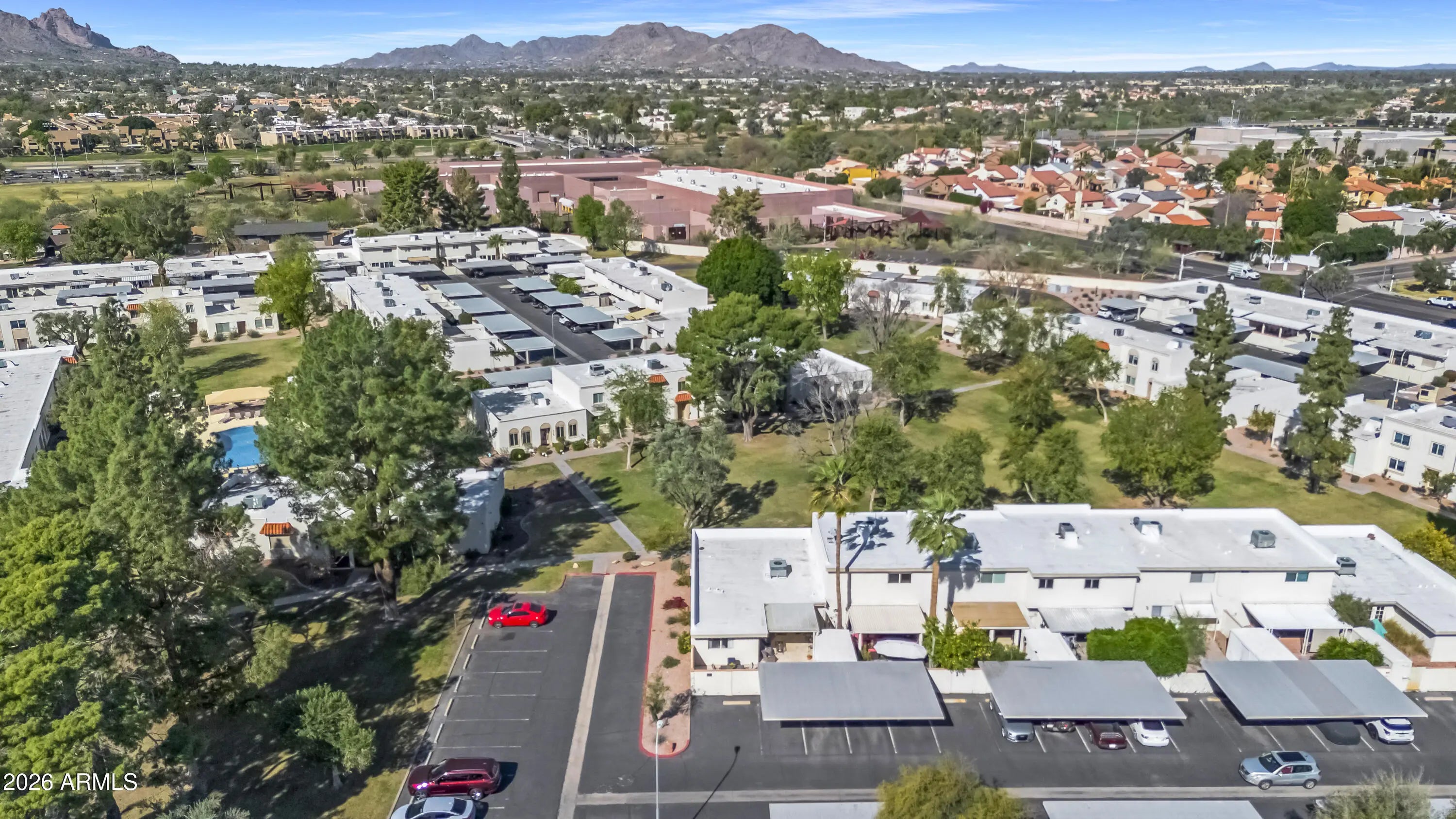 HURRY!! A rare opportunity in this community - Interior lot, single level end unit with 3 bedrooms, 2 bathrooms & 3 parking spaces. Wide open spaces around this home. Updates in 2016/17 and well maintained. A lot of natural light in all the rooms. Fabulous kitchen space opening to dining area & adjacent to back patio. Storage & counters galore. Large laundry rm w/ pantry space too. Fabulous private patio w/ a seating area for your morning coffee & dining space for your dinners. Storage room within patio area as well. The HOA covers roof, water, sewer, pool..... You can't beat the location. Walk to grocery, parks, coffee, schools ..... Within minutes of the 101 freeway, Hilton Village & Old Town Scottsdale. The greenbelt is nearby w/ miles of walking & biking trails. It won't last long.