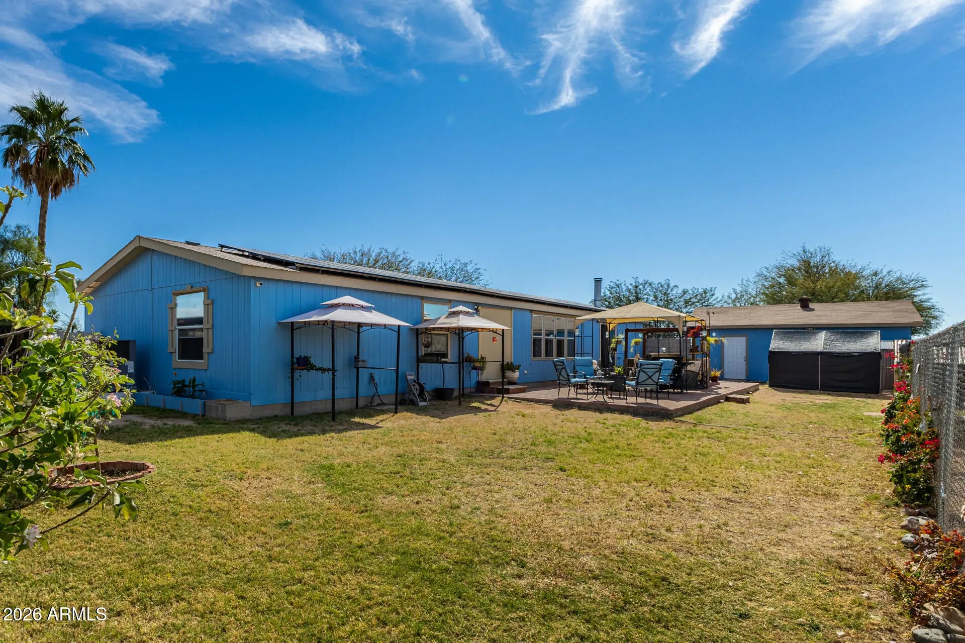 This beautiful 5-bedroom home is located on an oversized lot 1/3 of an acre with no HOA and no land lease. This property offers a large lot with a detached 2-car garage, garden area, and chicken coop. Recent upgrades include a new HVAC system and solar panels for improved energy efficiency and reduced utility costs. Excellent opportunity for land ownership with outdoor space, storage, and cost-saving features.