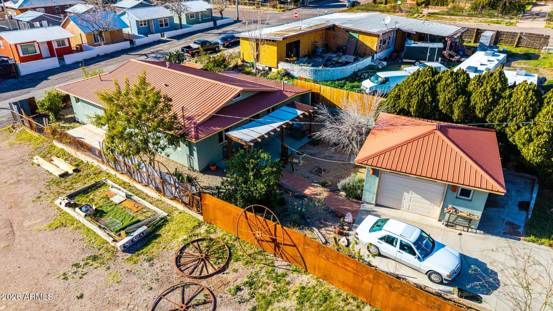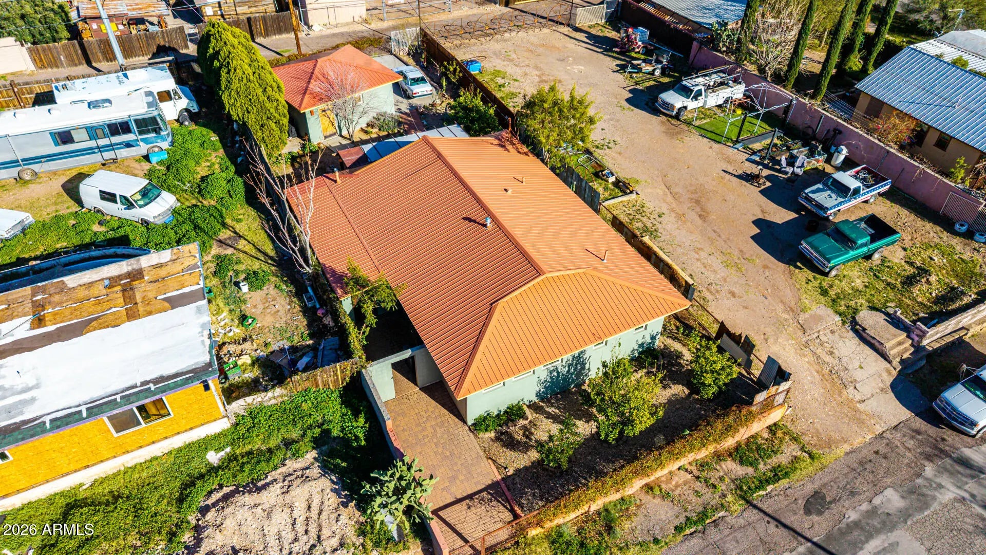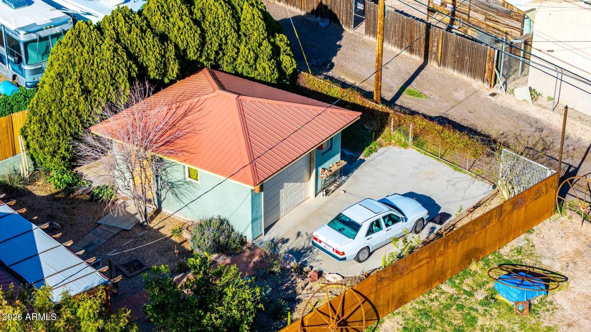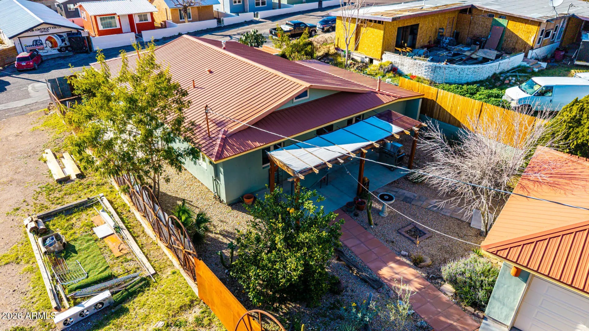 Fantastic opportunity! Garage could be made into a casita has water, power and sewer is also near by. A fully fenced property with a mature landscape & a gated front paver driveway. The interior features a versatile foyer, neutral palette, and tile flooring t/out. The living & dining room combo is paired w/vaulted ceiling. The galley kitchen has SS appliances, designer tile backsplash, a walk-in pantry, and wood cabinets. Main bedroom boasts a triple-wide closet, sitting/office room, & an ensuite w/dual sinks. Secondary bedroom w/outdoor access. If you twant to relax or enjoy BBQ, you have an open patio on the sideyard & a Pergola in the backyard! Also including a detached 1-car garage, along with an RV gate & parking, accessible from the alley. Plus, Stunning Mountain View's! Visit today