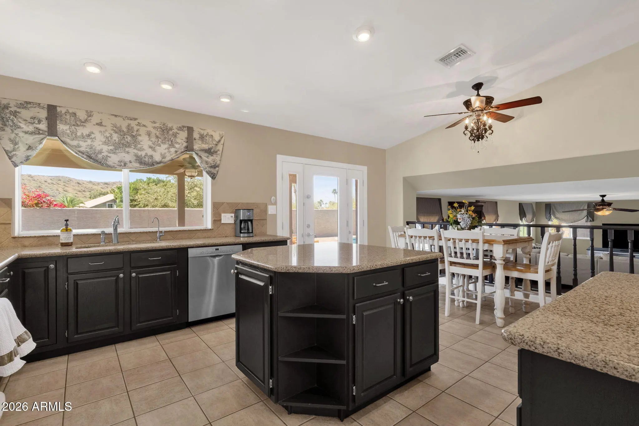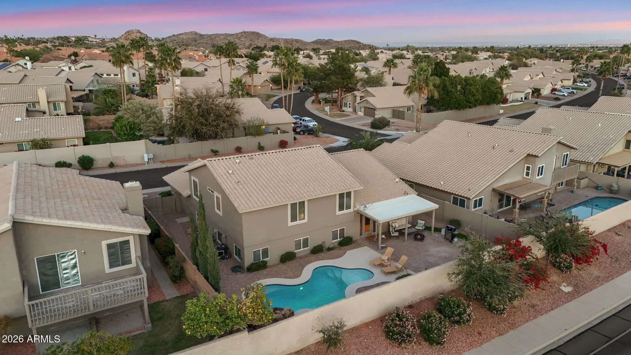 Located in the highly desirable Mountain Park Ranch community, this spacious tri-level home offers incredible flexibility and an opportunity to create your dream space. With 5 bedrooms and 3 full baths, the thoughtful layout provides room for everyone. The lower level features two bedrooms and a full bath -- ideal for guests, multi-generational living, or a private office setup. Upstairs, you'll find the spacious primary suite along with two additional bedrooms and a full bath. The main level showcases formal living and dining rooms, perfect for entertaining, while the kitchen overlooks the family room below -- beautifully separated by a custom wood railing that adds architectural character and openness to the space. Step outside to a backyard designed for Arizona living: Covered patio Sparkling pool with water feature and baja entrance and a space for your outdoor umbrella Mountain views Plenty of space to relax or entertain This home is priced to sell and presents a rare opportunity for a buyer to add their personal touch while building equity in one of Ahwatukee's most established and sought-after neighborhoods. Additional highlights or updates: Functional tri-level layout Two new HVAC units (2022 and 2026) New carpet and baseboards in downstairs bedrooms in 2026 Whole home water filtration and RO system replaced in 2025 Water Heater replaced in 2024 New Exterior paint in 2023 Pool installed in 2015 Blinds and custom window treatments Wood flooring Updated energy efficient dual pane windows throughout A true value opportunity in Mountain Park Ranch -- bring your vision and make it your own. Top ranked Kyrene and Desert Vista High School are an added bonus is addition to all that Mountain Park Ranch has to offer - community pools, pickleball, volleyball and hiking trails.
