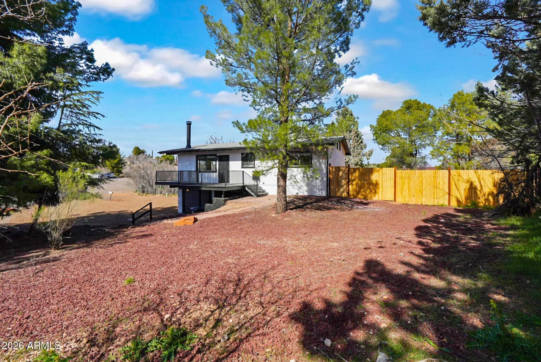 Options. Opportunity. Flexibility. You don't just buy a home -- you choose how it works for you. Live upstairs and rent below. Make the lower level your private primary retreat. Create multi-generational living with built-in independence. One property. Multiple possibilities. Upstairs Living-features a bright and inviting main living space complete with a cozy fireplace, creating the perfect gathering area. The full kitchen offers an island for additional prep space and seating. Two comfortable bedrooms a full bathroom, and a designated area for a stackable washer and dryer provide convenience and functionality. Move outside to a spacious deck that wraps around three sides of the home, extending across the entire front and providing elevated outdoor living with multiple seating areas -- ideal for morning coffee, evening relaxation, or entertaining guests. Downstairs Retreat-with its own private entrance and fenced yard, the lower level lives like a separate residence. It includes a generously sized bedroom and a large bathroom featuring dual vanity sinks and an oversized shower. A dedicated laundry room, mini kitchenette, and separate living area add to its independence and appeal. With two distinct living areas and two separate outdoor spaces, this property offers flexibility, privacy, and opportunity.
