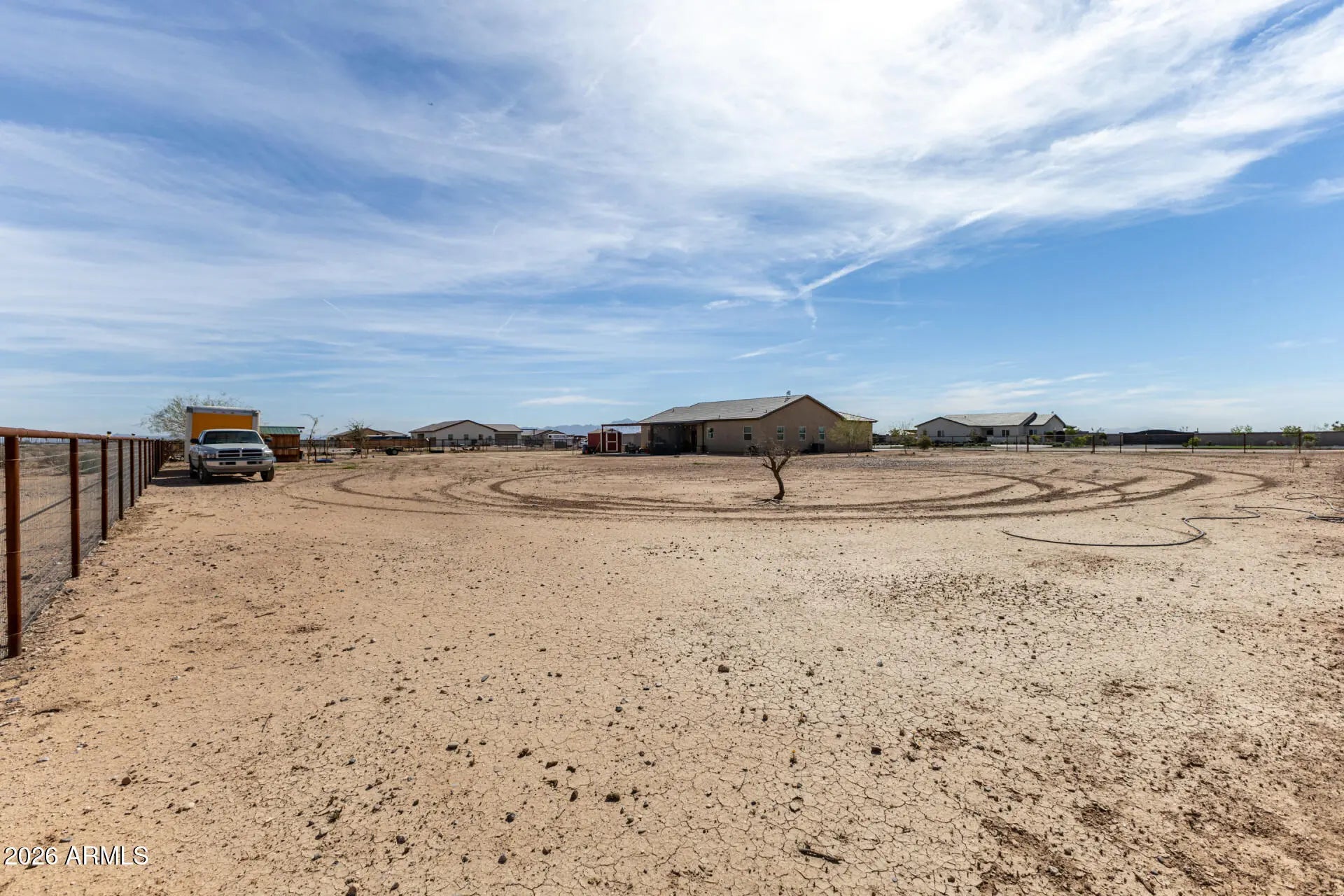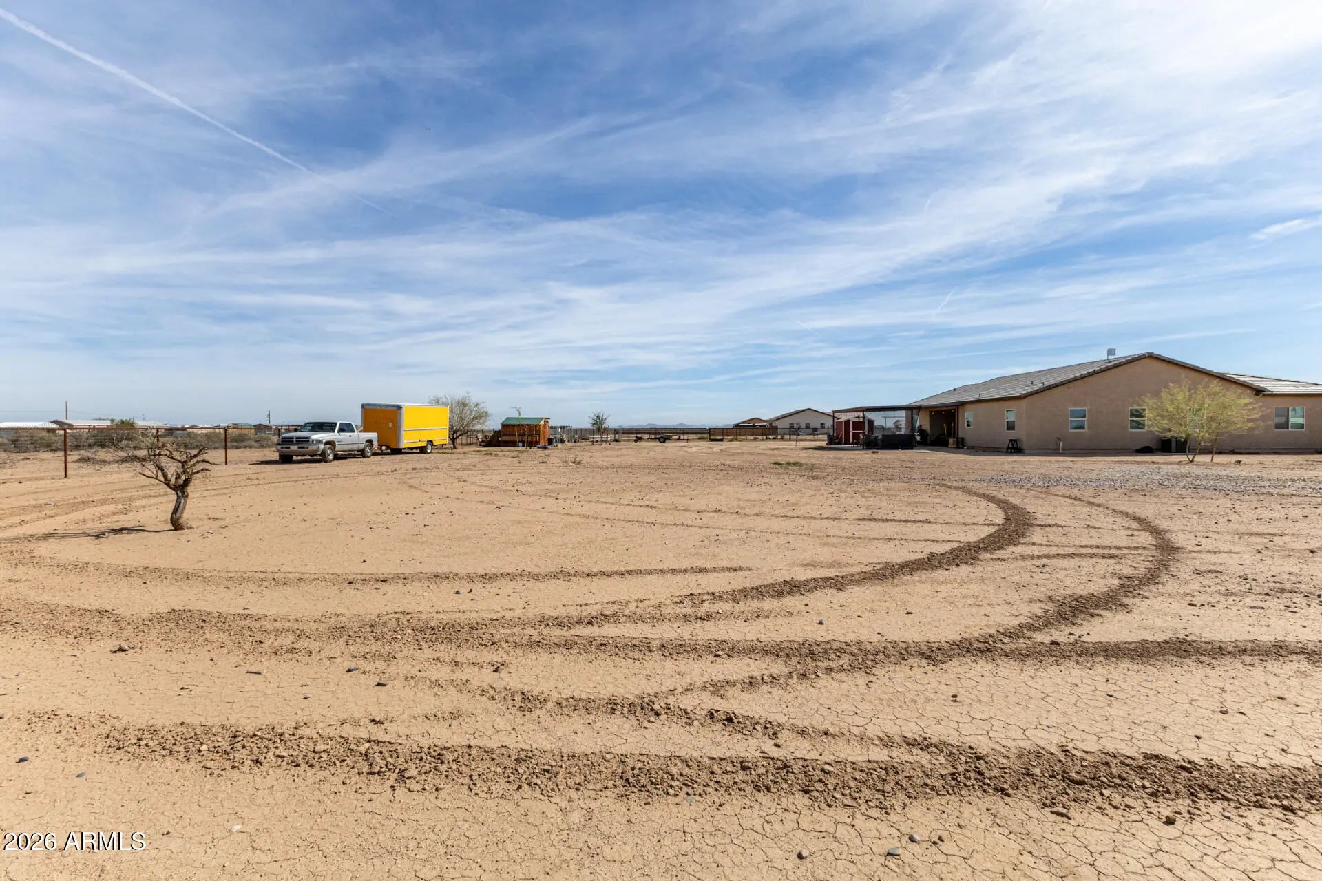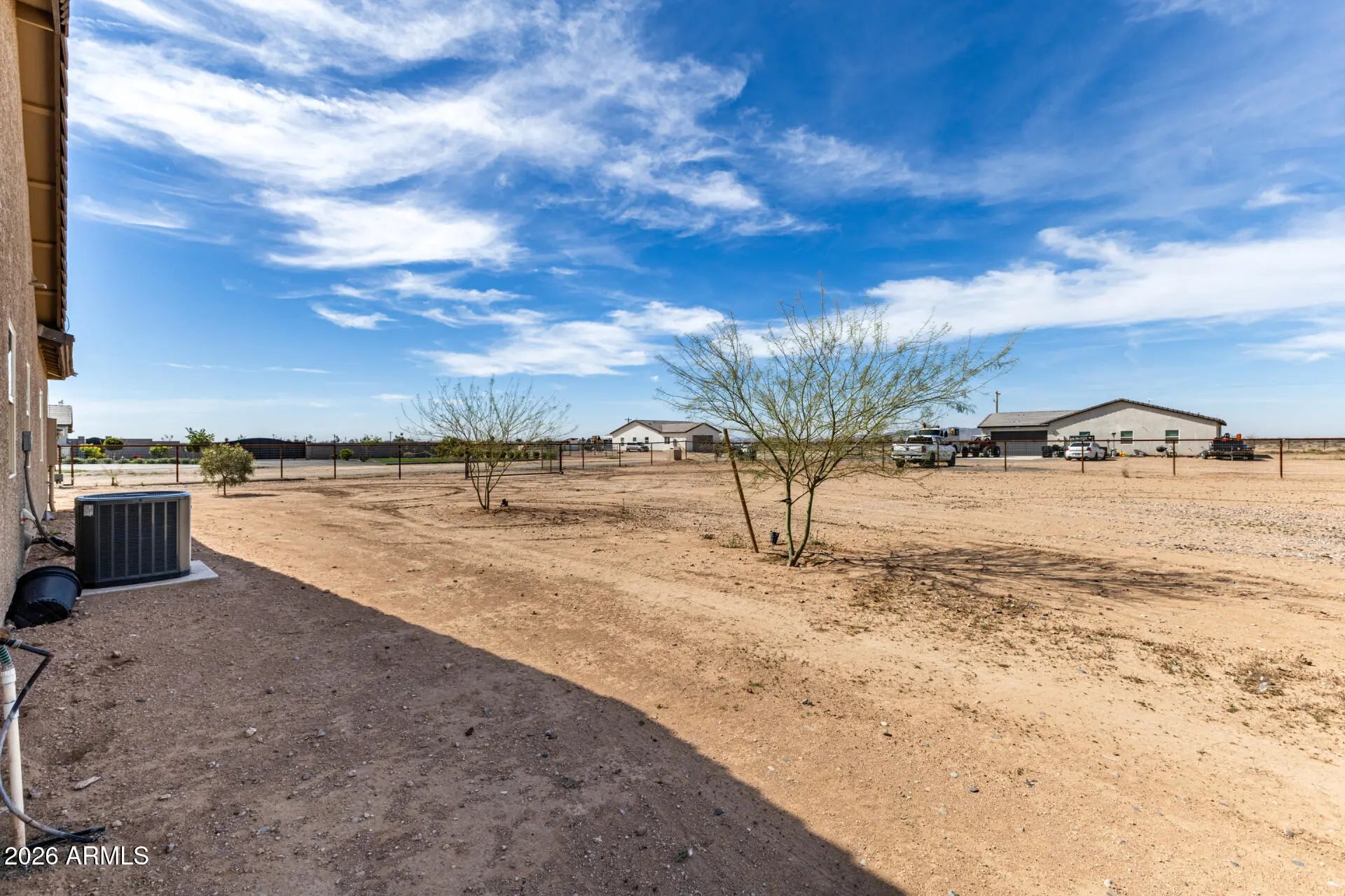 Discover the freedom of true country living and don't miss the rare opportunity to embrace off-the-grid, farm-style living in the heart of the Sonoran Desert. Set on nearly 1.5 acres in Casa Grande, this property built in 2022 offers the space, privacy, and self-sufficiency today's buyers crave plus the peace of mind of a newly built home. Wake up to wide-open skies, breathtaking desert sunsets, and the quiet rhythm of rural life. This equestrian lot is equipped with pipe fencing around the entire perimeter plus two animal corrals (40' x 110' and 20' x 54'), walk-in chicken coop with chicken run, and Tuff Shed storage. All this, plus an extended front patio with a privacy fence, a large covered back patio, an oversized garage/driveway, and an automatic electric front gate. There is still plenty of room for gardens, workshops, barns, RV parking, equipment storage, and all the essentials of a working homestead. With plenty of usable land, you can design your ideal mini-ranch, hobby farm, or sustainable desert sanctuary. The home's interior is just as good featuring 4 bedrooms, 2 bathrooms, an open kitchen, and a spacious laundry room. You'll enjoy all the upgrades including wood grain tile, cordless blinds, four panel doors, new hardware, and LED light fixtures in every room. Both bathrooms including the primary en-suite feature fully tiled showers with stone floors, built-in niche, and dual vanities. If you've been dreaming of a simpler, more intentional way of living -- growing your own food, getting out of the city, and enjoying unmatched privacy under Arizona's endless skies -- this is your opportunity to make that vision a reality.