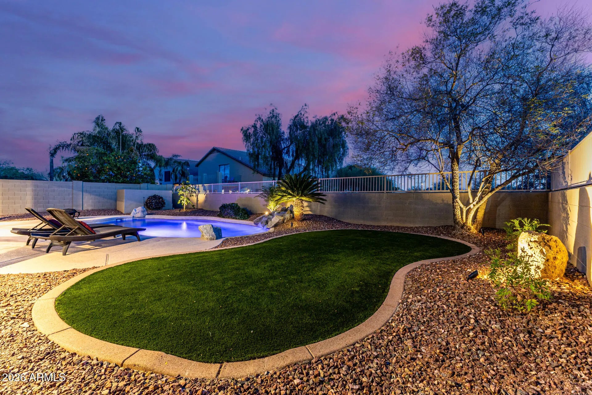Borders Common Area, North/South Exposure, Desert Front, Gravel/Stone Front, Gravel/Stone Back, Synthetic Grass Back