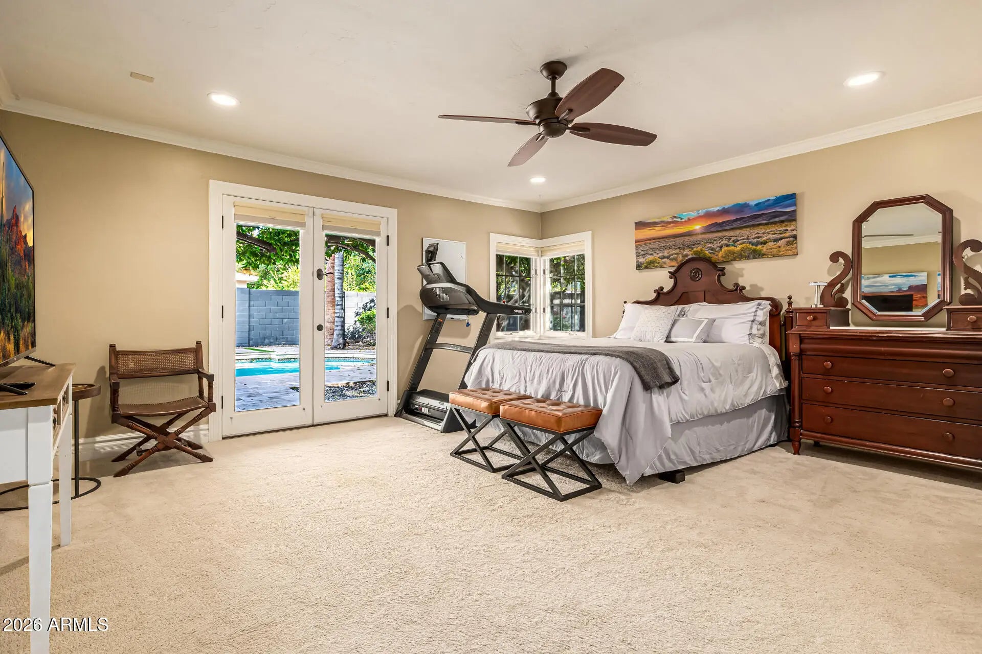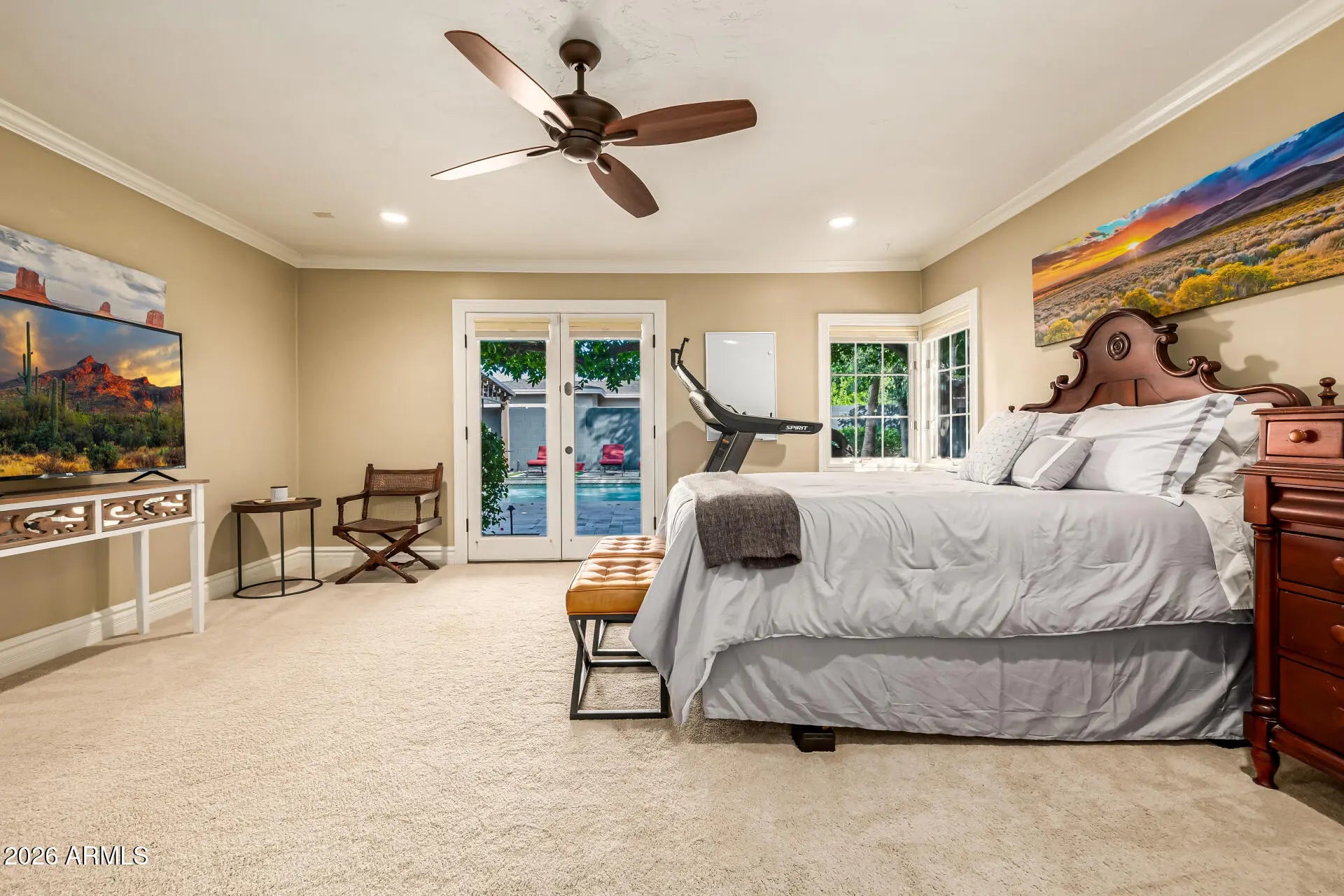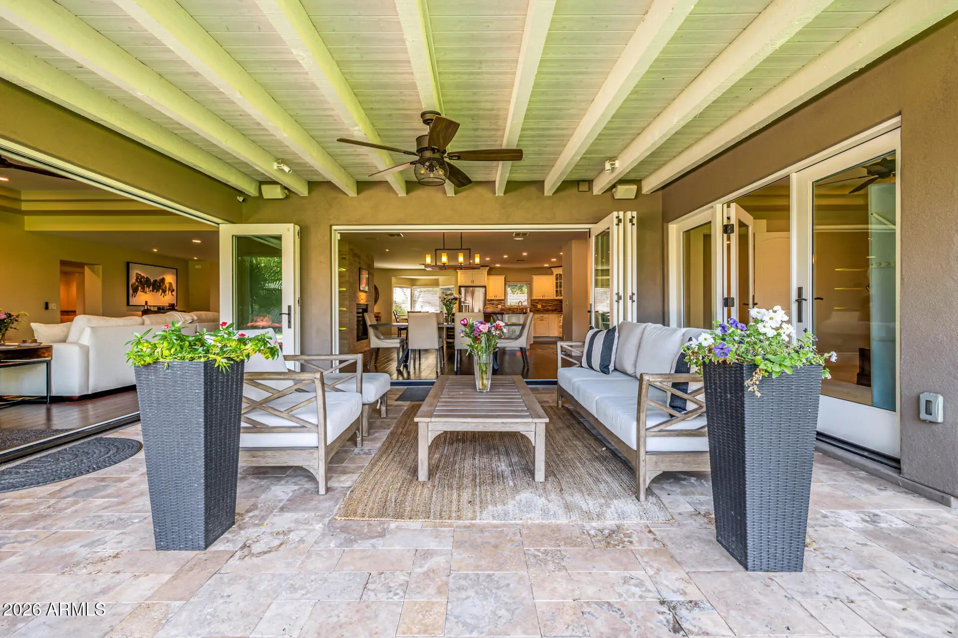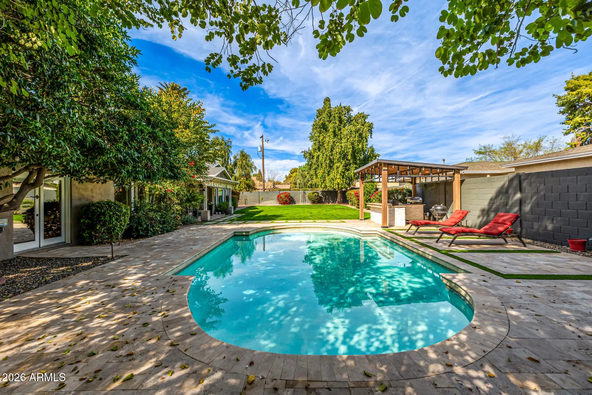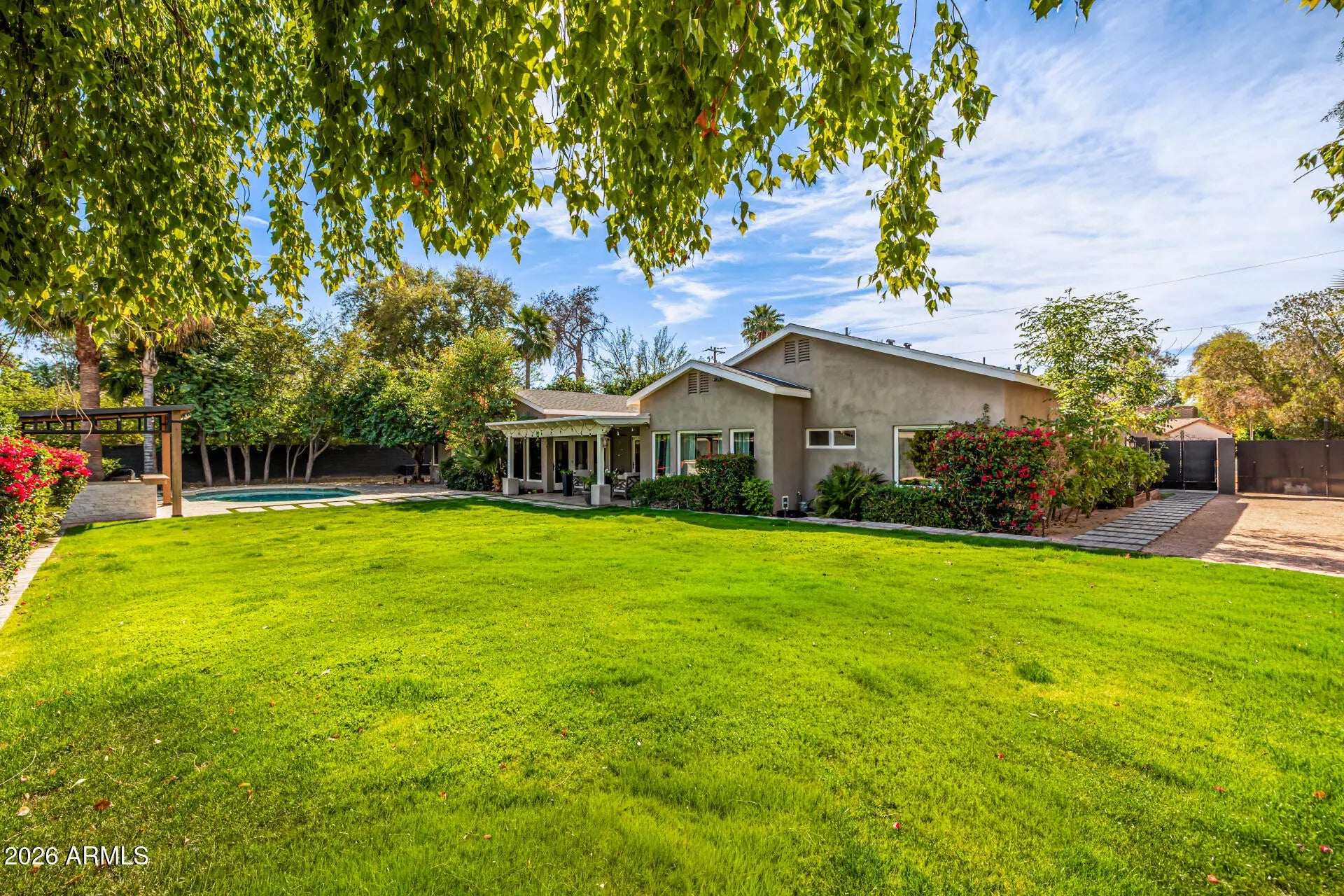 Enjoy space, charm, and location all in one! This stunning ranch-style property with POOL sits on an oversized corner lot in a premier North Central Phoenix neighborhood. Providing 4 beds, 4 baths + powder room, RV gate, 2.5-car garage, lush mature professionally landscaped w/shade trees, & great curb appeal w/paver circular driveway. The interior exudes elegance throughout with high-end finishes! The functional open floor plan features a two-way fireplace and custom folding doors that open entirely, transforming the space into an indoor-outdoor retreat. The remodeled gourmet kitchen boasts new SS appliances, granite counters, mosaic tile backsplash, a walk-in pantry, recessed lighting, white cabinetry w/crown molding, and a butcher block island w/breakfast bar. Split bedroom floor plan with all bedrooms have ensuites! The primary bedroom has outdoor access and a lavish bathroom with dual sinks & separate tub/shower. Experience a RESORT-STYLE retreat right from your spacious backyard! You'll love the relaxing covered patio, Sonos sound system for both inside and patio and a sparkling pool for year-round fun. Enjoy gardening in the beautiful travertine raised garden bed and a gazebo with power. This is your DREAM home you've been looking for! Seller recently reinspected sewer system and replaced older section beneath the garage. Don't miss this opportunity!