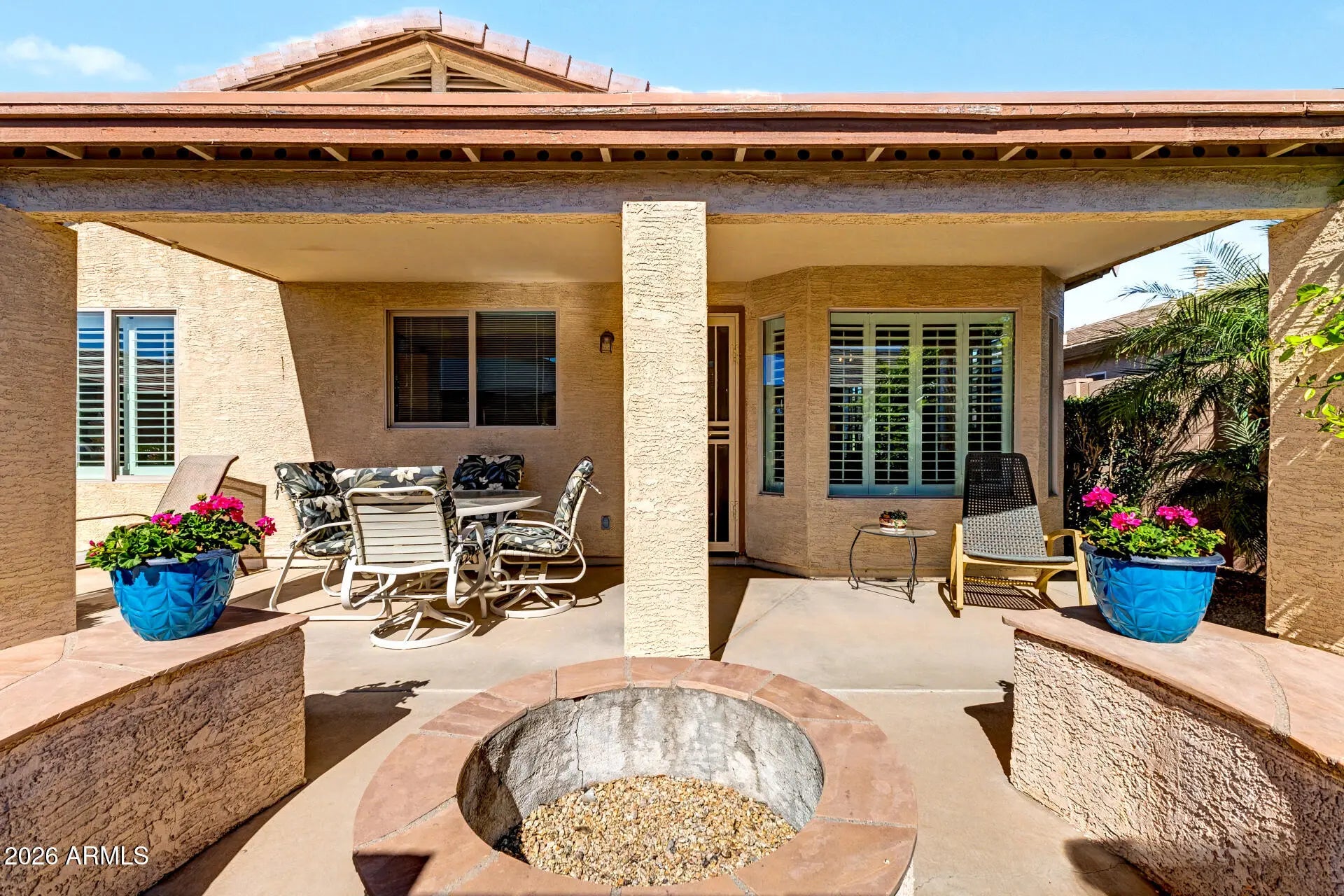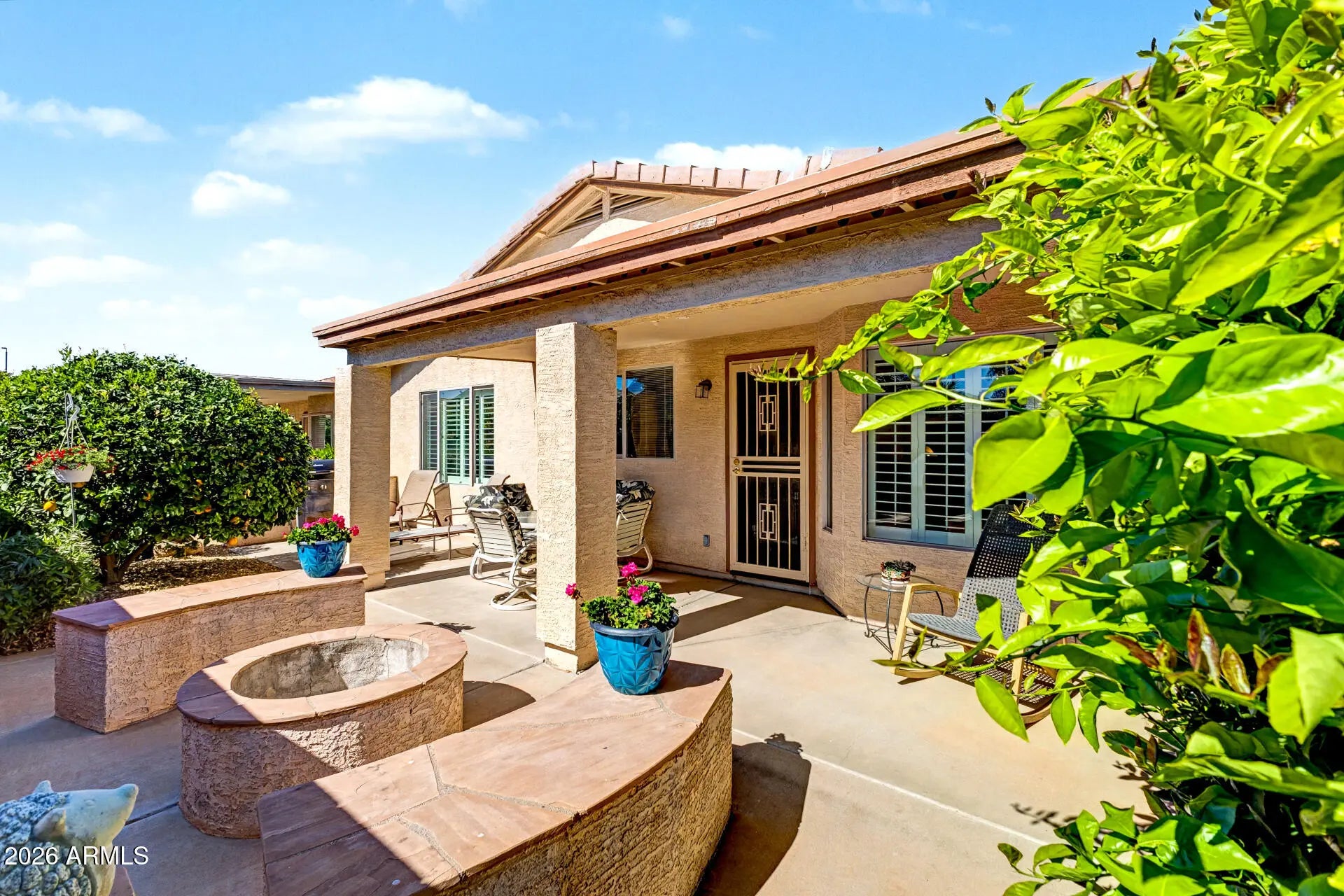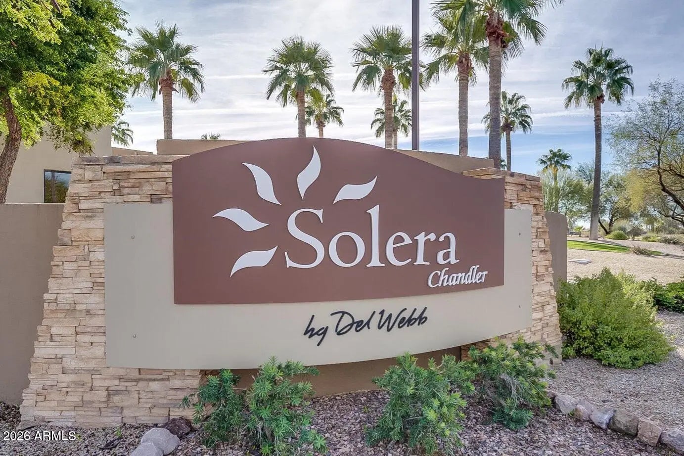 Welcome to Solera, South Chandler's Premier 55+ Community! Surrounded by serene views of the San Tan Mountains, Solera offers an exceptional active-adult lifestyle with world-class amenities including a fitness center, game room, pickleball and tennis courts, heated pools and spa, plus an 18-hole golf course -- offering an ideal blend of recreation and relaxation. This stunning, move-in ready Oasis model blends warmth and modern comfort with new plank tile flooring, plantation shutters, refreshed neutral interior paint, newer carpet in the bedrooms, soaring ceilings, and abundant natural light throughout. The kitchen features light cabinetry, gorgeous granite countertops, and ample storage. The spacious primary suite serves as a private retreat with a generous ensuite bath, while the guest bedroom provides an inviting space for visiting family and friends. A versatile den/office showcases a custom built-in wall and desk unit, ideal for working from home or pursuing hobbies. Step outside to your covered patio complete with a firepit and extended seating areas -- perfect for relaxing or entertaining year-round under Arizona skies. Whether you're a full-time resident or seeking the ideal lock-and-leave winter escape, this home delivers style, ease, and effortless desert living. Conveniently located near shopping, dining, and freeway access, it's all here!