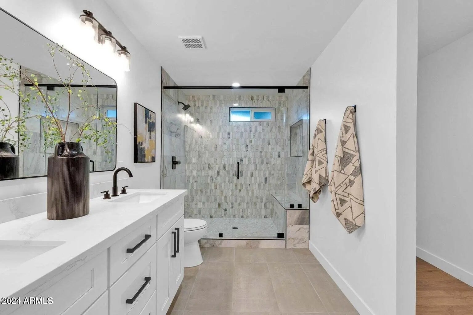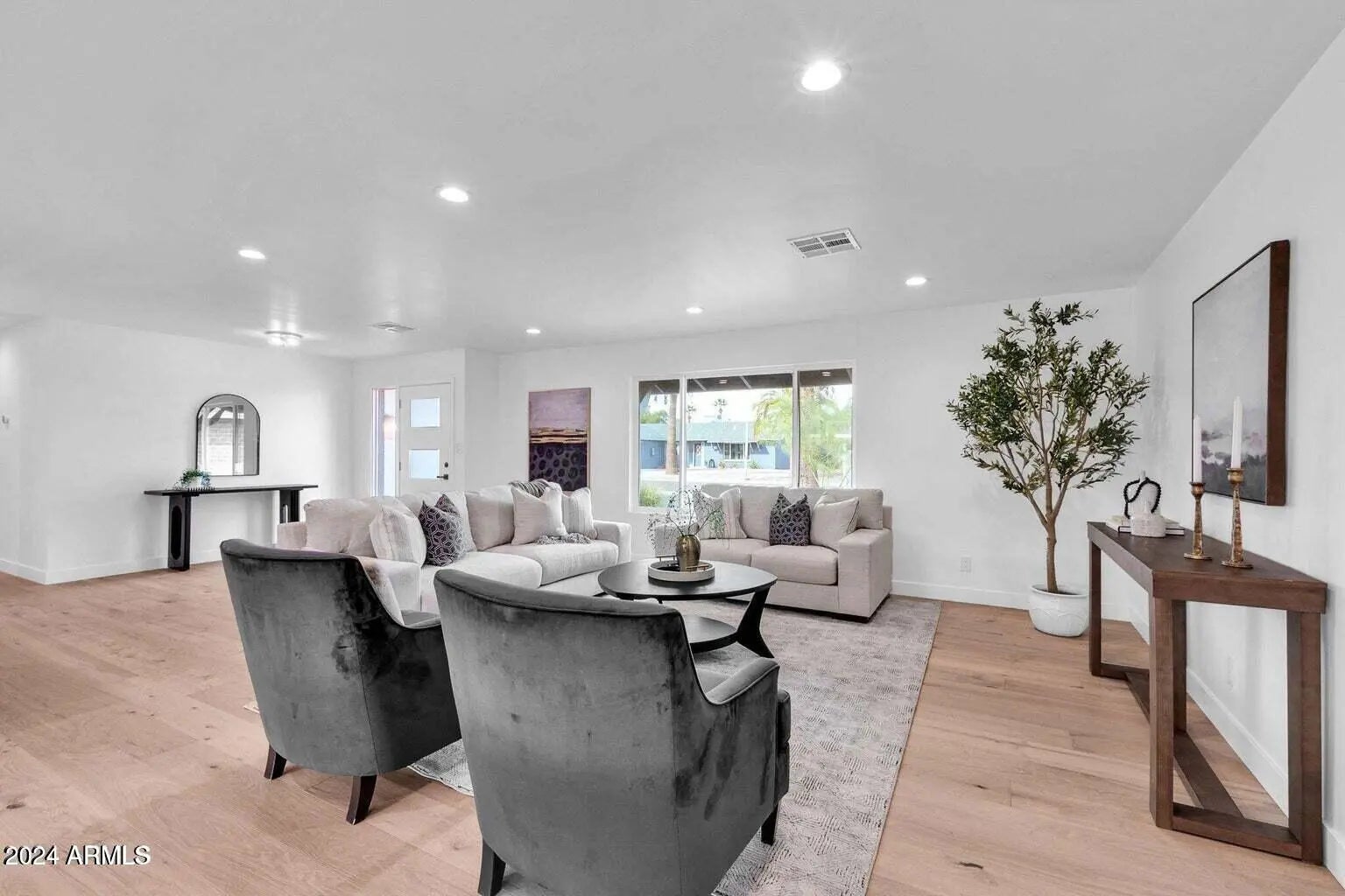 Location! Location! Stunning remodeled home in the center of the highly desirable Old Town Scottsdale area! Close to the 101 and Just minutes from Old Town Scottsdale with world class shopping and dining, Fashion Square Mall, Talking Stick Resort, OdySea Aquarium, Salt River Fields & Much More! This 3 bedroom 2 1/2 bathroom house has great curb appeal with modern glass garage door, paver entry, and freshly painted exterior. Brand new luxurious remodel with high end finishes including engineered hardwood flooring, custom cabinetry, quartz counters, and waterfall edge island in the kitchen. Sizable primary suite with large double closets. Very spacious primary bathroom with a gorgeous marble walk in shower. Expansive 16' slider on living room opens to your backyard with nice size patio and.. artificial turf. Incredible laundry room that doubles as a butler's pantry. All new efficient windows, doors, insulation, new electrical and plumbing, and epoxy coated garage floor. *Please note home is unfurnished.