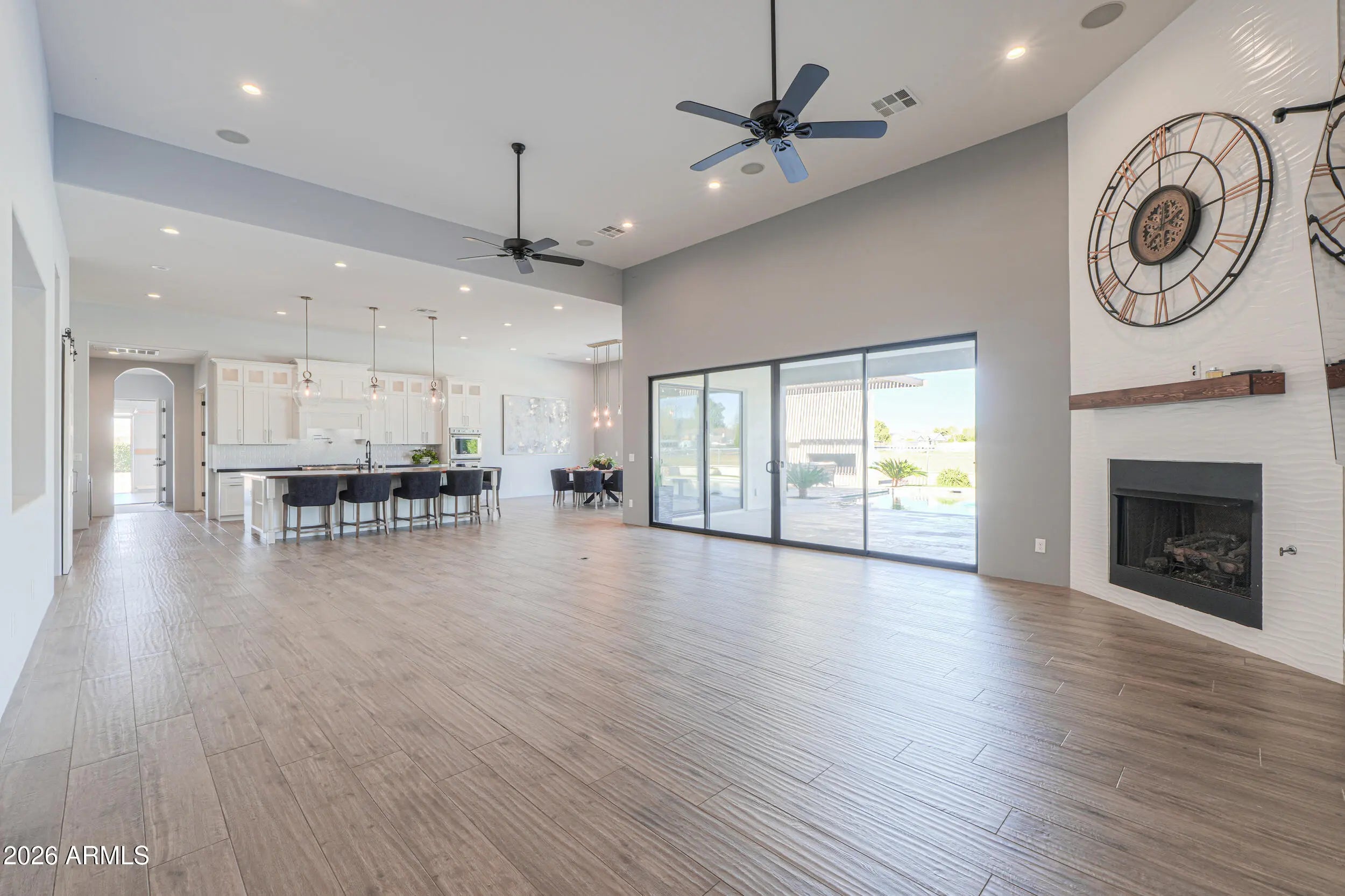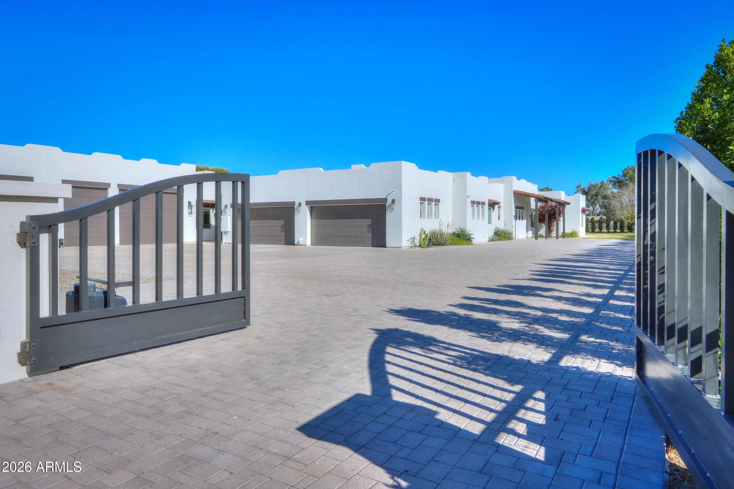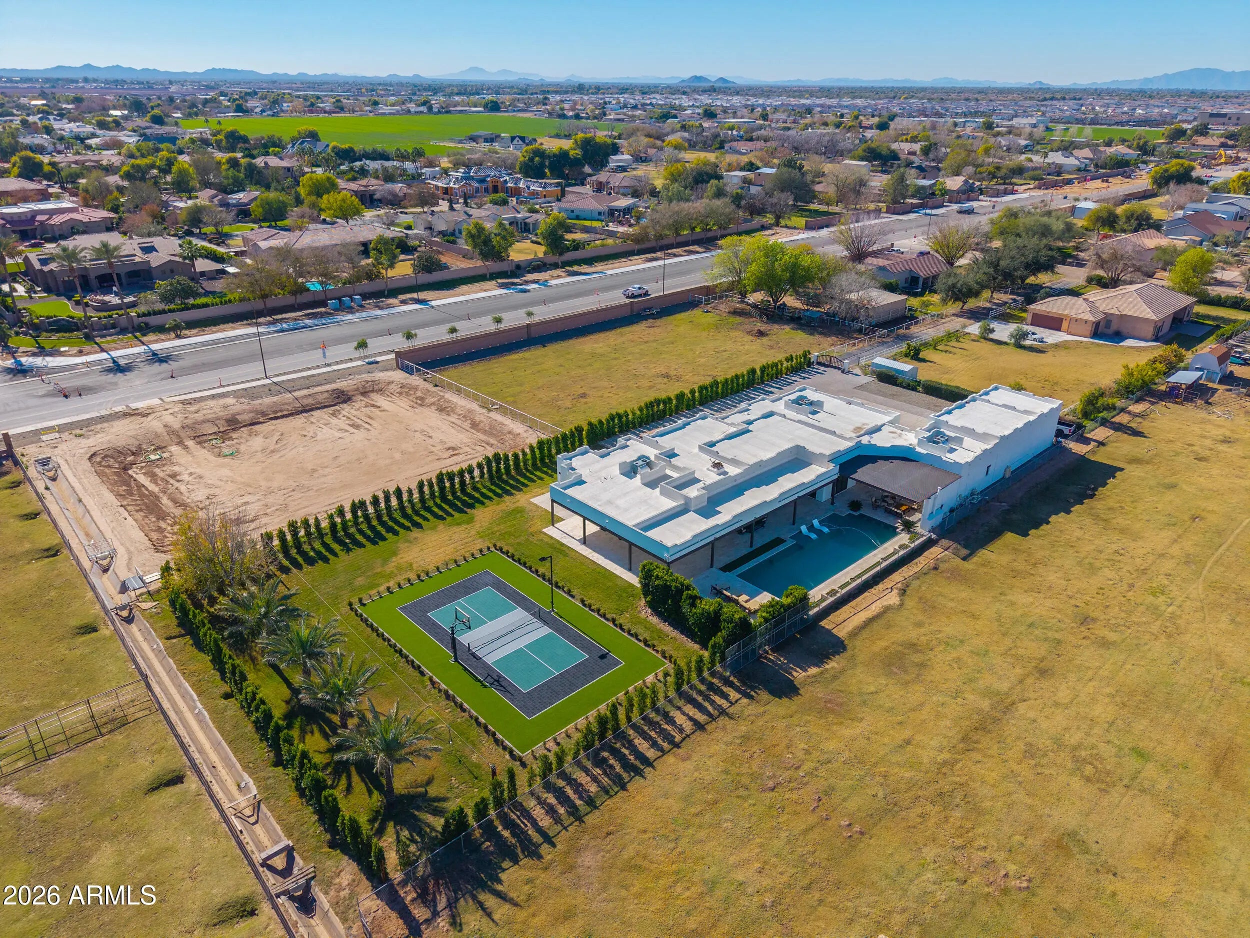 Discover your dream entertainer's paradise! This spectacular residence boasts 6 spacious bedrooms, 4.5 luxurious bathrooms, home theater, gym and separate office. The impressive 9-car garage features 3 vehicle lifts totaling 12 spots, providing exceptional storage for your automotive collection. Inside, a beautiful kitchen awaits with a huge island and soaring vaulted ceilings that create an open and airy atmosphere. Step into your backyard oasis and cool down in your stunning swimming pool, complimented with an out door kitchen and granite countertops for hosting unforgettable gatherings. The property also features a pickleball, volleyball and basketball court, ensuring endless fun and recreation. Additionally, a charming casita is attached to the RV garage, offering versatile living!