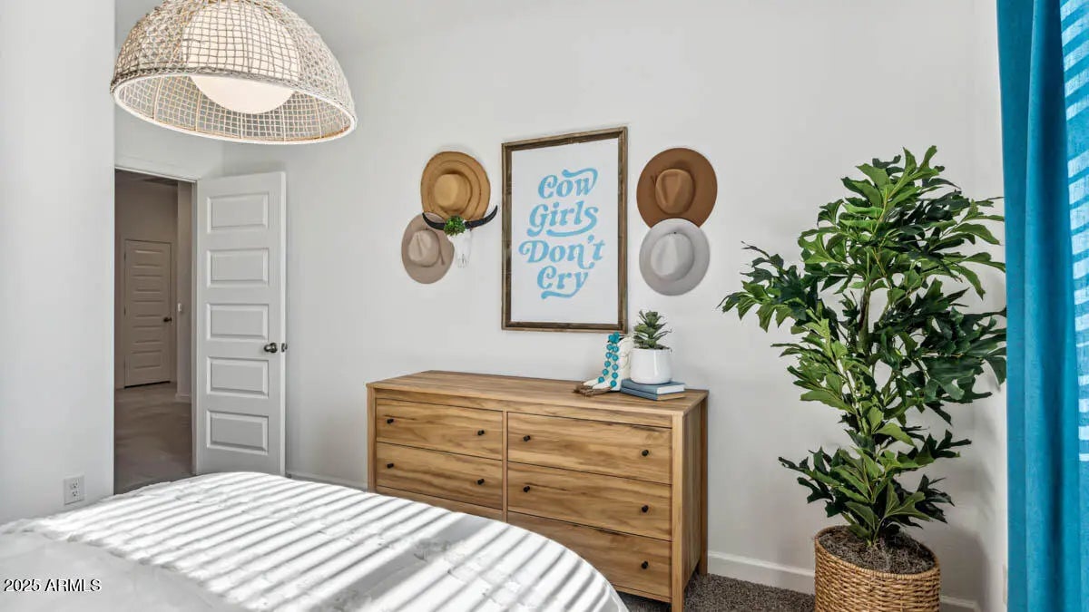 BRAND NEW | Est. Completion 3/19/26 | 3-Car Garage | Pool Sized Lot w/ a Double Gate | This home has everything you have been looking for. Between having a 3rd car garage, his & hers closets in the primary suite, and an en-suite bathroom in one of the secondary bedrooms, what more can you ask for? Interior finishes include granite kitchen & bathroom counter tops, white cabinets, & tile flooring throughout, except the bedrooms. Smart home technology is included along with a 14 seer HVAC & energy saving features like spray foam insulation. Also, this home includes stainless steel appliances, 220v pre-wire in the garage, 2'' window blinds, garage door opener, rain gutters, plus front yard desert landscape. Come see this home in the desert's most sought after hidden gem, Magma Ranch Vistas!