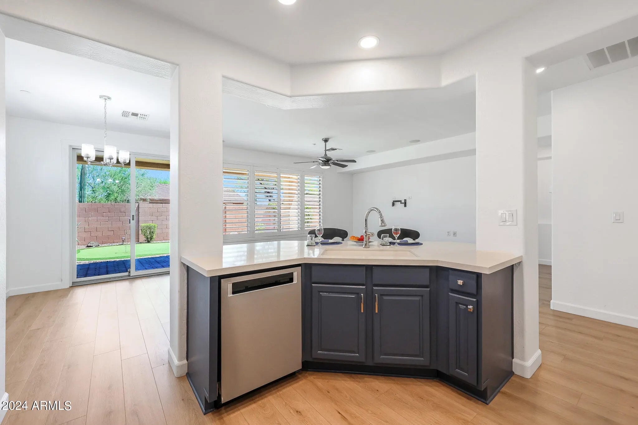 If you are looking for a remodeled home for under the average list price in Anthem Country Club, stop right here, you have found it! With three bedrooms and two bathrooms, this home is perfect for a small family or a couple who needs room for visitors. The remodeled kitchen and bathrooms, and the updated flooring ensure that the home is move-in ready. You will love the storage space in the kitchen, which includes a large pantry. The updated stainless-steel appliances, quartz countertops and natural light from both large and small windows give the kitchen and family room a fresh, bright, and cheery feel and look. This home is a private oasis within the spectacular community of Anthem Country Club which offers anything you could ask for in a Country Club setting.