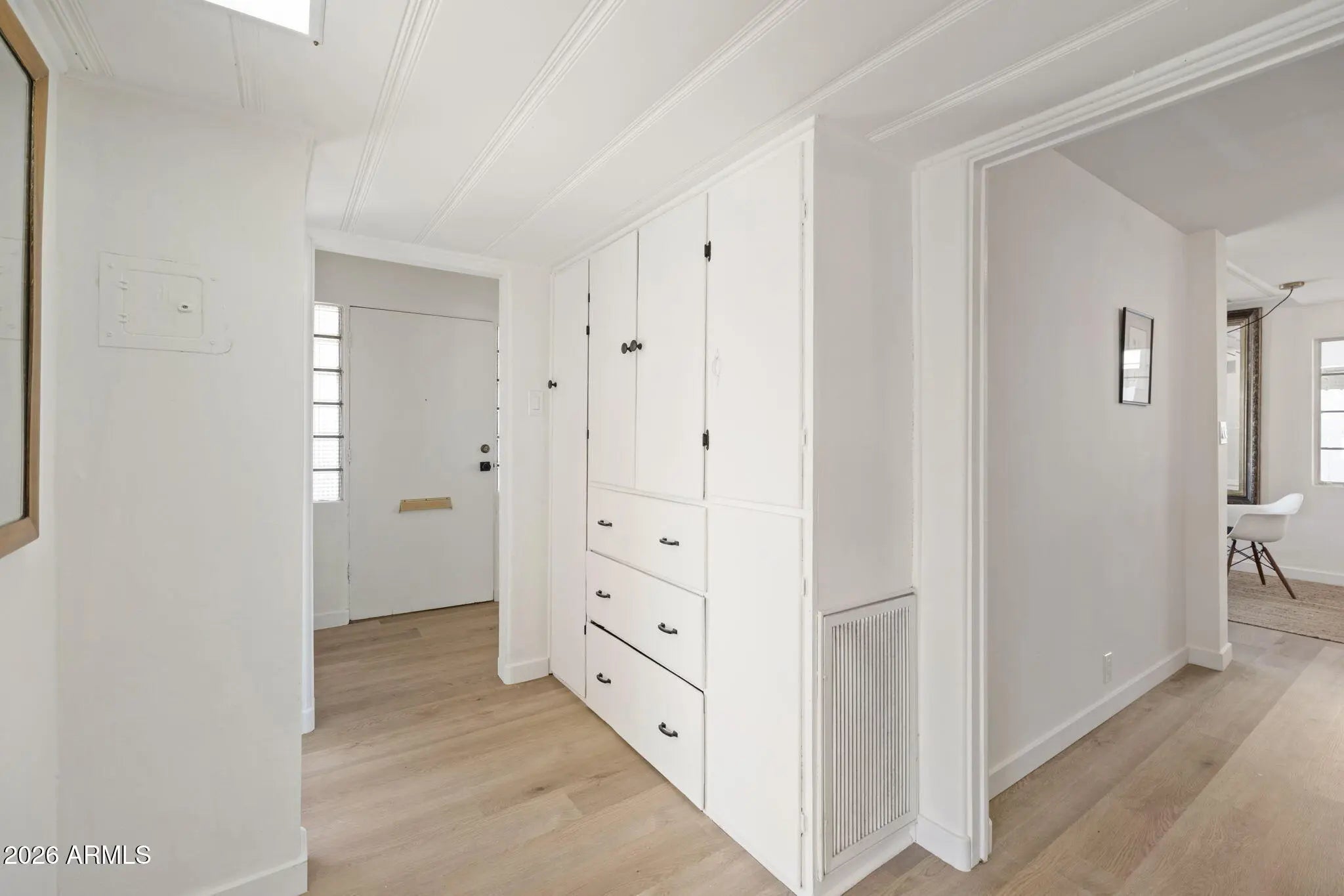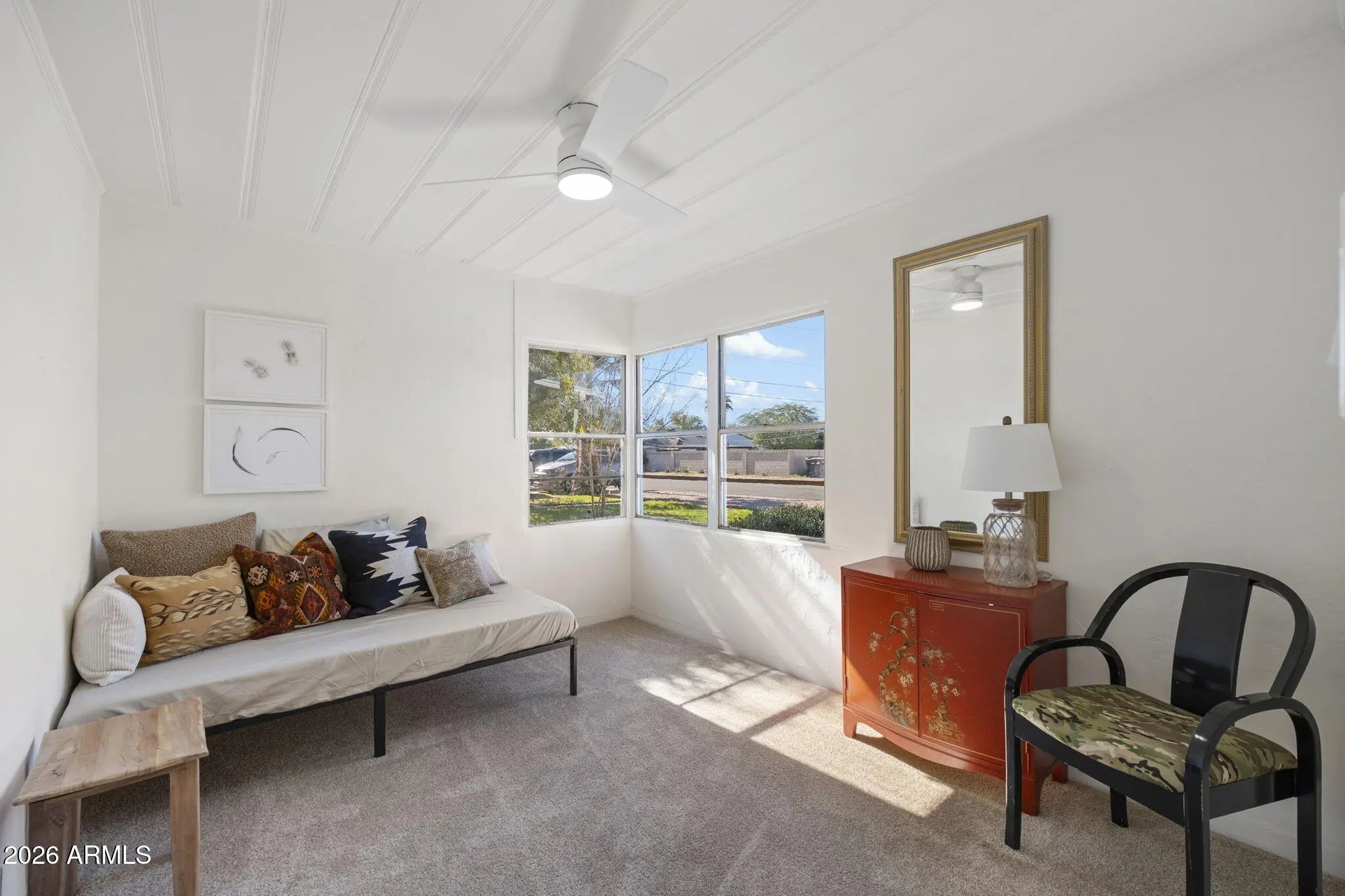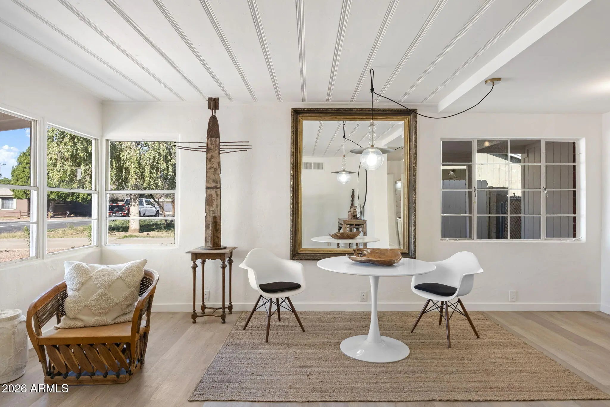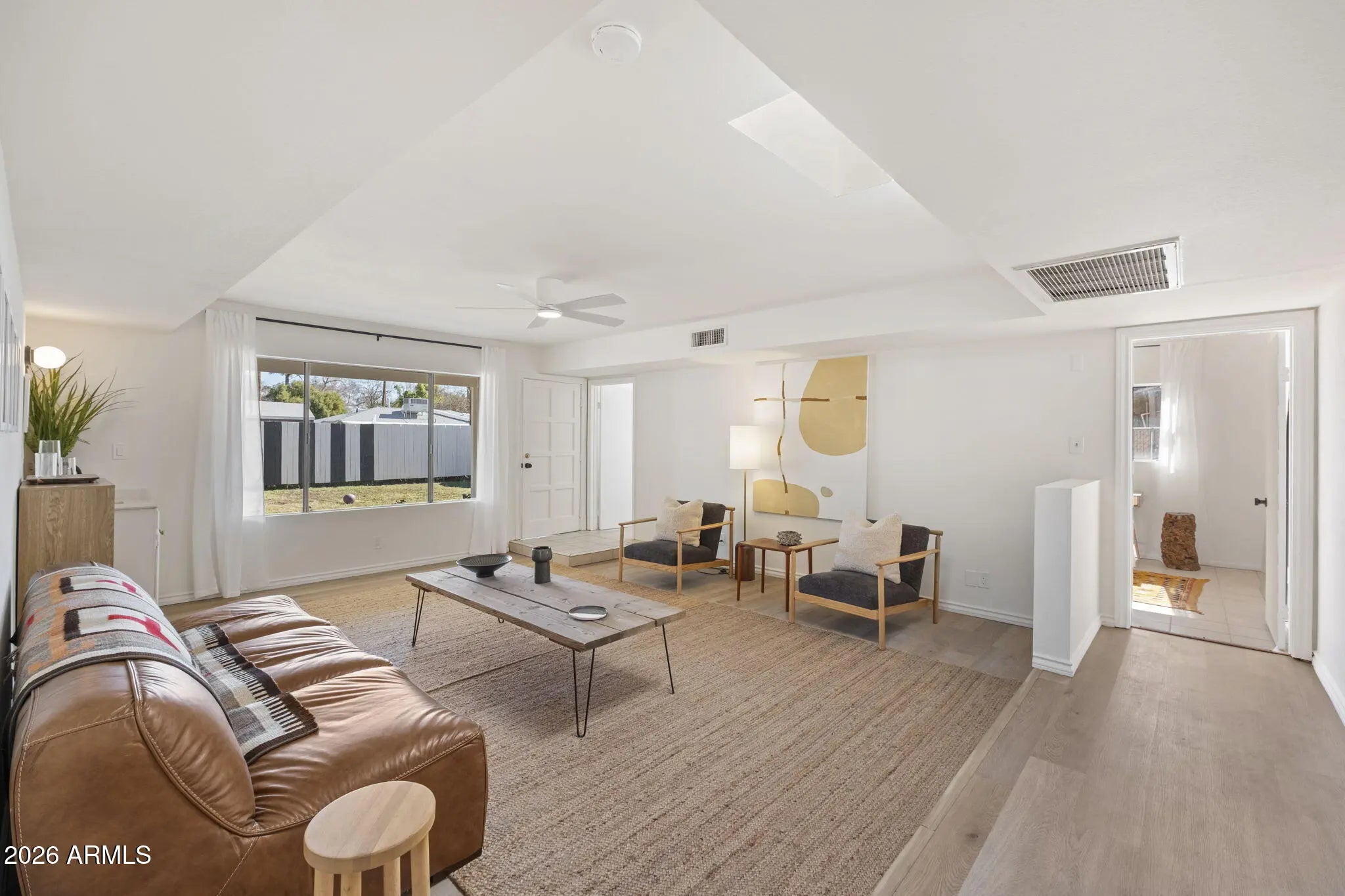 Stunning mid-century red brick home in the Homestead Historic District offering 4 bedrooms and 2,303 sq ft of thoughtfully updated living space. This property blends original architectural charm with a complete designer remodel. Features include corner windows, painted pine ceilings, and a wood-burning fireplace with optional gas connection. The bright and open floor plan provides flexibility for families or multigenerational living. The oversized primary suite includes an ensuite bath and walk-in closet. There is a living room plus a larger family room that offers a wet bar, sky light and direct access to the backyard, creating an ideal setup for entertaining. Two of the bedrooms have walk in closets offering ample storage. The covered patio overlooks a generous yard with ample space for outdoor living, play, or future pool. Major improvements include new HVAC systems in 2022, new roof in 2025 new flooring and interior paint throughout, high-end Kohler sinks, faucets and toilets, and brand-new appliances that convey. Located on a quiet street with convenient access to Biltmore, Arcadia, Scottsdale, Central Phoenix and Sky Harbor Airport. A rare opportunity to own a fully updated home with authentic mid-century character in a prime central location.