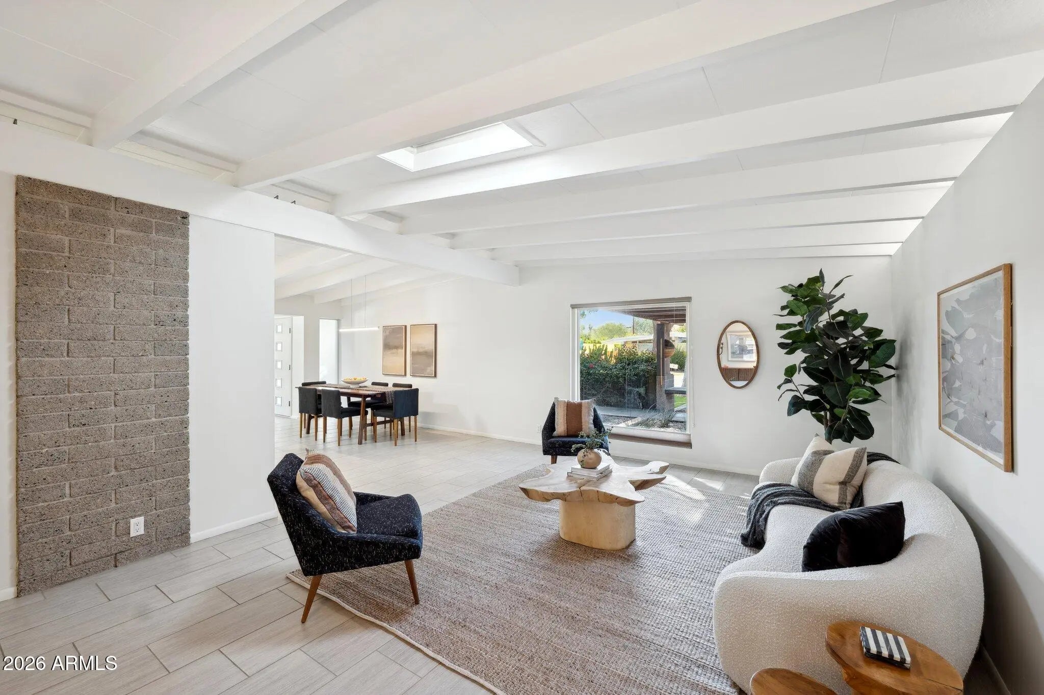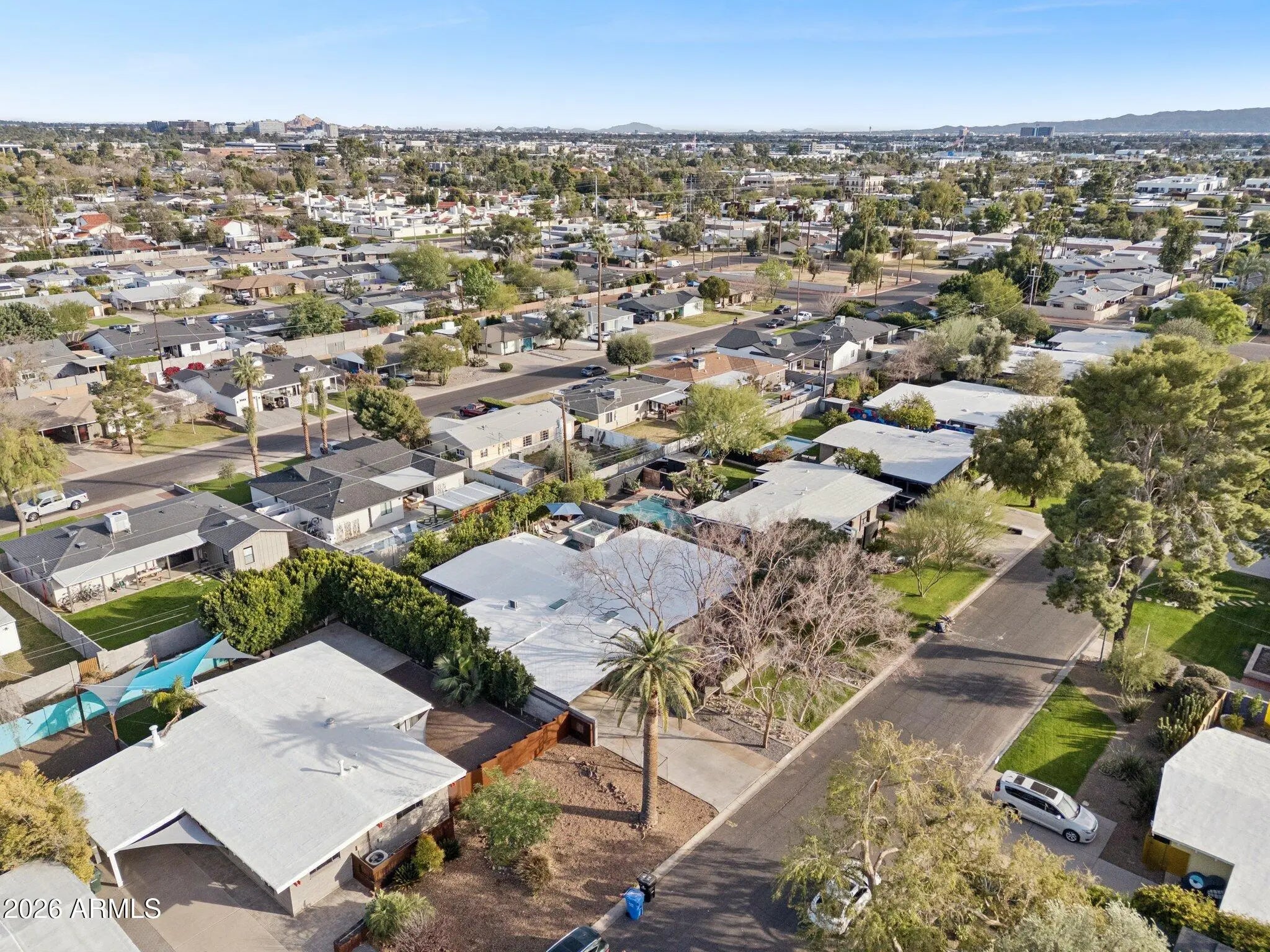 Introducing a truly one-of-a-kind Ralph Haver masterpiece, a rare opportunity in the highly coveted Marlen Grove neighborhood. This exceptional home honors the integrity and spirit of iconic mid-century design while seamlessly integrating a sophisticated, permitted addition that nearly doubles the size of any other Haver home in the area. Thoughtfully expanded by a licensed contractor with full City of Phoenix permitting, the residence marries classic architecture like signature vaulted ceilings, exposed beams, and striking clerestory windows with a highly functional modern floor plan. Inside, you'll find 4 bedrooms, including two with en-suite bathrooms, a dedicated office, two separate living spaces, 3.5 baths, and a resort like backyard. Every detail was crafted to enhance livability without compromising the timeless aesthetic that defines a true Ralph Haver design. The outdoor space is an entertainer's dream: a newer pool, expansive outdoor living area, a stylish covered patio, cozy fire pit, and a hard-to-find two-car covered parking. This is not just a home, it is a work of art, a celebration of architecture, and an unparalleled opportunity in one of the valley's most notable mid-century enclaves.