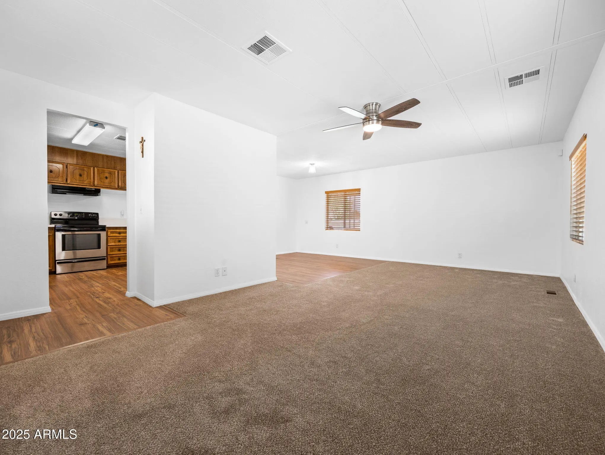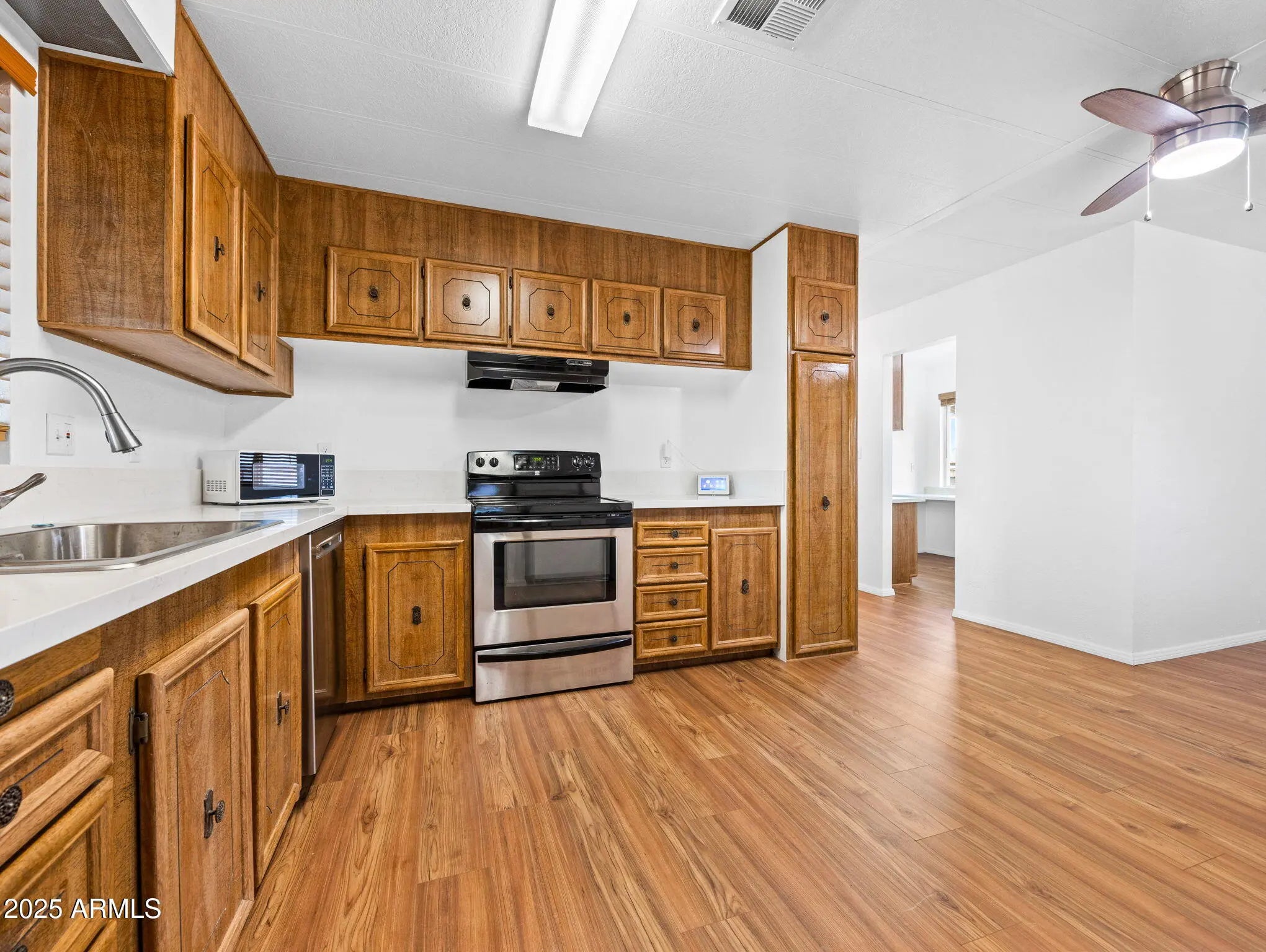 Welcome Home! This fully remodeled 2-bedroom, 2-bath manufactured home on owned land w/ no HOA, has been upgraded from top to bottom. Featuring brand new flooring, quartz countertops, & brand new spacious bathrooms, every detail has been thoughtfully updated. The spacious master bedroom includes a walk-in closet with custom shelving in both bedrooms. New siding & concrete skirting, insulation, ½-inch sheetrock, and new vapor barrier provide peace of mind for years to come. New Paint inside & outside, New block-fenced yard with an RV gate, RV parking, and cleanout, along with a brand new Septic. With a new hot water heater and countless other updates, this home is truly move-in ready and waiting for you.