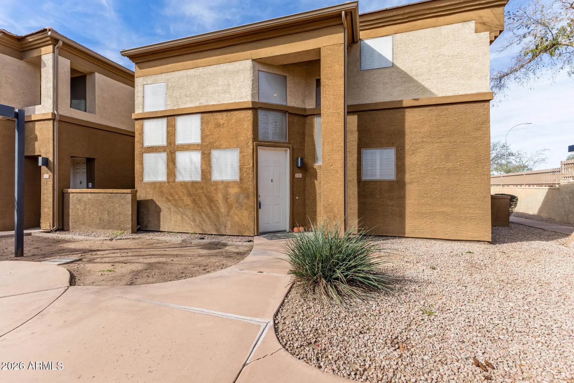 This charming 3 bedroom, 2 bathroom end unit Townhome is located in a gated community near ASU, light rail, shopping, restaurants, and more. It features a desirable floor plan with a bedroom and a full bath downstairs and two additional bedrooms and a full bath upstairs. The home offers soaring ceilings, wood flooring, tile in the kitchen, and plantation shutters throughout. The eat in kitchen includes ample cabinetry, pantry storage, and all appliances, including a brand new refrigerator, washer (2025), and dryer (2026). Enjoy a private patio and an attached one car garage with built in cabinets for extra storage. Two Trane AC units (2024) will keep you cool in the hot summer months. A new water heater was installed in 2026 and a new garage opener was installed in 2025. This convenient location is close to dozens of restaurants and shopping options, with access to a sparkling community pool and spa. What are you waiting for? Act now!