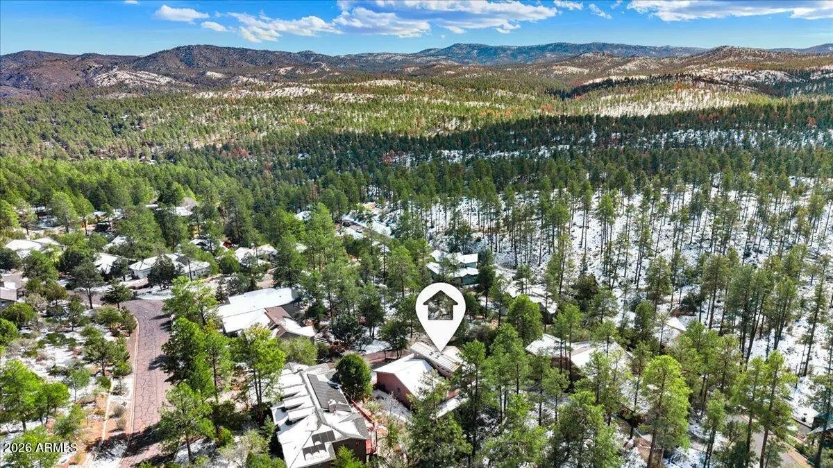 Enjoy the beauty of the Ponderosa Pines in highly sought-after Cathedral Pines from the expansive deck overlooking a usable backyard. This custom 4BR/3BA Prescott home offers privacy and convenient main-level living just minutes from downtown. Situated on a flag lot with a private drive, the home welcomes you with soaring 20' wood-accented ceilings in the entry and skylights that create a light, bright interior. Features include slate and wood flooring, gas fireplace, knotty alder cabinetry, induction range, pantry, large island, and walls of windows. The owner's suite offers vaulted ceilings, dual sinks, Jacuzzi tub, gas fireplace, walk-in closet with laundry access, and private deck entry. The lower level includes a spacious family room and oversized 4th bedroom ideal for hobbies, crafts or exercise. Wraparound Trex decking, fenced patio with garden space, and evident pride of ownership complete this exceptional property.
