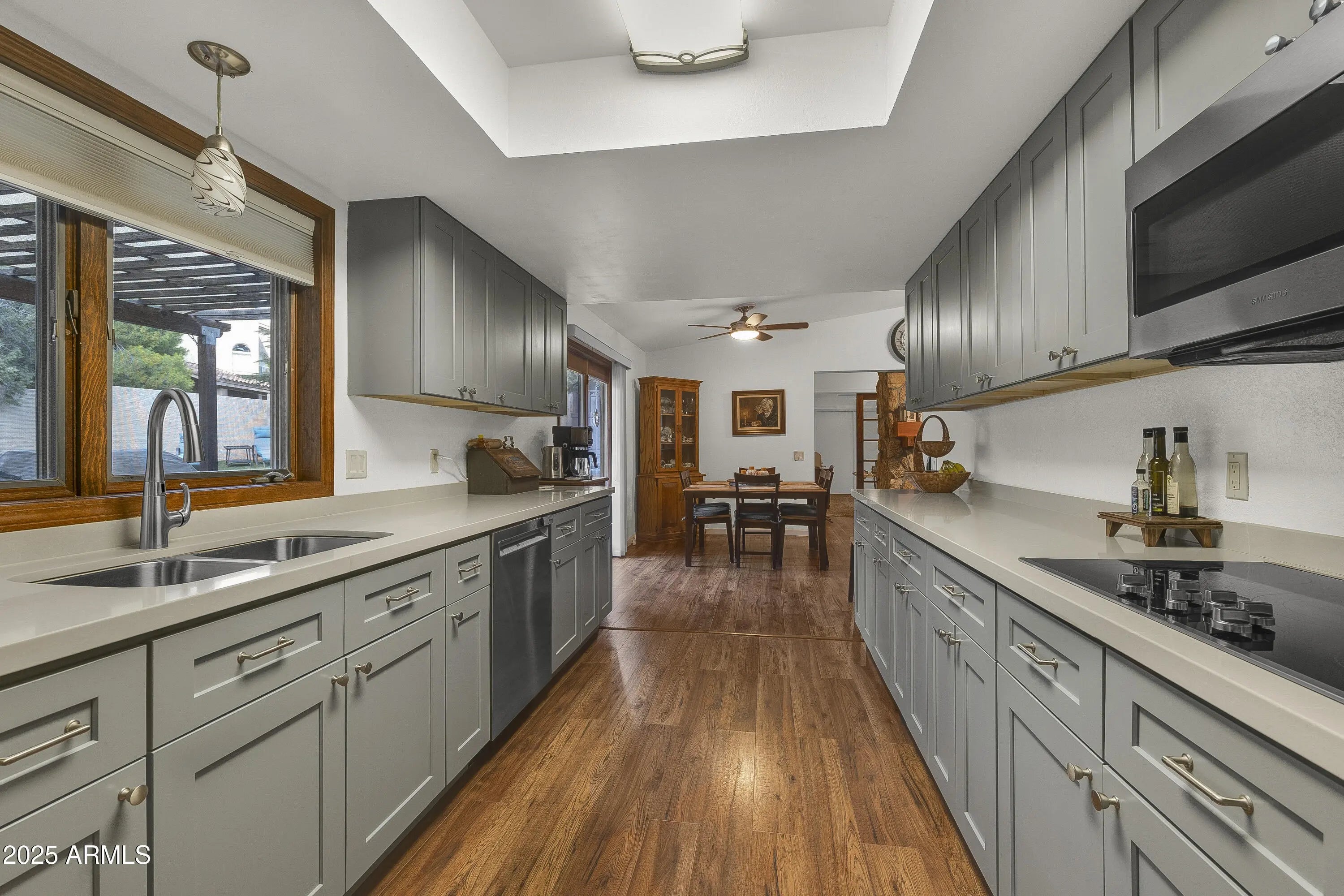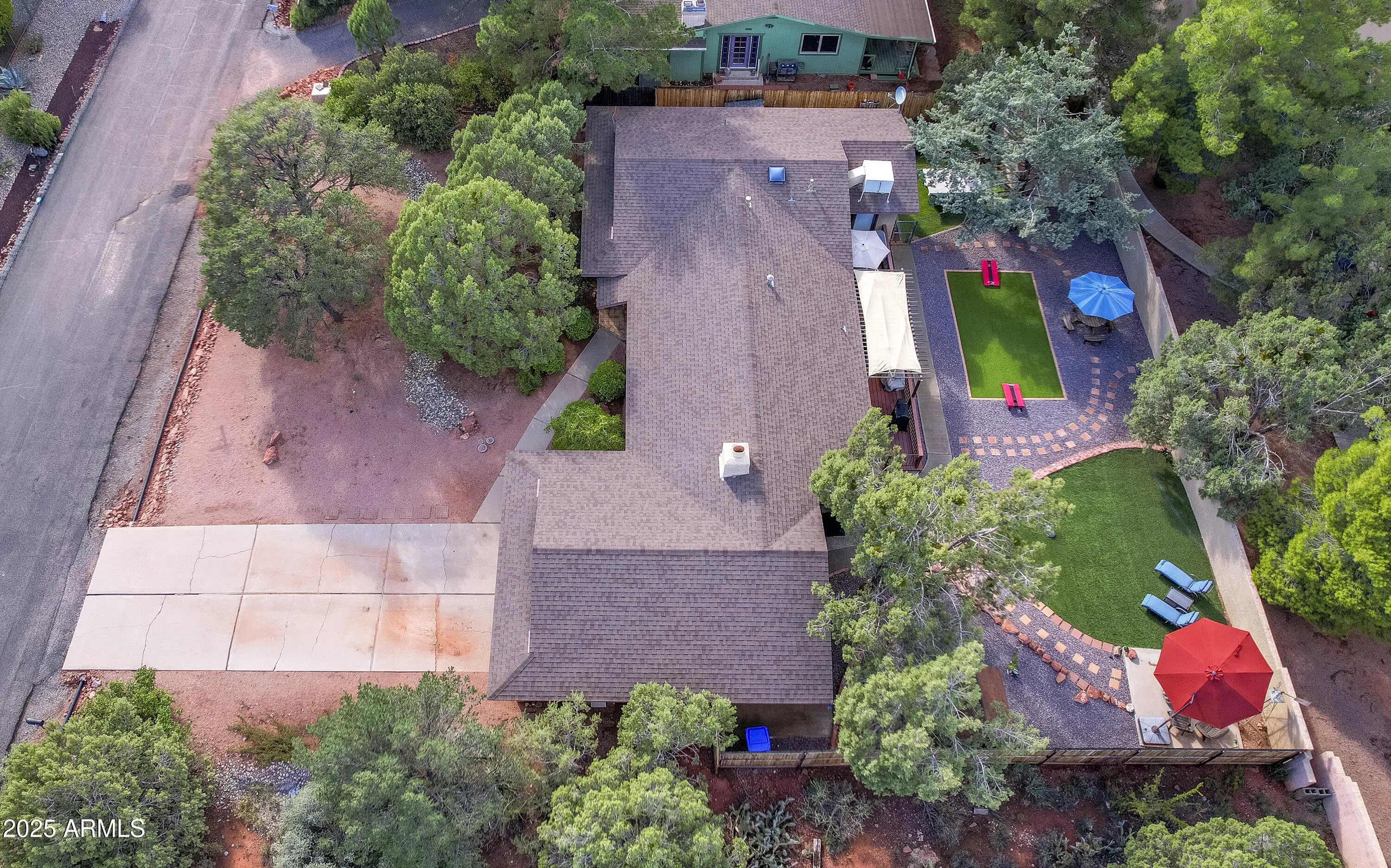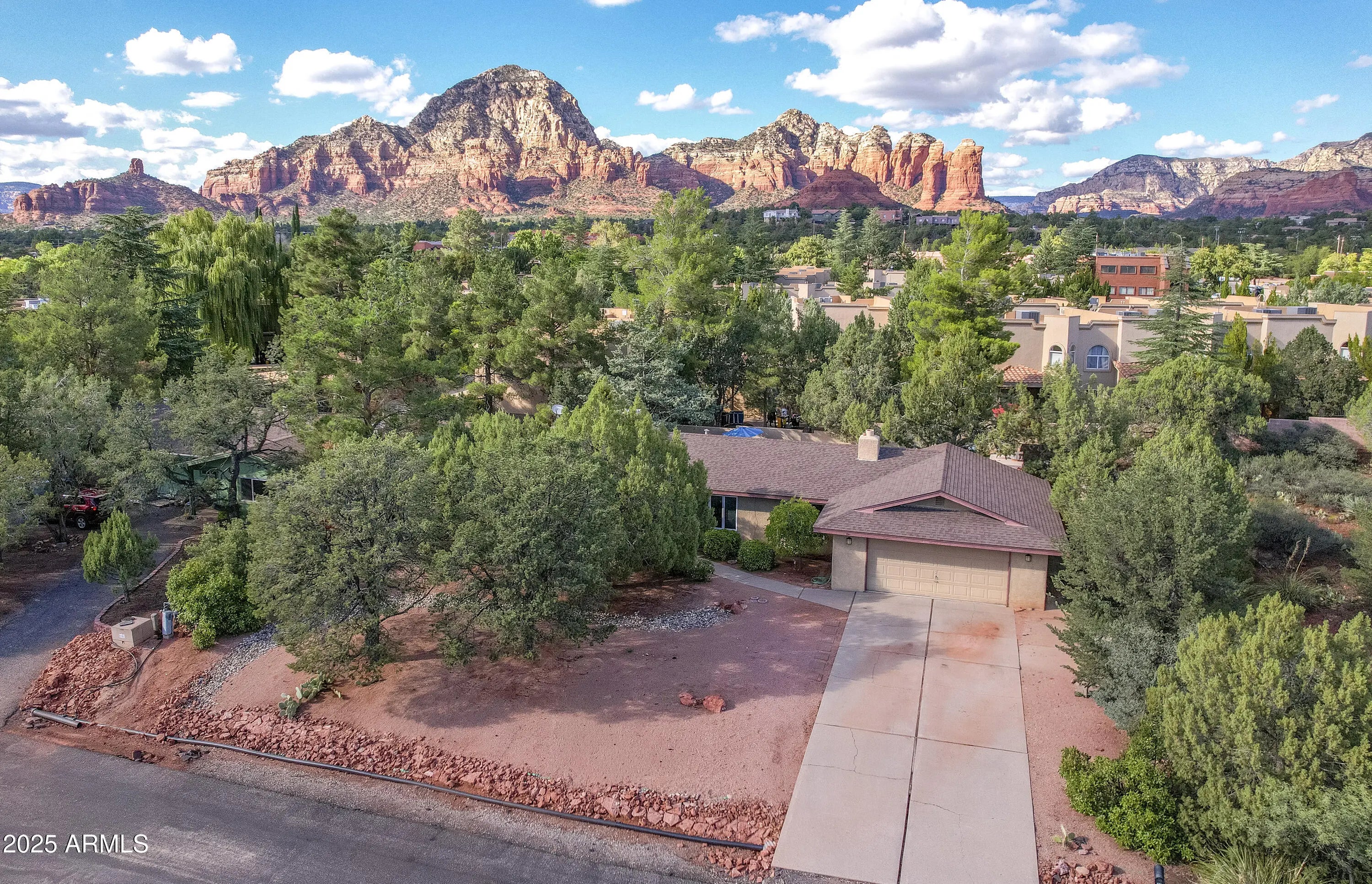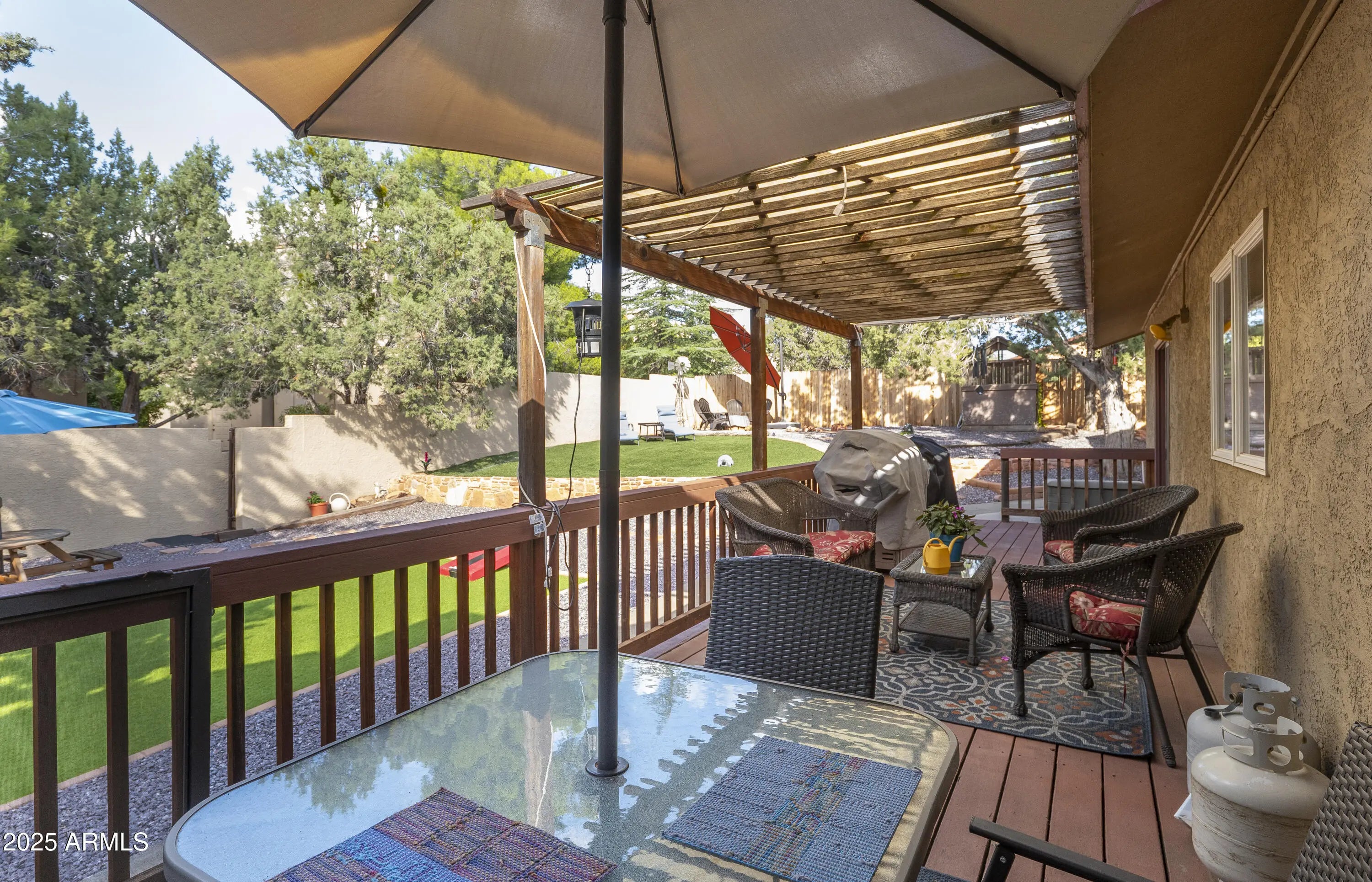Discover paradise tucked away in the heart of Sedona. It offers the perfect blend of Sedona living, providing an idyllic retreat for peace and inspiration. Enjoy easy access to hiking trails, art galleries, and world-class dining. This beautifully designed home comes complete with modern upgrades: luxury vinyl flooring, tiled shower and bath. Chef's dream with state-of-the-art appliances, custom cabinetry, and a double oven. Open-concept living spaces perfect for gatherings, featuring high ceilings and a cozy fireplace. Step from your bedroom to an ample deck and your private oasis to enjoy the tranquil surroundings or homegrown vegetables from your garden. Each bedroom offers privacy and generous closets. Additional versatile room suitable for a home office, gym, or creative studio.