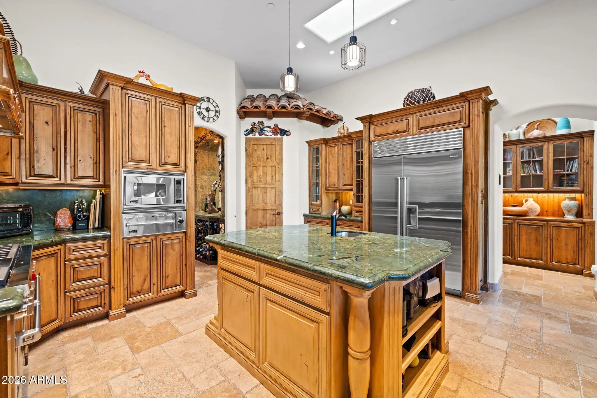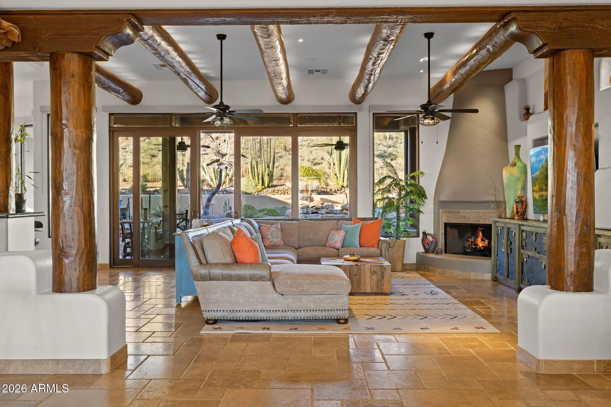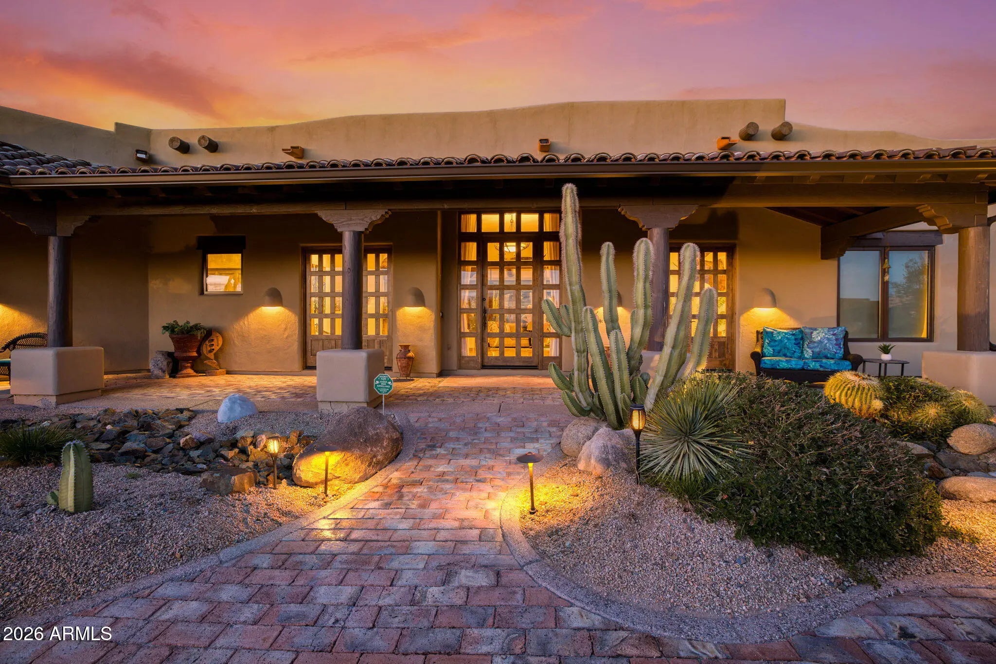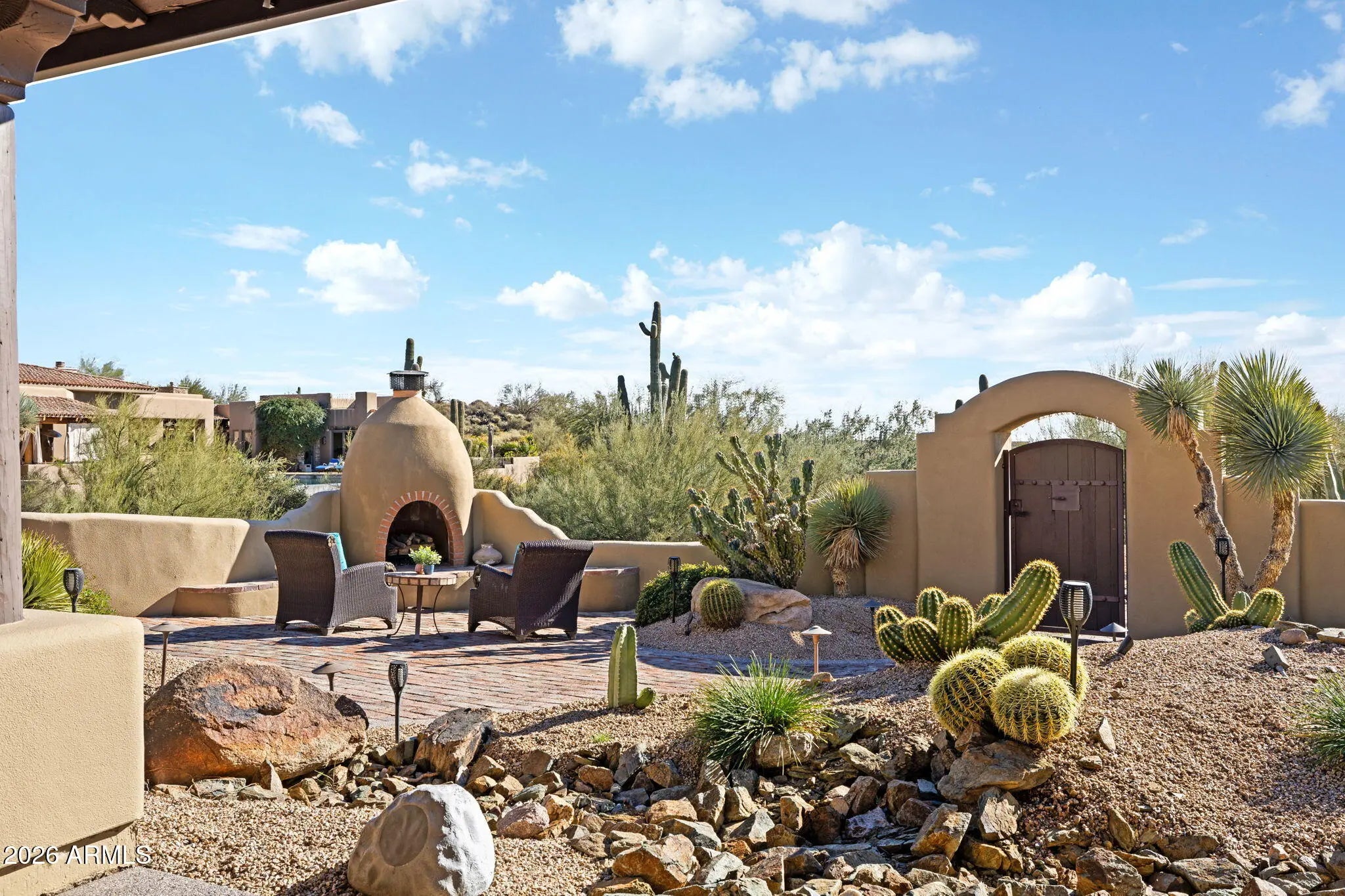 Truly one-of-a-kind! This extraordinary Spanish Estate delivers exceptional Privacy and Peaceful Desert Elegance, perfectly nestled against the Mountain Preserve on a Premium 1.92-Acre cul-de-sac lot in prestigious Canyon Ridge Estates! Wake up to breathtaking Black Mountain views and end each day with unforgettable Arizona sunsets. This timeless Estate blends authentic Craftsmanship with refined, Functional Luxury, a Rare Turnkey Opportunity in the heart of Cave Creek! The 4,184 sq ft Main Residence and 517 sq ft Detached Casita showcase classic Old World architecture paired with modern comfort. A pavered circular drive leads to a private courtyard surrounded by mature desert landscaping and a warm, inviting outdoor fireplace. Inside, exposed wood beam vigas, custom alder cabinetry, Rain Forest Granite, and handcrafted tile details create rich character and warmth. The Chef's kitchen is designed to impress with Wolf, Sub-Zero, and Fisher & Paykel appliances, oversized island, café dining, and breakfast bar - ideal for entertaining! The Owner's Retreat is pure serenity, featuring a fireplace, sitting area, and stunning custom barrel ceiling. Three additional ensuite guest rooms offer comfort and privacy, while the detached casita provides flexible luxury living with fireplace, kitchenette, living area, walk-in closet, and custom bath. Step outside to your private resort sanctuary backing to saguaro-dotted mountains, fruit trees, beautiful landscapes. Enjoy a heated negative-edge saltwater pool and spa, multiple lounge areas, dual fireplaces, built-in BBQ, pool bath, and spiral staircase leading to a rooftop deck capturing glowing crimson sunsets and sparkling city lights! This is not just a home -- it is an elevated desert lifestyle.