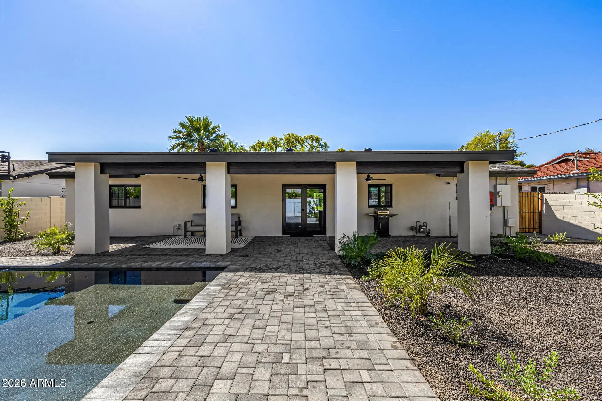 Fully reimagined Scottsdale remodel in an unbeatable location walking distance to the San Francisco Giants Spring Training facility, restaurants, and entertainment. This designer renovation features a new roof, new HVAC, tankless water heater, all new plumbing, new windows, flooring, cabinetry, bathrooms, and a chef's kitchen with gas range and new appliances. Thoughtfully expanded with new garage, laundry room, courtyard, and covered patio. Backyard showcases a newly built pool and fresh landscaping with incredible entertaining potential. All new exterior stucco and paint complete the modern curb appeal. Ideal full-time residence, second home, or high-demand Airbnb investment in the heart of Scottsdale. Turn-key, move-in ready, and built for today's lifestyle.
