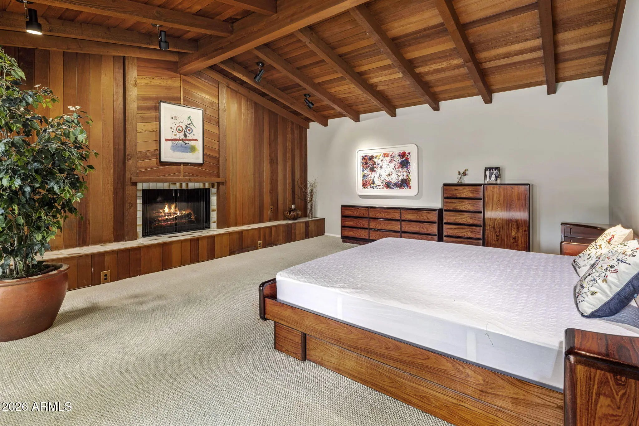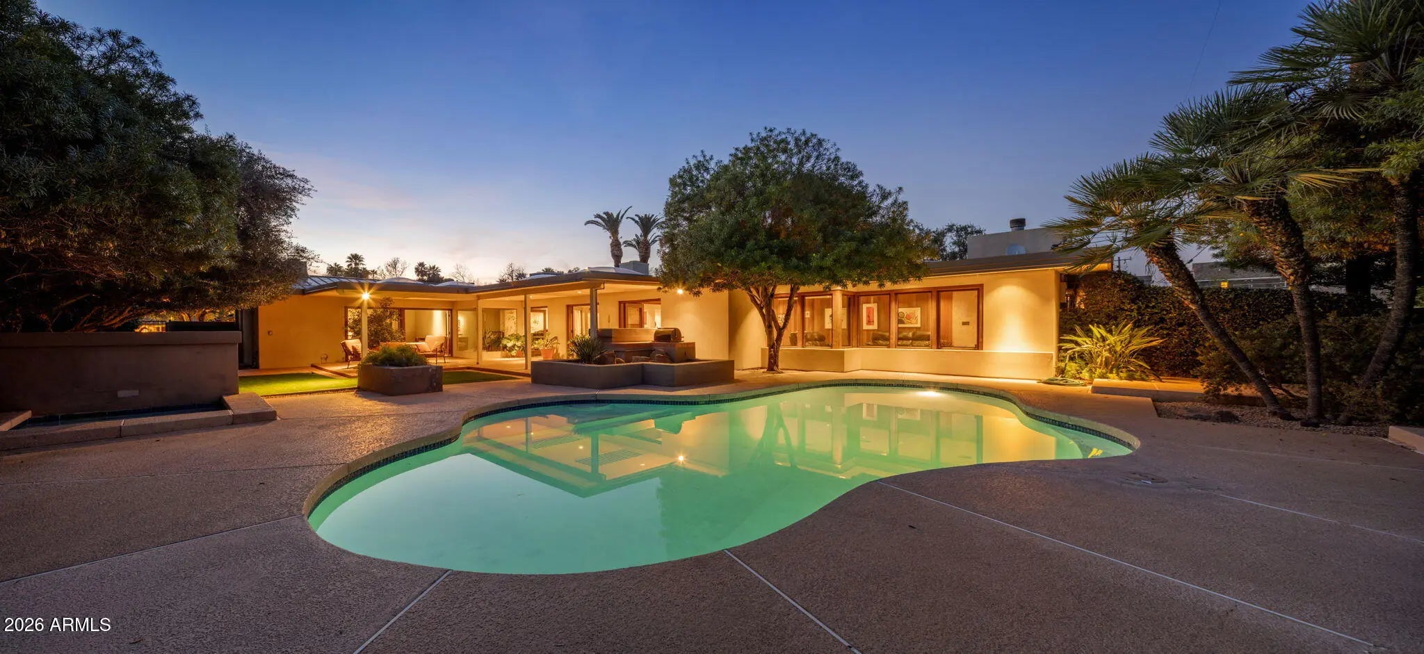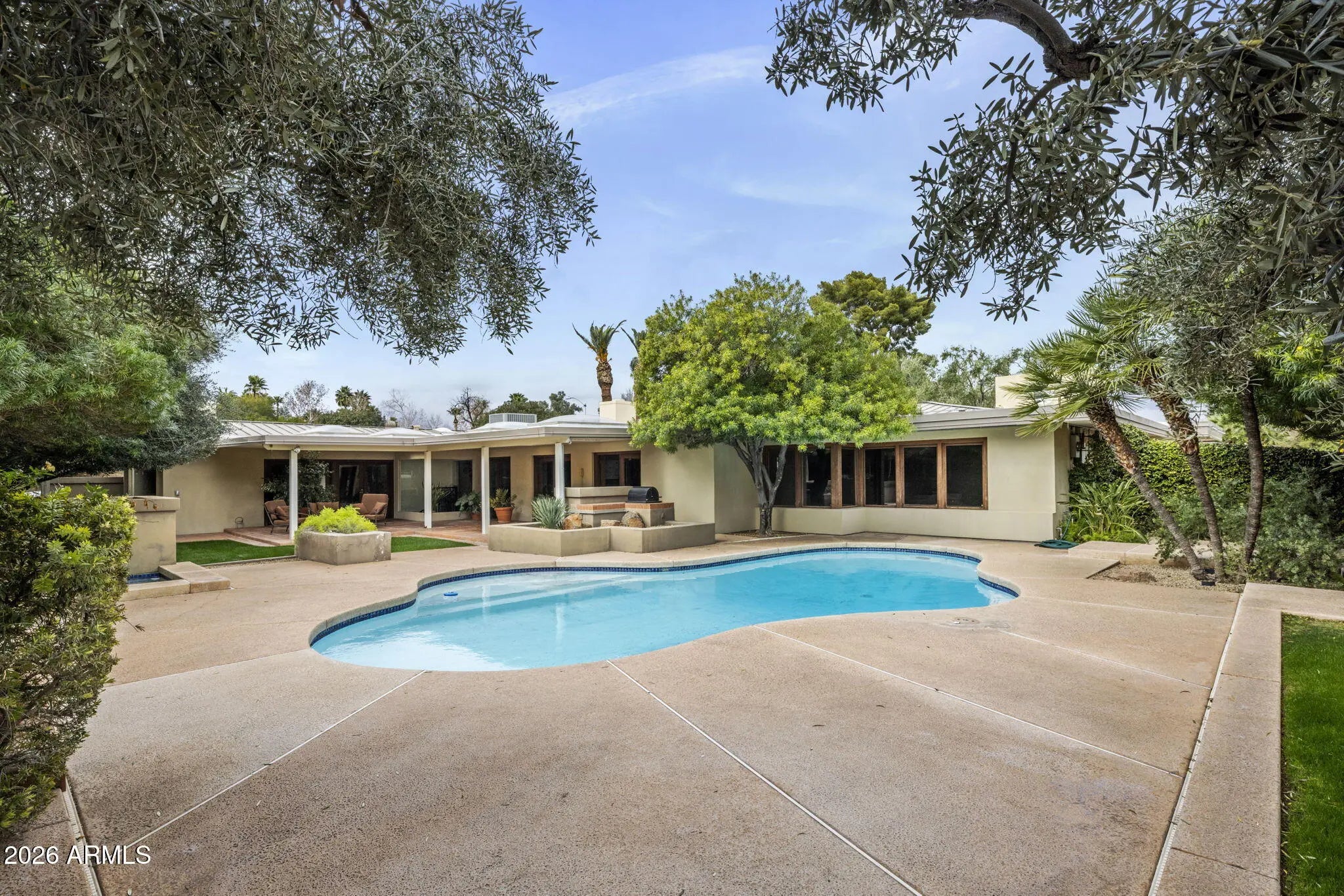 In a world of quick flips and fast renovations, this is what long-term ownership looks like. For 50+ years, one family cared for this North Central Phoenix home tucked into the highly coveted Palmer Estates subdivision. Built in 1957 and reimagined in 1978, modern design meets North Central charm at this one-of-a kind contemporary masterpiece. Thoughtfully designed with clean lines, open living spaces, and seamless indoor/outdoor flow, this home is built for both everyday comfort and elevated entertaining. Solid block construction sits on a beautiful 18,247 sf interior corner lot with lush yard and mature landscaping. Aspen & redwood paneled walls add warmth; Saltillo tile floors anchor the main living spaces. Walls of glass fill the home with natural light and frame front/backyard views. The heart of the home features expansive living and dining areas filled with natural light and a sleek modern aesthetic--perfect for gatherings or quiet nights in. The kitchen anchors the main level with generous prep space and easy connection to the main living areas, ideal for hosting. The stunning primary retreat showcases wood-beamed vaulted ceiling, gas fireplace and doors leading to the backyard. Downstairs discover a cedar-finished 2,000 bottle wine cellar. Step out back to your own resort-style oasis featuring a heated diving pool & spa, fire pit, built-in natural gas BBQ, and a large covered patio with dramatic cantilevered ceilings. Just minutes to the Murphy Bridle Path, Uptown Farmer's Market, Phoenix Mountain Preserve, Brophy, Xavier, Madison Simis and Meadows, downtown Phoenix and much more. This is a rare treasure that will not last, so don't hesitate or it will be gone!