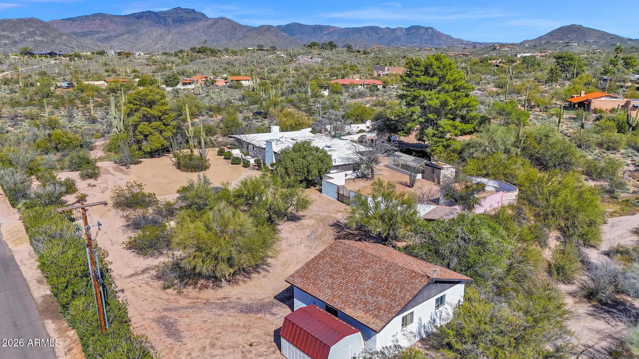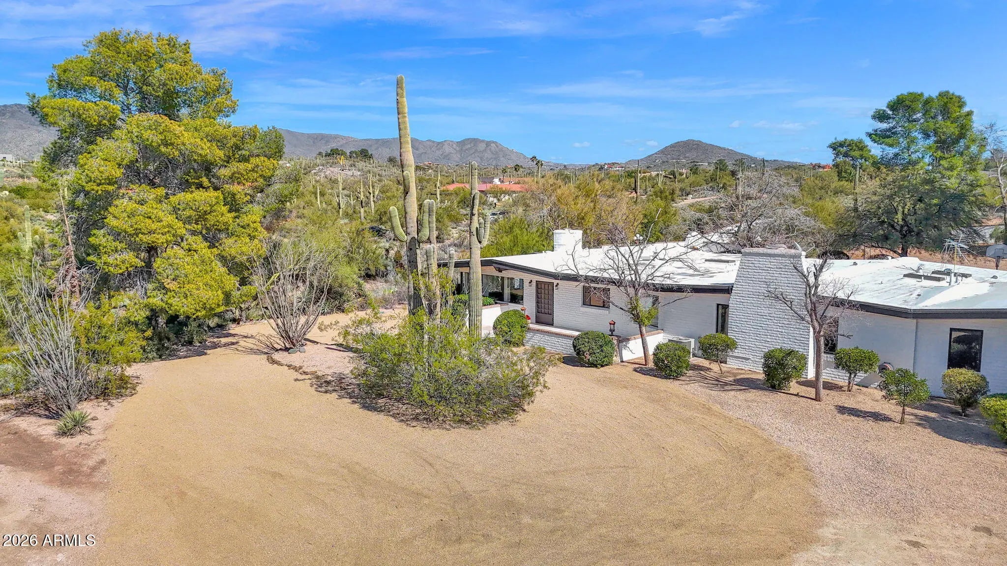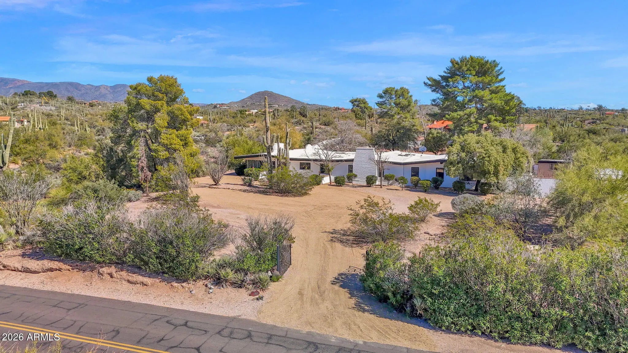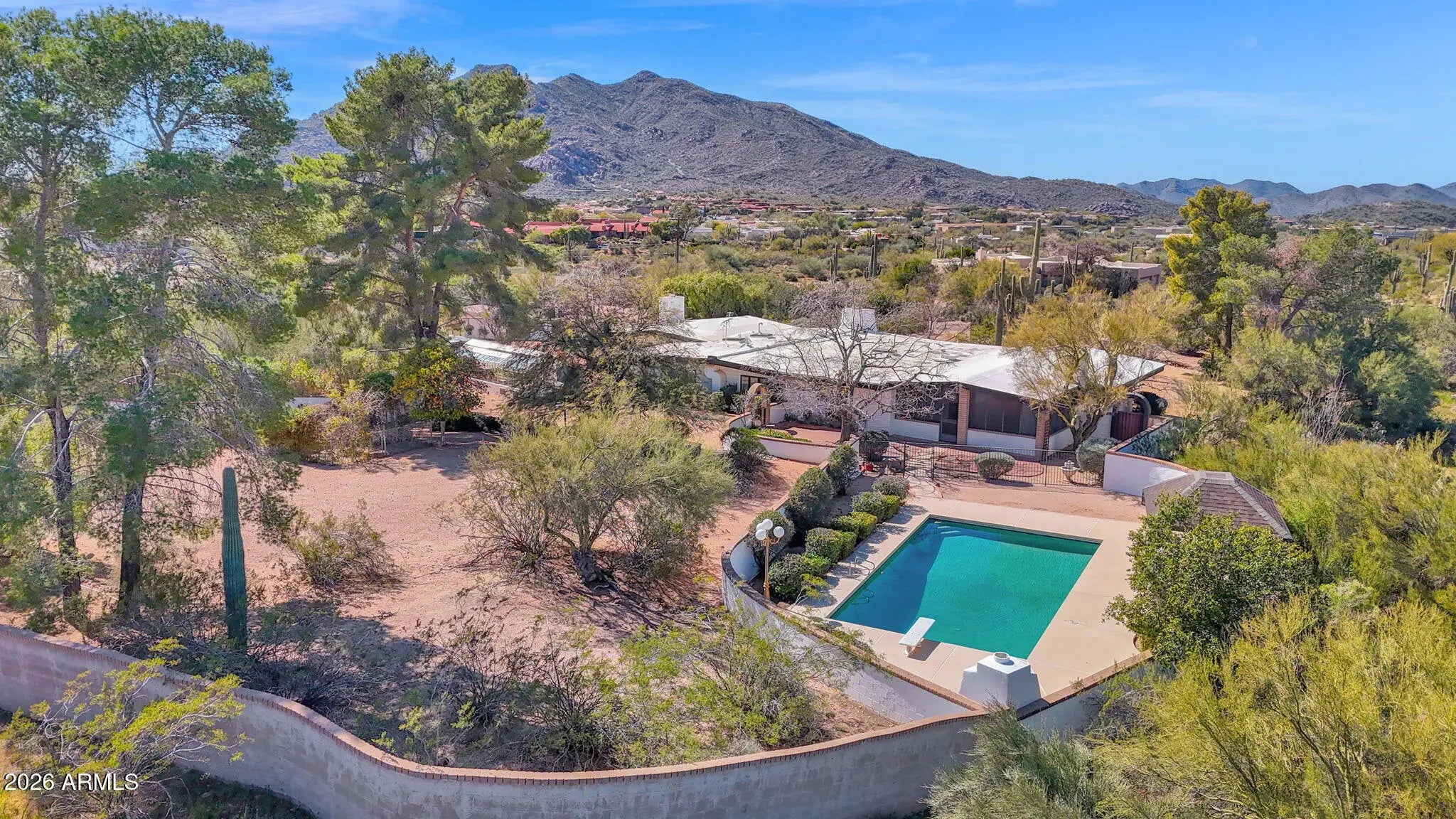 Rare 4 acre, buildable estate property in a prime location near downtown Carefree with panoramic mountain views and exceptional expansion potential. Usable acreage allows for adding an RV garage, collector car garage, guest house, casita, workshop, or other structures. Designed by renowned Carefree architect Gerry Jones, this 3,935 square foot home offers 4 bedrooms and 4 bathrooms. Originally built in the 1950s and expanded and improved over the past 30+ years, the residence blends architectural character with functional livability. Features include a 35-foot diving pool, fenced for child safety, a large adjacent yard suitable for playground or recreation, full sunshine or shaded patio areas, 2 car garage, privacy, and sweeping mountain views. Ideal for customization, renovation, multigenerational living, car collectors, RV owners, or long term investment in the North Scottsdale & Phoenix foothills of Carefree.