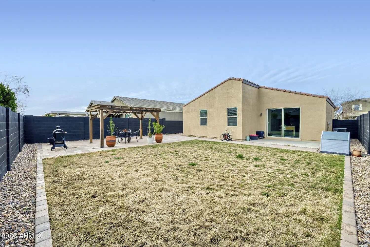 Soft, beautifully renovated and move-in ready, this modern neutral home offers the perfect blend of comfort and style. Featuring 3 bedrooms, 2 bathrooms, and just under 1,300 sq ft, the open-concept layout feels light, airy, and welcoming from the moment you walk in. New flooring accompanied by fresh interior and exterior paint enhance the clean, contemporary aesthetic throughout. Step outside to an expansive, beautifully landscaped lot designed for year-round entertaining. Enjoy the irrigated natural grass, pavers, take a seat in your patio furniture nestled beneath the pergola so thoughtfully adorned with ambient lighting - creating the perfect setting for gatherings, relaxing evenings, or weekend barbecues.
