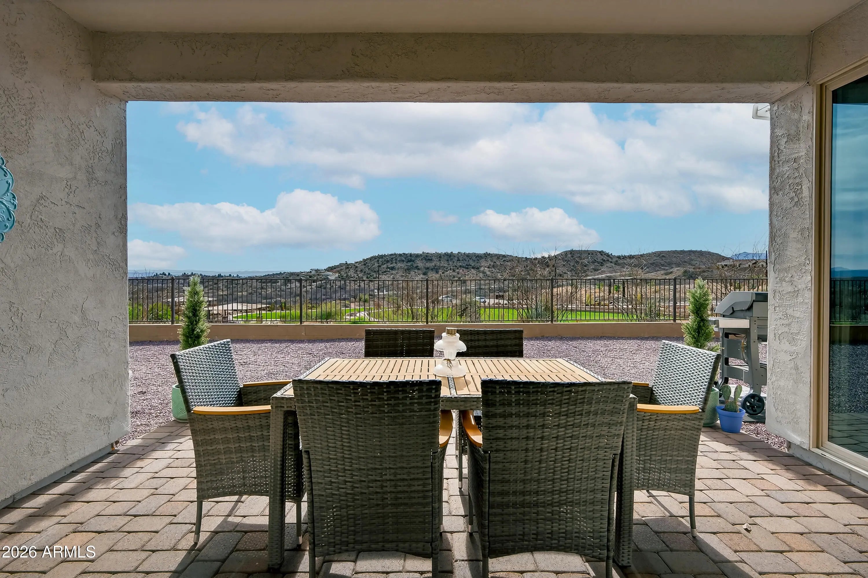 Situated atop one of Mountain Gate's most desirable premium lots, this exceptional home offers breathtaking, unobstructed views of the Verde Valley. Built in 2021 and meticulously maintained, it shows like a brand-new model home. The thoughtfully designed floor plan features two ensuite bedrooms--essentially dual primary suites--plus a third guest bathroom, providing comfort and privacy for owners and visitors alike. The stunning kitchen showcases leathered granite countertops, a natural gas range, and upscale finishes throughout, making it both functional and beautiful. Step outside to your expansive backyard with forever views and endless potential. There is ample room to create your dream outdoor oasis with a pool, spa, fire pit, or entertaining space tailored to your lifestyle. Superior construction quality, a prime location, and placement within one of the most sought-after neighborhoods in Clarkdale truly set this home apart.