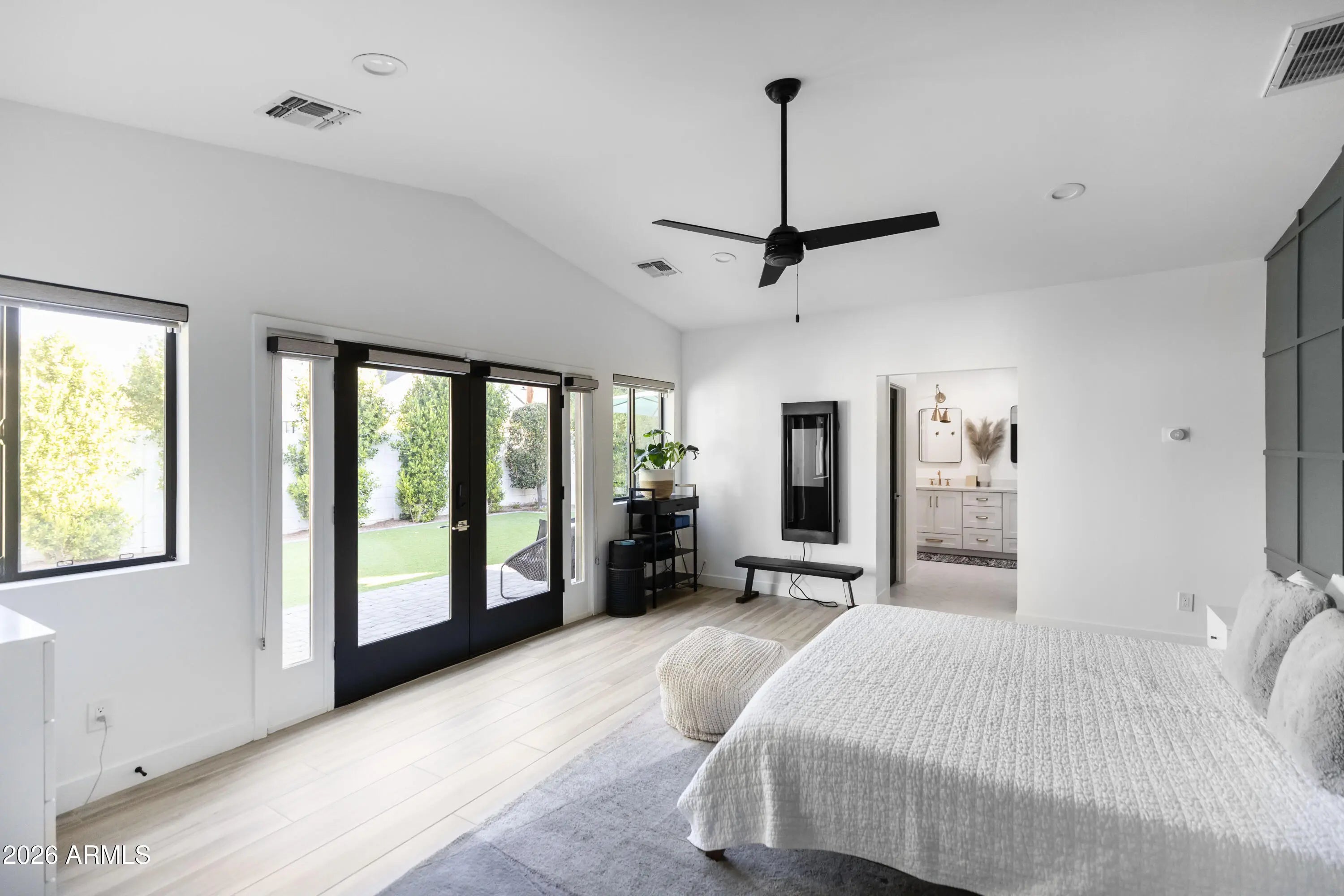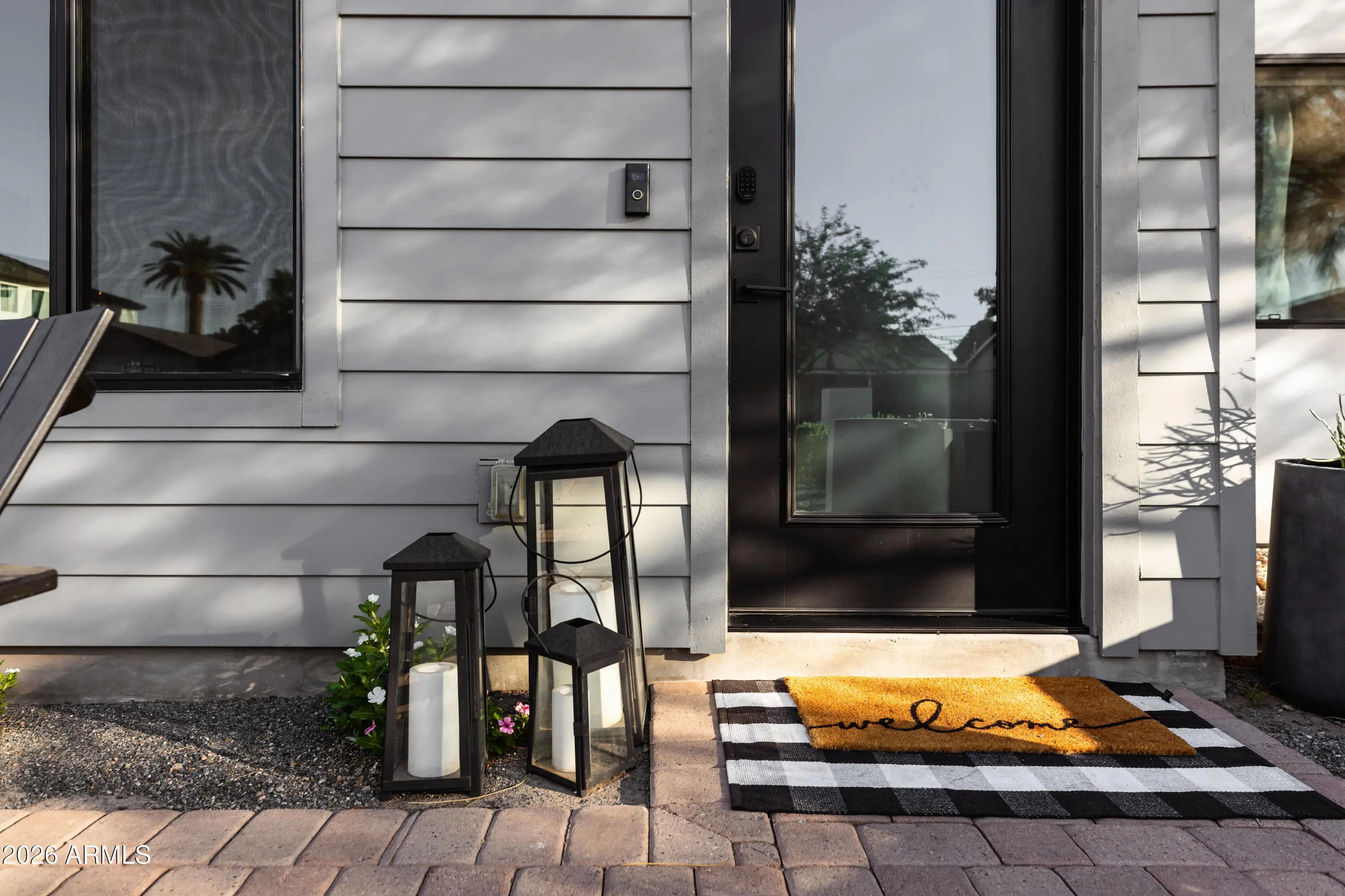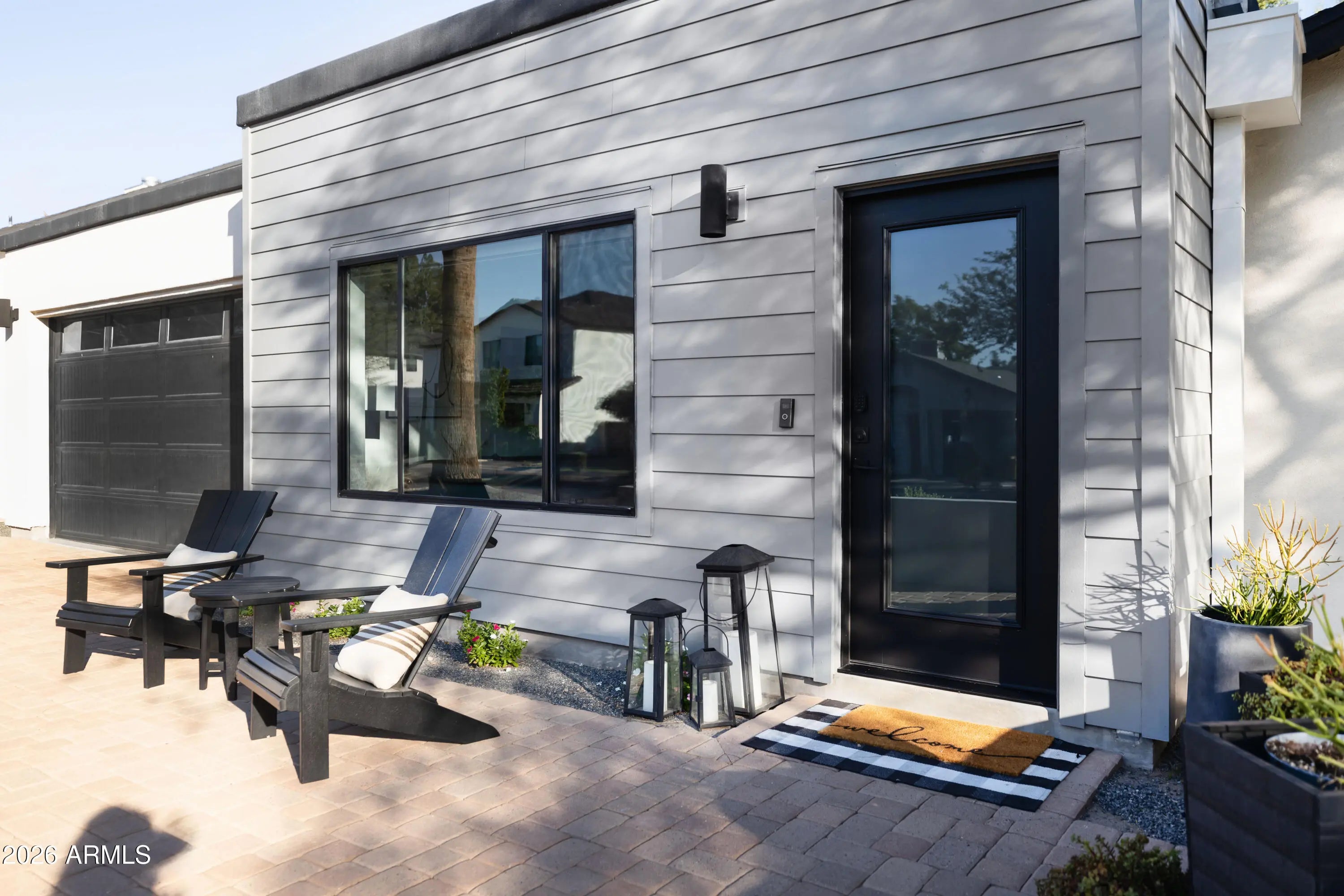 Welcome to this stunning modern home nestled on a highly sought-after street in the desirable Arcadia Lite neighborhood, within the charming Kachina Gardens community. This beautifully remodeled residence, updated in 2018 with impeccable finishes, offers a thoughtfully designed floor plan perfect for both entertaining and everyday living. Enjoy two expansive primary suites along with three generously sized guest rooms. The open-concept kitchen, living, and dining areas create a seamless, airy flow throughout. Step outside to a welcoming front courtyard with low-maintenance turf and lush ficus trees providing added privacy. A spacious covered patio invites year-round outdoor enjoyment. The extended-length garage features epoxy flooring and extra storage. Act now!