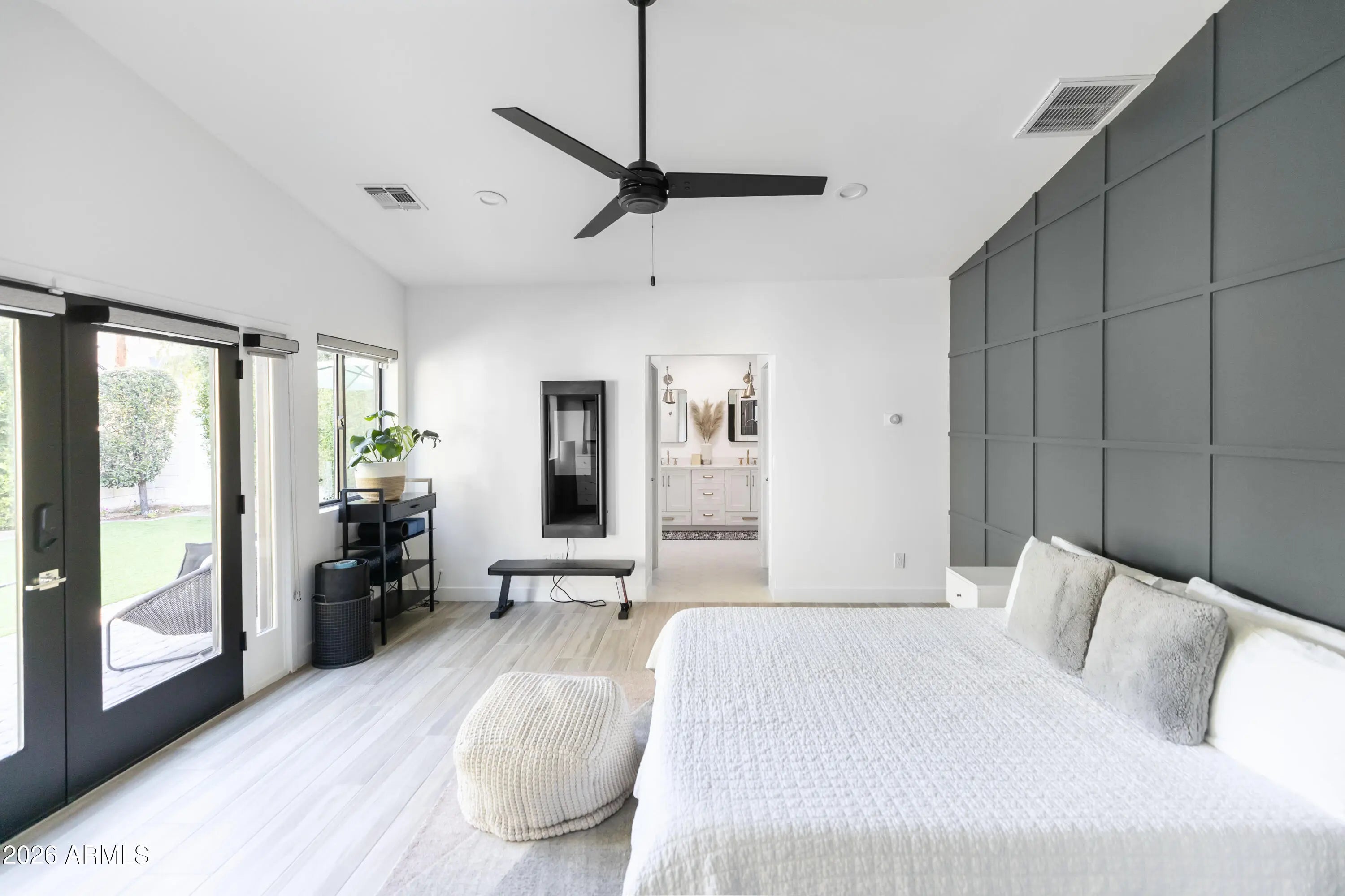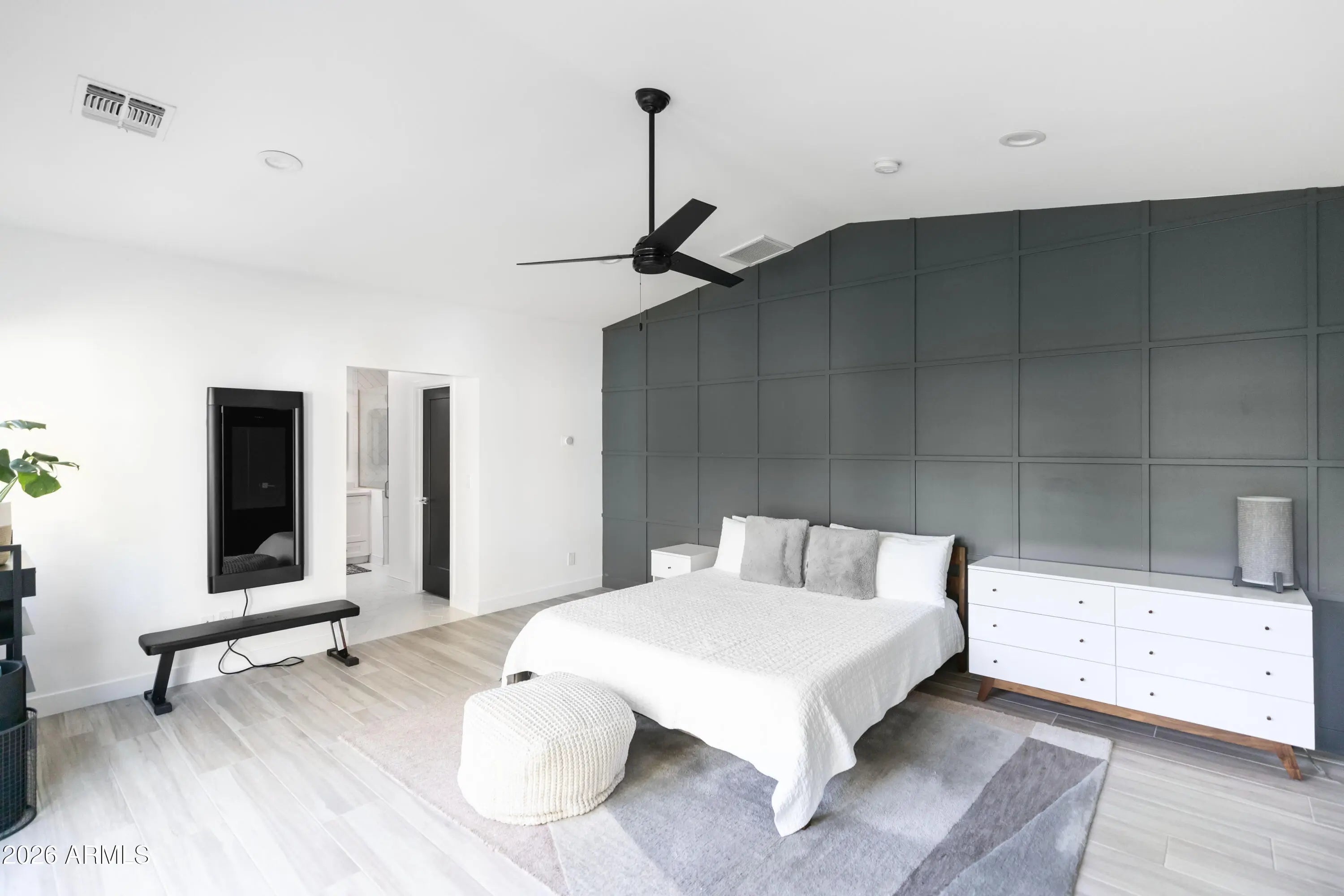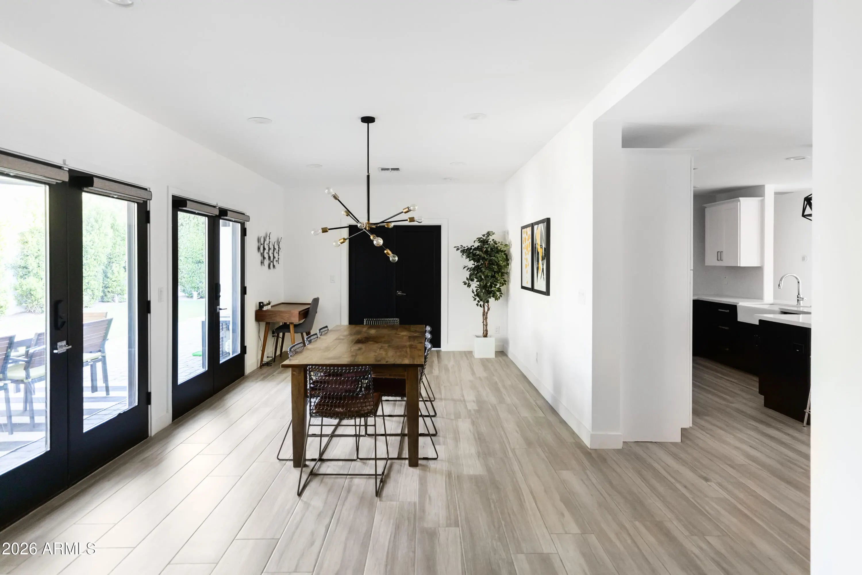 Welcome to this stunning modern home nestled on a highly sought-after street in the desirable Arcadia Lite neighborhood, within the charming Kachina Gardens community. This beautifully remodeled residence, updated in 2018 with impeccable finishes, offers a thoughtfully designed floor plan perfect for both entertaining and everyday living. Enjoy two expansive primary suites along with three generously sized guest rooms. The open-concept kitchen, living, and dining areas create a seamless, airy flow throughout. Step outside to a welcoming front courtyard with low-maintenance turf and lush ficus trees providing added privacy. A spacious covered patio invites year-round outdoor enjoyment. The extended-length garage features epoxy flooring and extra storage. Act now!