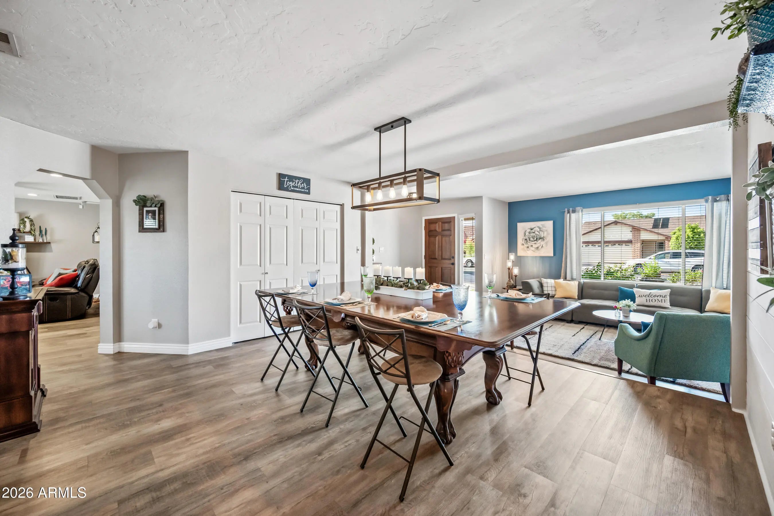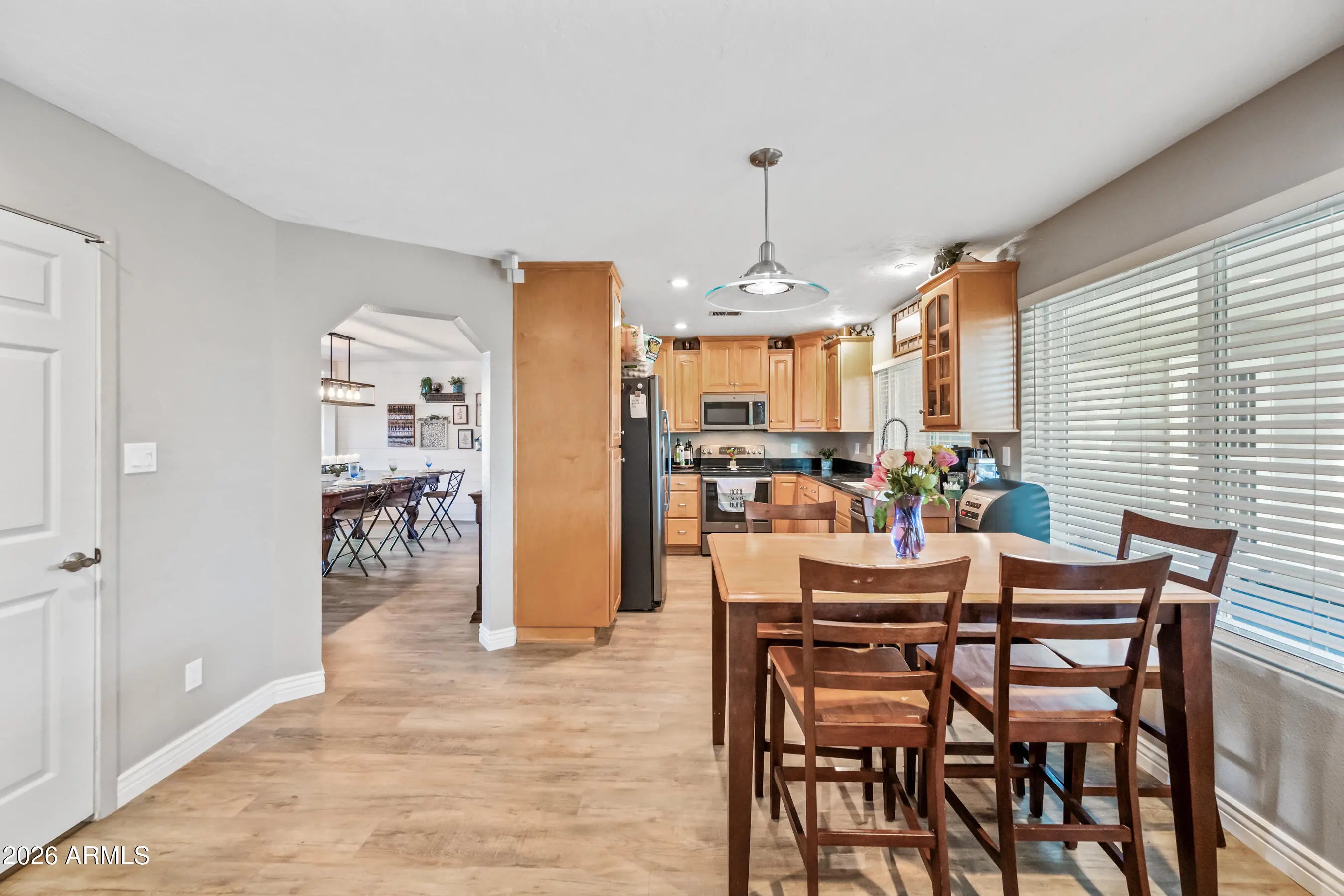JUST Reduced! Incredible value for this 2,297 sqft single story home with great floorpan! Use as a large primary suite or multigenerational living with kitchenette & separate entrance. This gem is located in the well established neighborhood of Dobson Woods ++No HOA & RV Gate. The moment you step inside, you'll be greeted by a spacious light-filled great room living space to open dining that accommodates a large table seating 10+ for hosting large gatherings. The kitchen is the hub of the home with convenient eat-In kitchen & family room . This is a great place to really kick-back and relax. You'll enjoy the expansive Primary Suite with large attached updated bathroom with dual vanities, zero entry shower with ample room to move about and can accommodate wheelchair accessibility with 3 more bedrooms & full bath with plenty of space for everyone with the possibility of creating a 2nd Primary Bedroom. The home has low maintenance luxury vinyl flooring throughout the main rooms with carpeting in 2 bedrooms. Step outside to the expansive covered patio for entertaining & relaxing. There is an RV Gate on the Eastside with room for plenty of parking & storage for all your toys and an additional backyard entry gate located on the Westside. Landscaped front and rear yards with auto sprinkler system connected to smart B-HYVE. Extended driveway with pavers extending throughout the entire back patio. The icing on the cake is the great Mesa location and the popular Non-HOA community. Approximately, 5 min to 60 fwy, 10 min to 202 South, near great schools, shopping, restaurants, places of fellowship & parks. It's time to make this Your forever Home!