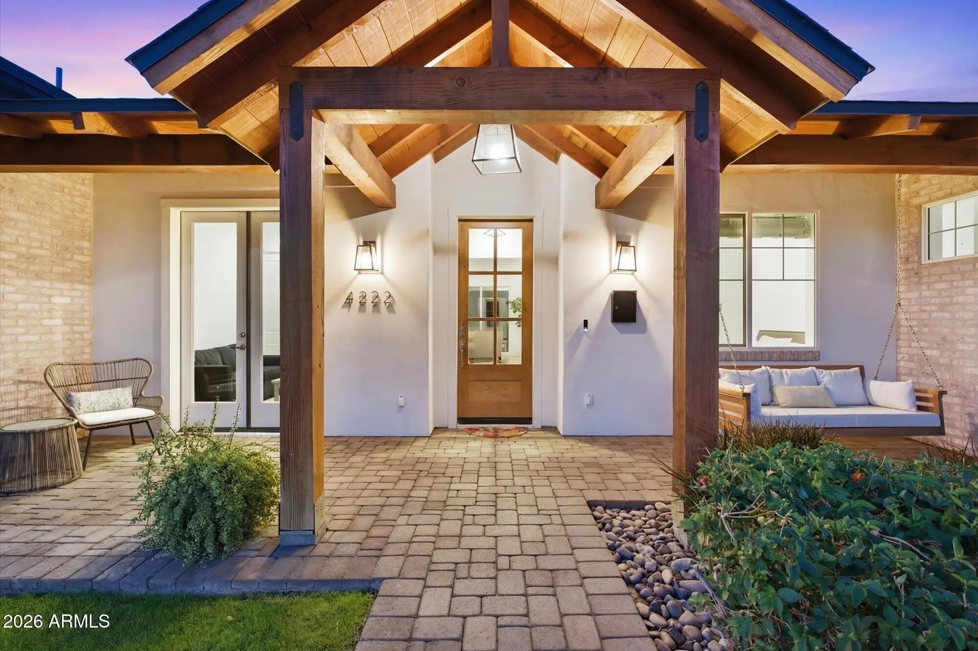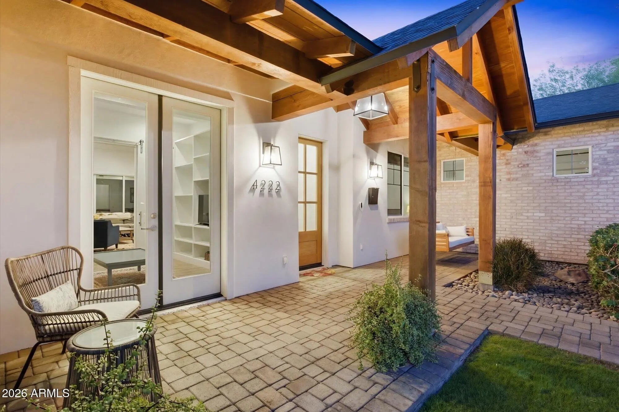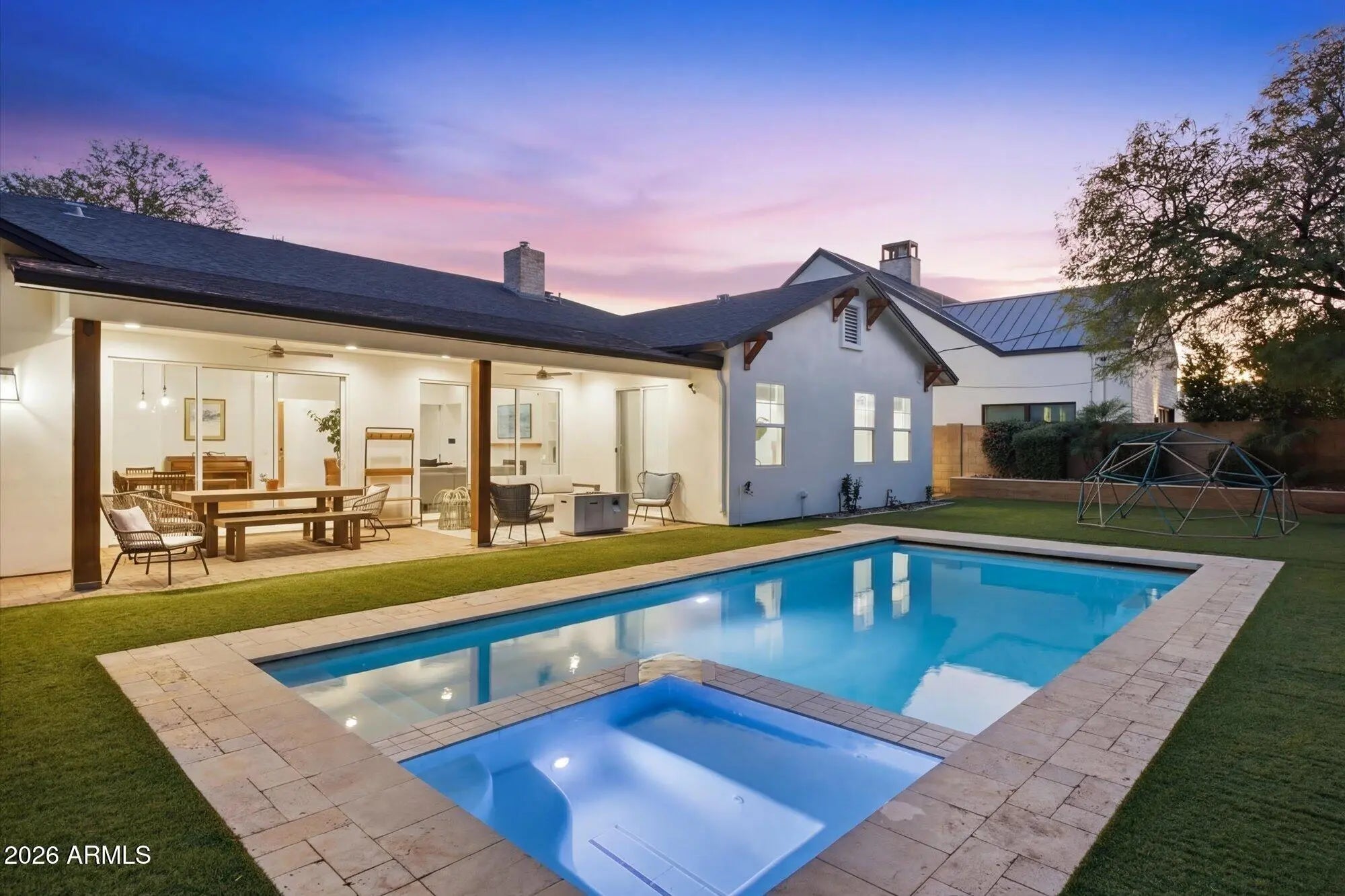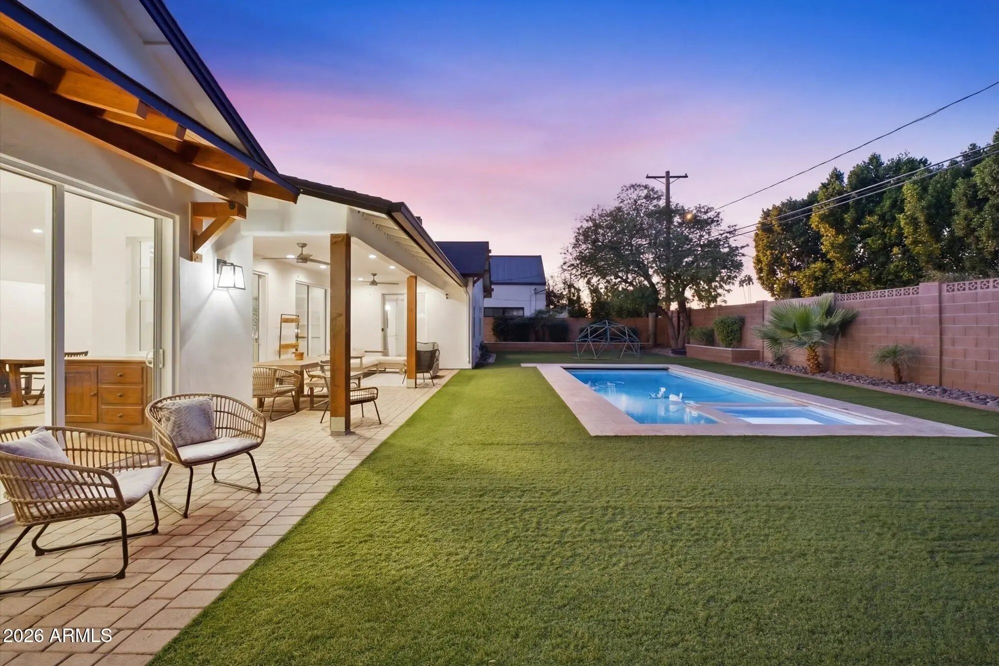 Arcadia Lite | Hopi Elementary | Newer Single-Level | Walk to LGO & Postino. Recently repositioned--now one of the most compelling values in Arcadia Lite. Rare 2018-built single-level home in a walkable location within the Hopi Elementary district. 2,801 sq ft with 4 bedrooms, 3 baths, including a guest en suite, plus a private den/office. Open great room with soaring ceilings and three oversized sliding doors for seamless indoor-outdoor living. Chef's kitchen with gas cooking, large island, and walk-in pantry. Backyard with heated pool, spa, electric cover, turf, and covered patio. Surrounded by single-level homes for rare privacy. RainSoft system + epoxy garage. Experience the Arcadia lifestyle--where generations return. Stroller Walk to Kachina park, LGO & Postinos. Run, bike the canal