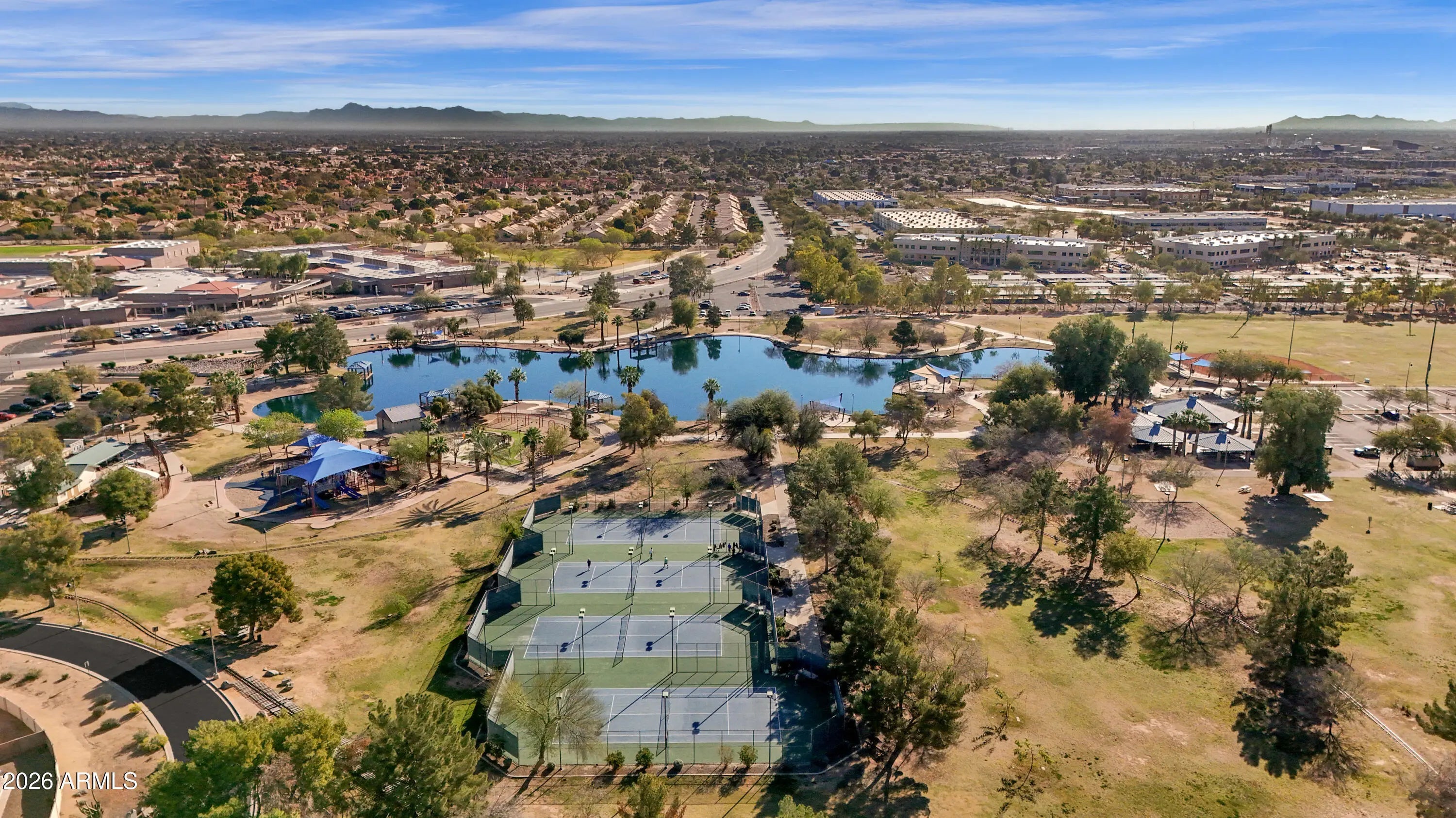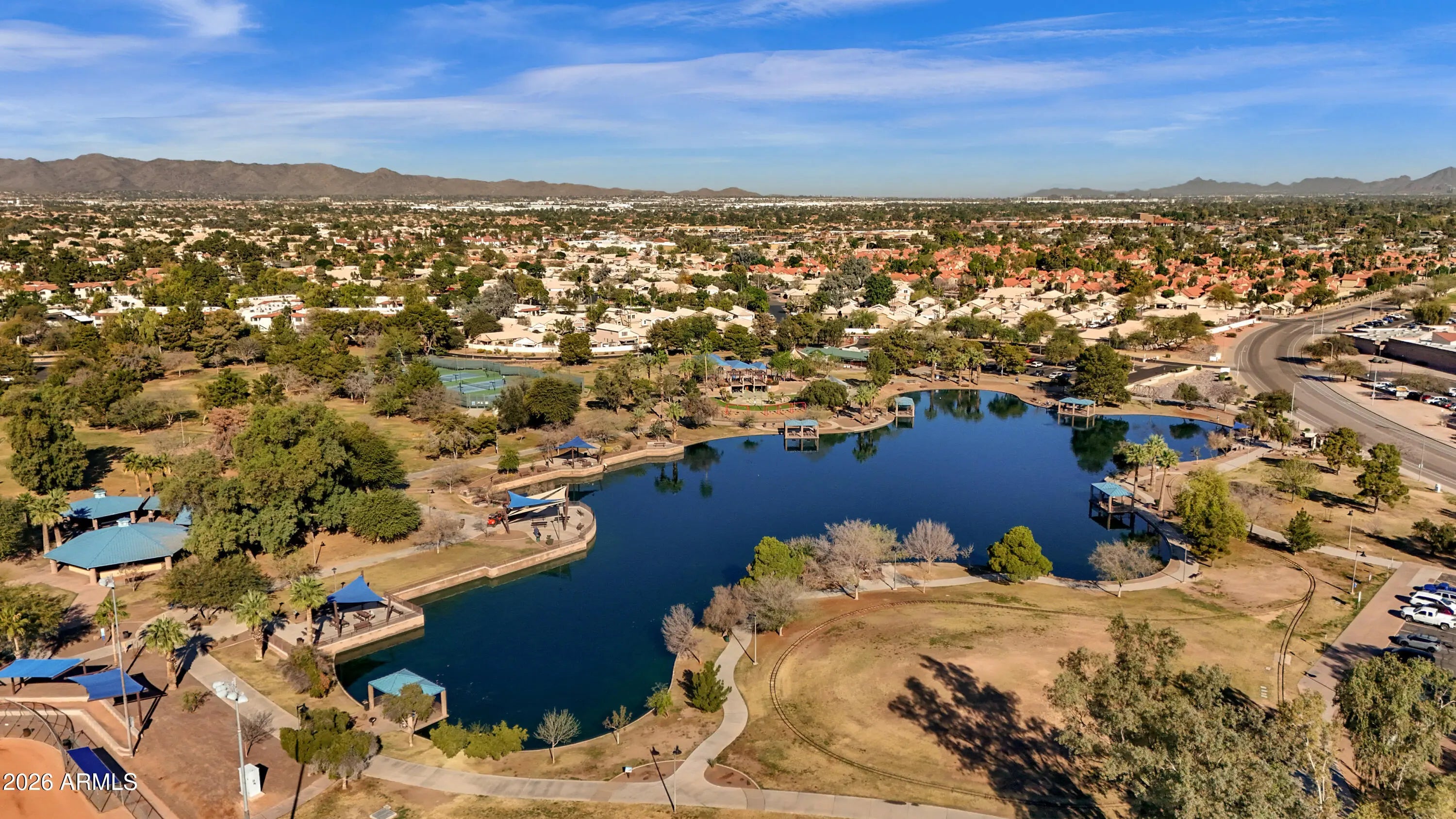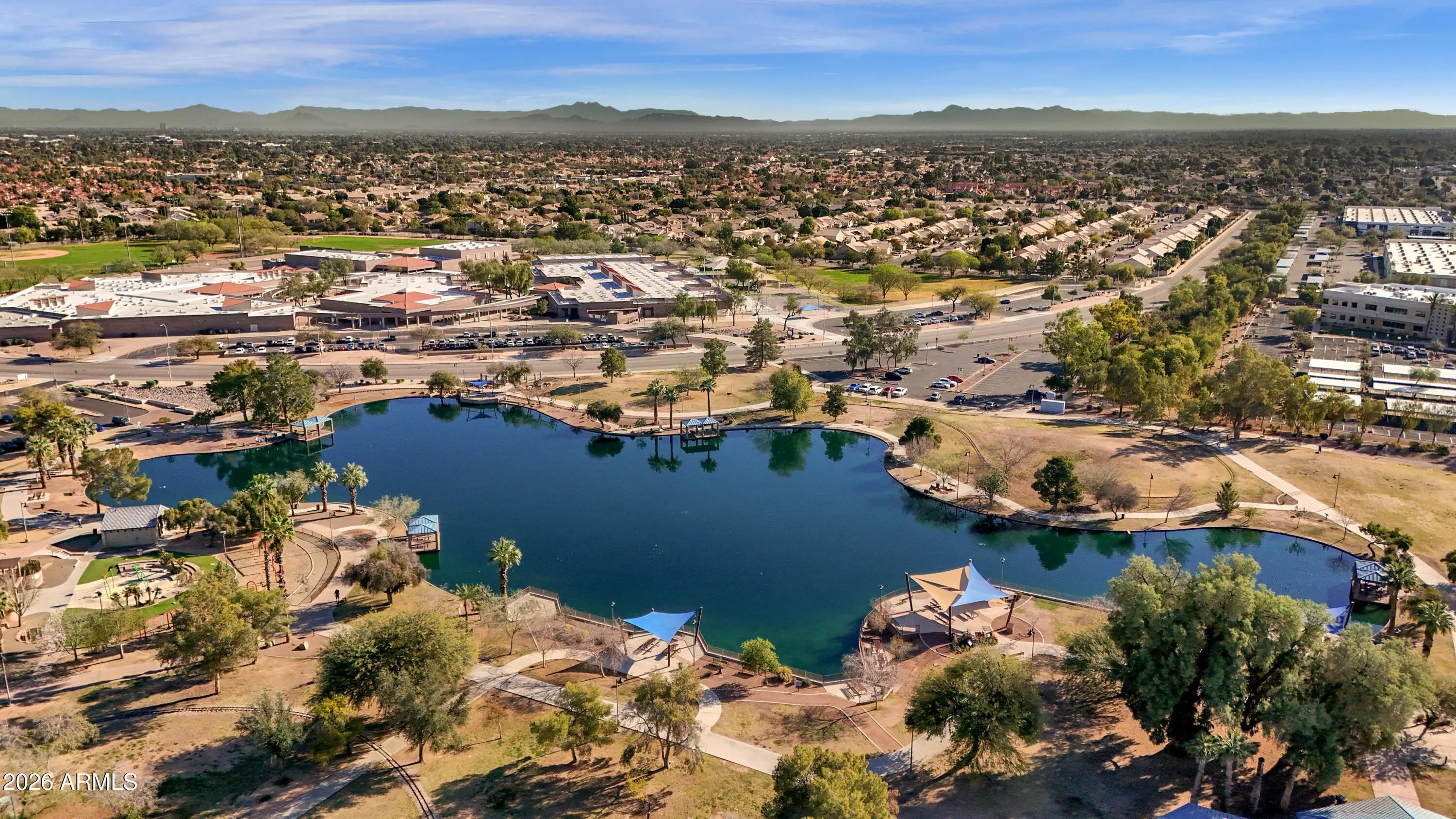 Location, Location, Location! Rare offering in this highly desired area. Quick access to Kyrene schools, Corona High school and Desert Breeze Park. This property is ready for its new owner offering a thoughtfully arranged floorplan of 3 bedrooms, two full baths. The vaulted ceilings adds to a spacious feel; the outdoor seating area is peaceful and private.. This home has upgraded E-rated windows and patio doors; stylish ceiling fans/light fixtures. Exterior has been recently painted and inside professionally cleaned. Amenities abound in this highly sought after subdivision. Located right across from the Desert Breeze Park offering lots of outdoor recreation, the train, playground, ball fields, bike riding and walking trails along the Lake.
