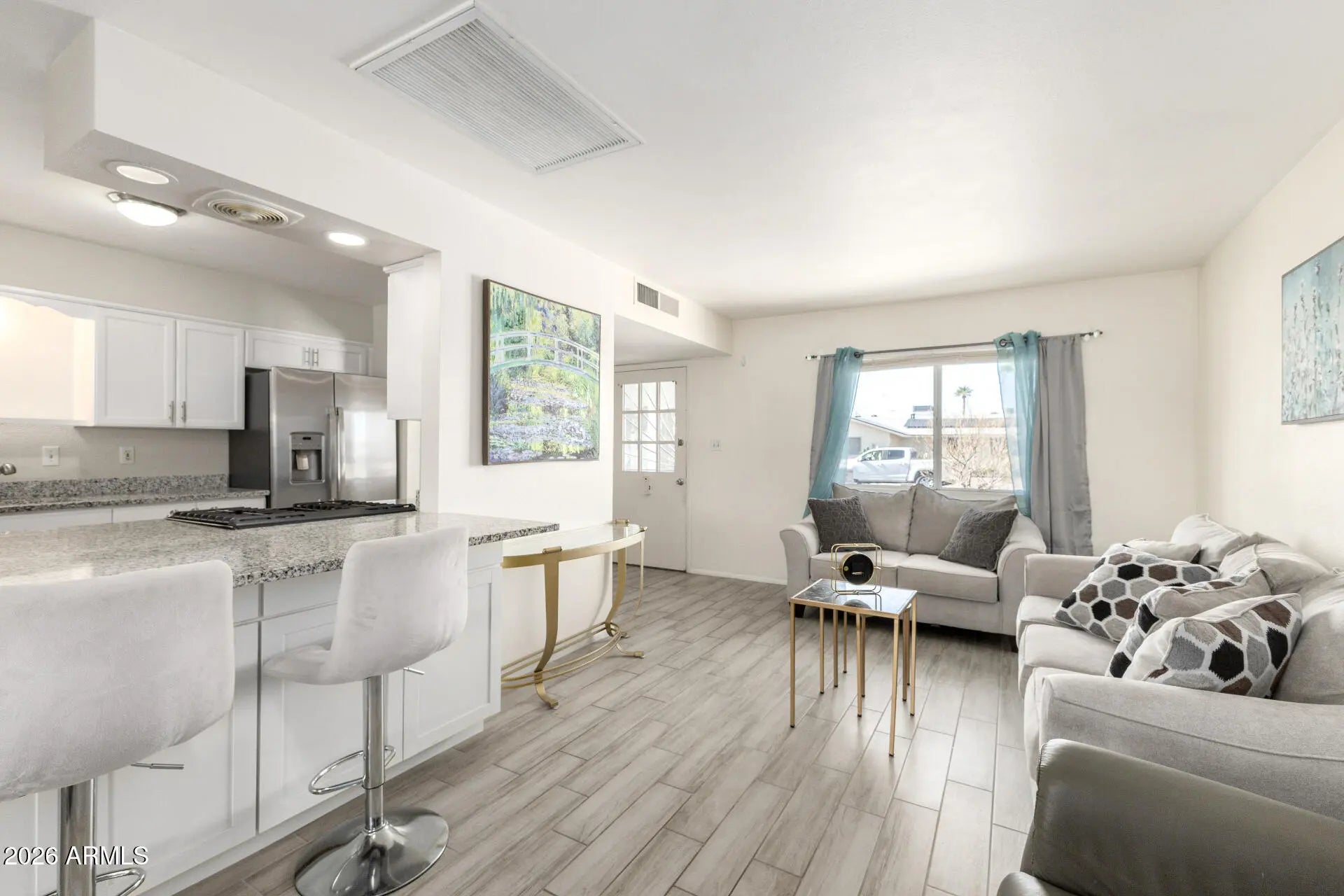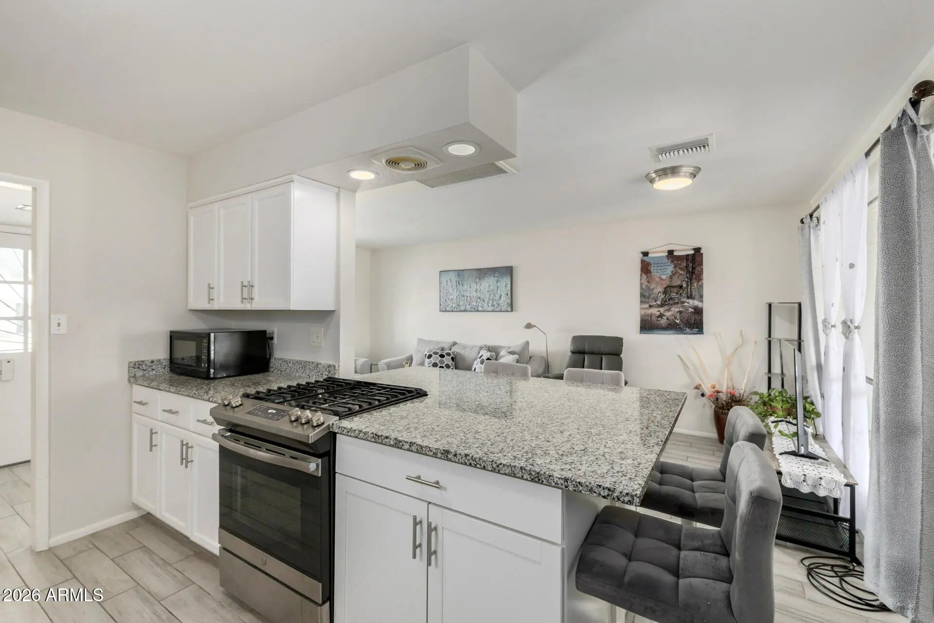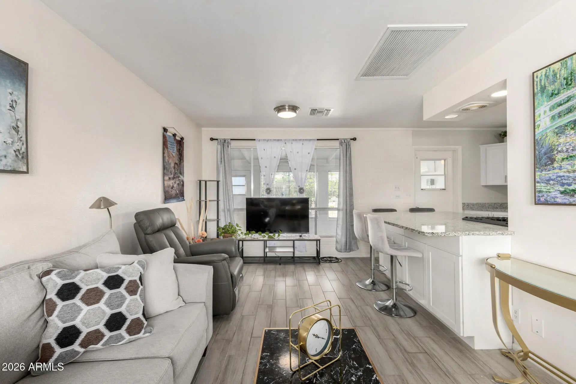 This beautifully updated and fully furnished 2-bedroom, 2-bath home is move-in ready and packed with upgrades! The stylish kitchen features granite countertops, a wrap-around breakfast bar, updated cabinetry and hardware, stainless steel appliances, and durable plank tile flooring that flows seamlessly throughout the home. The open-concept living and kitchen area creates a bright, welcoming space perfect for entertaining or relaxing. Both bathrooms have been thoughtfully updated with modern cabinets, and grab bars for added comfort and convenience. A spacious bonus room with Mini Split provides flexible space for a hobby room, office, or guest area. The home offers ample storage throughout. Built with solid block construction, the home also features a fully fenced backyard and easy-care desert landscaping -- ideal for low-maintenance living. Located in the vibrant community of Sun City, residents enjoy an active adult lifestyle with access to 8 golf courses and 8 recreation centers offering pools, tennis courts, pickleball courts, fitness facilities, clubs, and endless social opportunities. This is more than just a home -- it's the lifestyle you've been looking for!