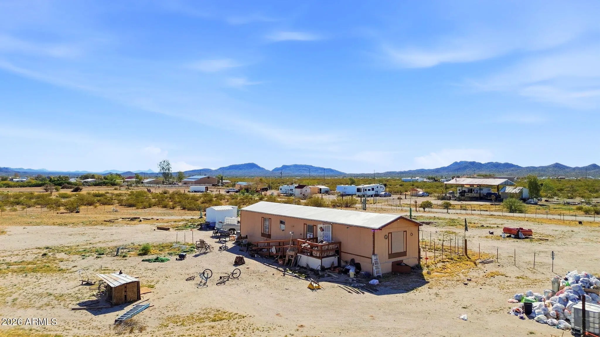 Nearly half an acre of level, improved land offers the perfect escape from cold northern winters and busy city life. Located in scenic, up-and-coming Salome, Arizona, this peaceful property is ideal for a winter retreat, full-time living, or investment opportunity. The fully fenced lot includes electric and septic and features a 700+ sq. ft. single-wide manufactured home with 3 bedrooms and 1 bathroom. Surrounded by desert beauty, enjoy easy access to ATV and hiking trails filled with towering saguaros, ocotillo, Joshua trees, and stunning mountain sunsets. Ride your ATV or golf cart into nearby Salome to enjoy local restaurants, watering holes, gas stations, and shops, with schools conveniently located in the surrounding area.