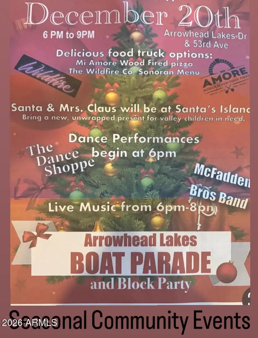 Discover the highly sought after Arrowhead Lakes community w/ private lake access for kayaking, fishing, and boating, plus a launch ramp just steps from your door. Enjoy scenic neighborhood parks, a trailhead to Thunderbird Mtn, & seasonal boat parades residents look forward to each year. This home features an open great room floor plan with vaulted ceilings, 3 bedrooms with walk-in closets, and a versatile flex room for dining or a home office. The eat-in kitchen includes all appliances and a bay window framing stunning mountain views. The split primary suite offers direct access to a spacious backyard with desirable N/S exposure. Updates include new bedroom carpet, fresh paint, new water heater, and newer HVAC. zoned for top-rated schools, and easy freeway access make this location ideal