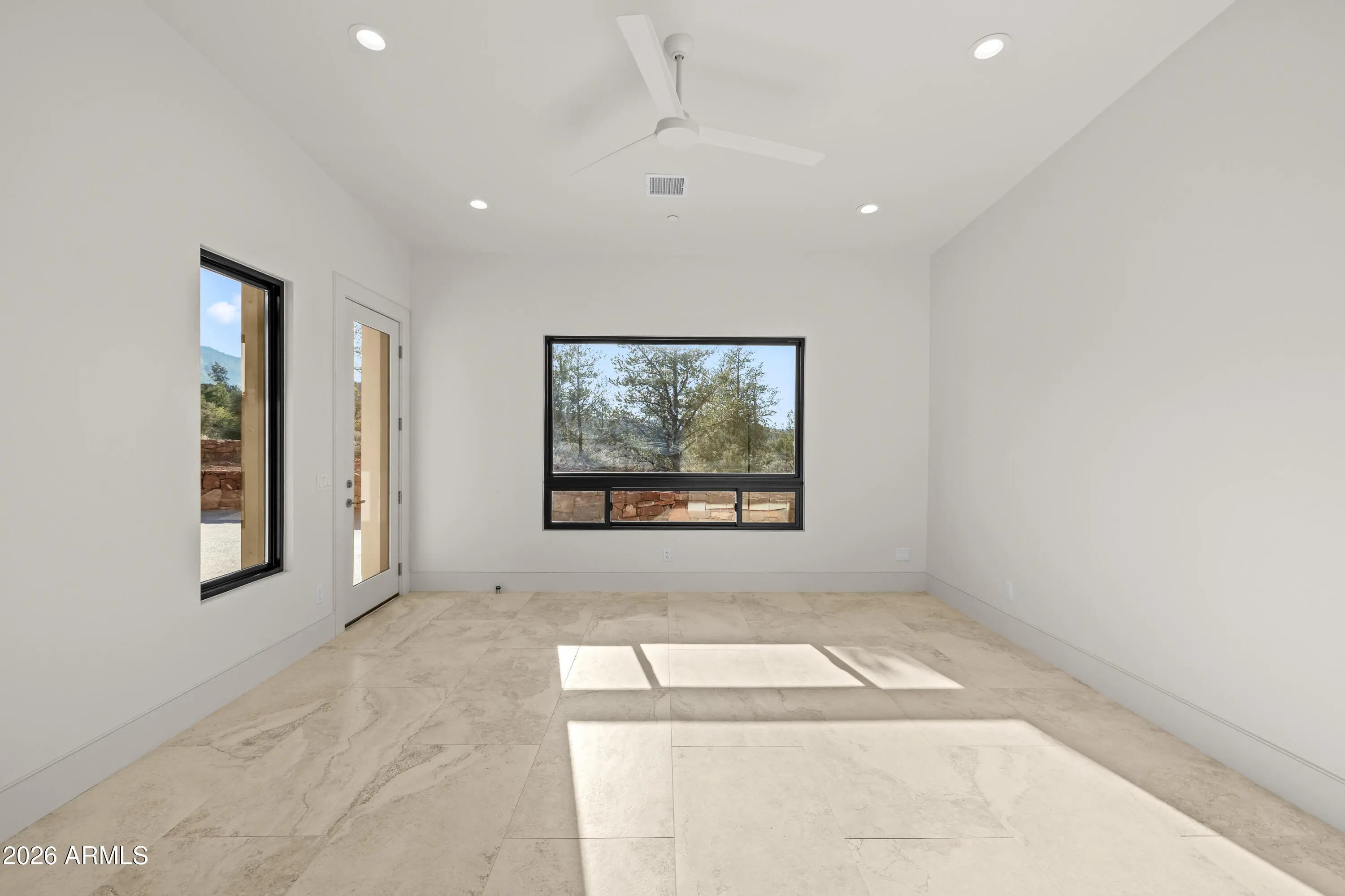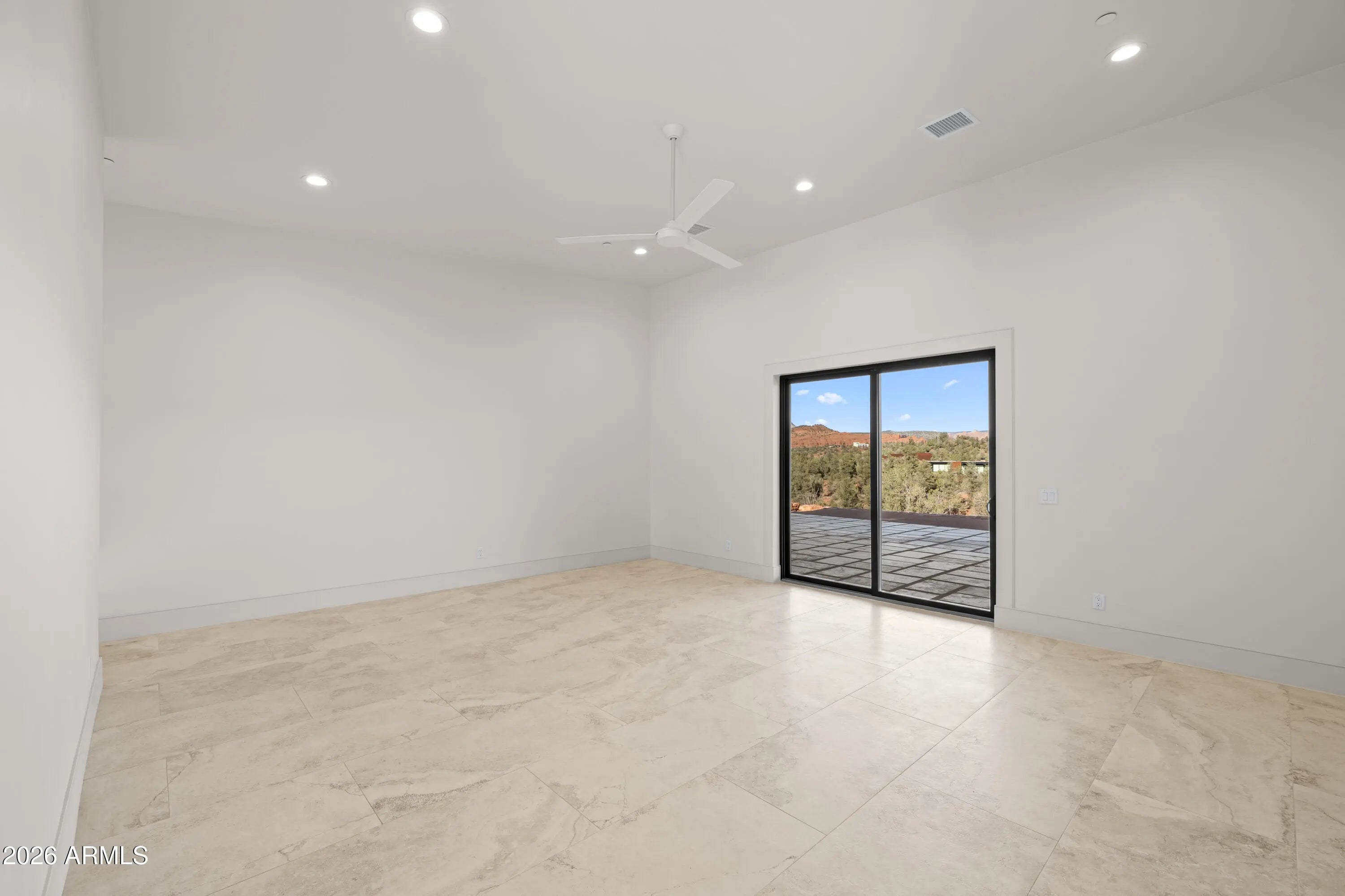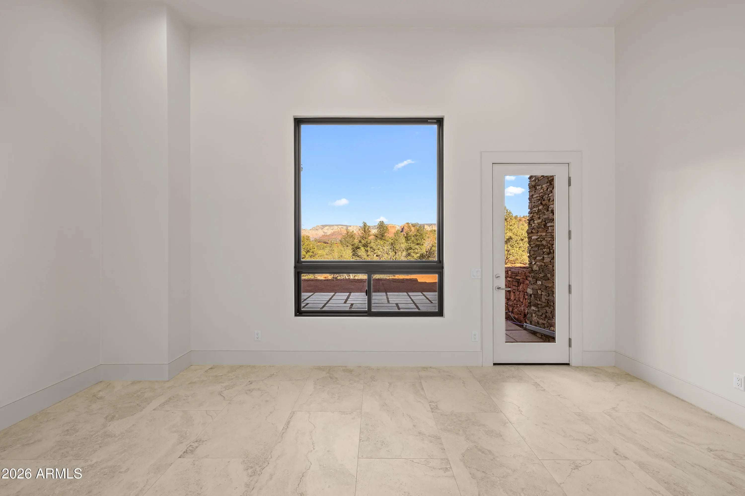 The perfect traffic-free location in Sedona. Feel an immediate sense of escape from the world within your indoor/outdoor backyard oasis of stunning panoramic views and zen-like tranquility. The tourists are on the other side of town. This high-end gated community affords easy access to Phoenix and beyond. A study in enduring construction, built with 8-inch insulated concrete forms (ICF), natural stone, fire-treated redwood, and a metal roof, the home was designed for longevity, resilience, and exceptional thermal performance. Thick walls create deep-set windows and a sense of permanence rarely found in contemporary builds. Cross-ventilation and expansive openings help keep the home comfortable for much of the year, minimizing the need for mechanical heating and cooling. Telescoping window glass doors dissolve the boundary between indoors and out, inviting gentle desert breezes and uninterrupted red rock vistas into the living spaces. At the heart of the home, an entertainer's kitchen and gathering space open seamlessly to a redwood-accented travertine terrace. A full wall of retracting glass frames Cathedral Rock in cinematic fashion, making for an unforgettable backdrop. The floor plan is intentionally scaled, intimate yet open. All the bedrooms have soundproof walls for privacy. The primary suite offers a serene retreat with an adjoining den, office, fitness studio, or optional bedroom. Two additional guest suites, each with private entrances and dramatic views, are designed with flexibility in mind. There is a new washing machine near the primary suite. In addition, there is a washer-dryer hookup in the garage. Plumbing and 220V power have been thoughtfully installed in the master and 4th bedroom to accommodate future concepts, an art studio, a caretaker kitchenette, or a wellness space. An extended 2.5 car garage with dramatic view windows and workshop-ready 220V service supports creative pursuits or collector needs. A sprinkler alarm will alert the local fire station in the event of a fire. Approach along a sweeping drive bordered by handcrafted red rock walls quarried directly from the site and reinforced with concrete and rebar. Real stacked-stone accent panels complement refined redwood details, creating a cohesive architectural narrative rooted in the land itself. The exterior is prepared for personalization: " Irrigation infrastructure and approved planting plans are in place " Stone-lined drainage washes installed " Power and plumbing are ready for a future spa or pool " Pebbled aggregate driveway and parking court for a polished arrival The home's neutral interior palette, Italian tile, quartz surfaces, and natural finishes provide a sophisticated blank canvas for a discerning owner's aesthetic vision. A rare natural Legacy, Cross Creek Ranch is one of Sedona's most treasured private enclaves, defined by lush meadows, cottonwood and sycamore groves, amber cliffs, and panoramic red rock vistas. Historic 1880s irrigation canals feed Oak Creek, creating a true oasis within the high desert. Modern convenience complements the tranquility, with newly installed fiber optic connectivity, providing seamless high-speed access for remote work and global connection. Seize this timely opportunity to acquire a custom-crafted Sedona estate built with intention, designed for longevity, and positioned within one of the region's most extraordinary private communities. Cross Creek Ranch has several access points into Red Rock State Park, where the hiking options are endless. For the buyer who values privacy, architectural substance, and an immersive connection to nature, this is Sedona at its most refined.