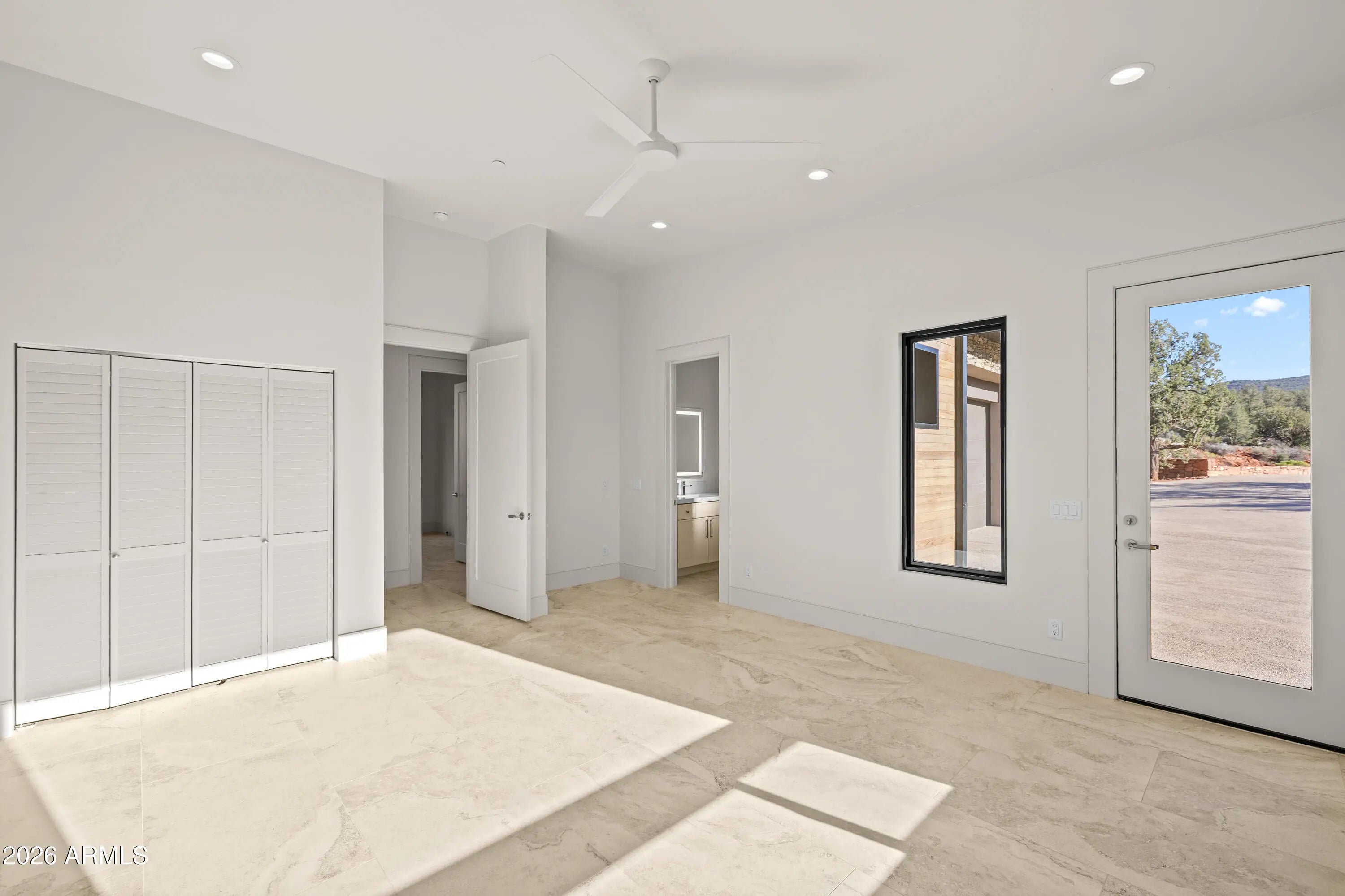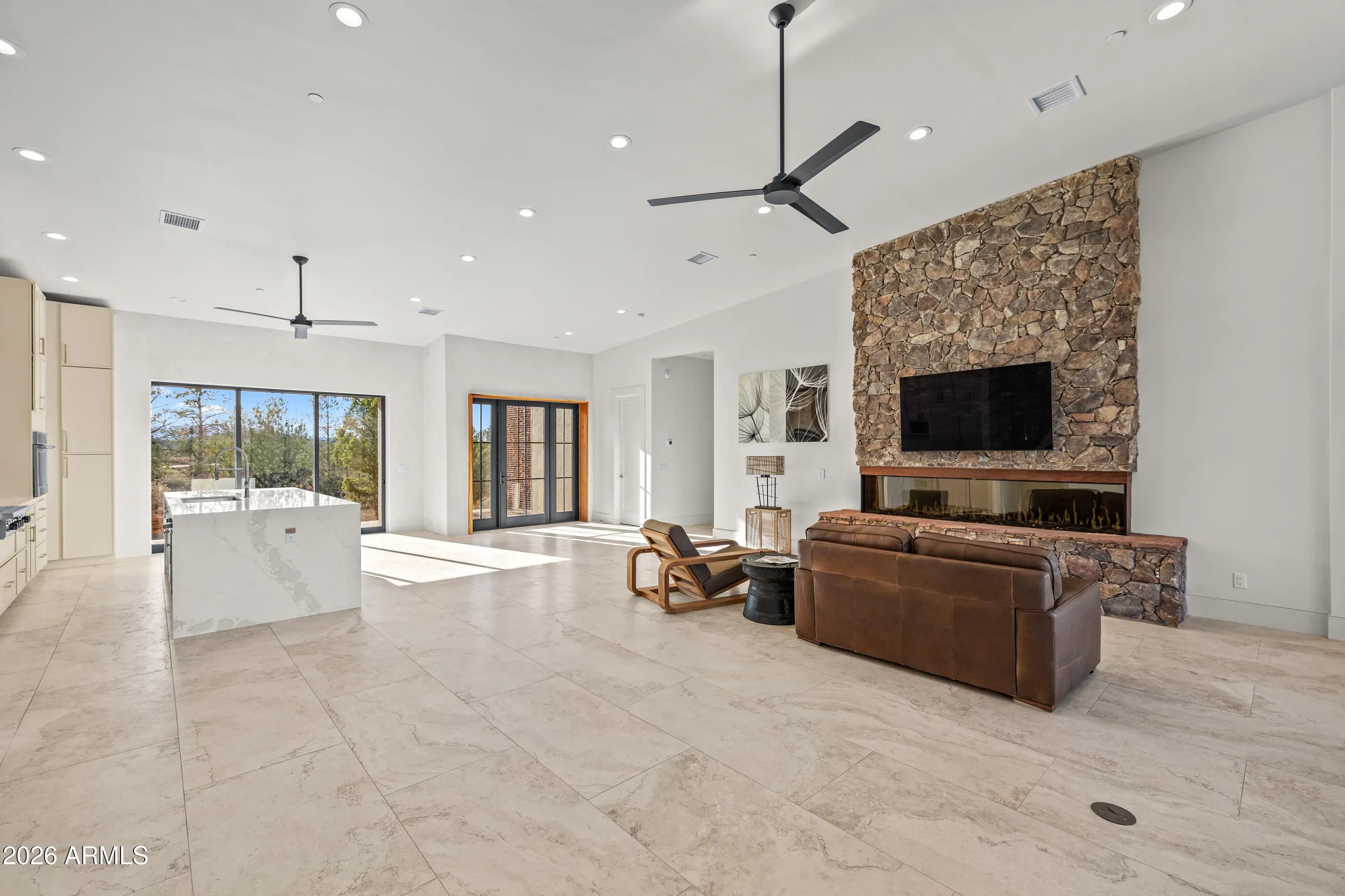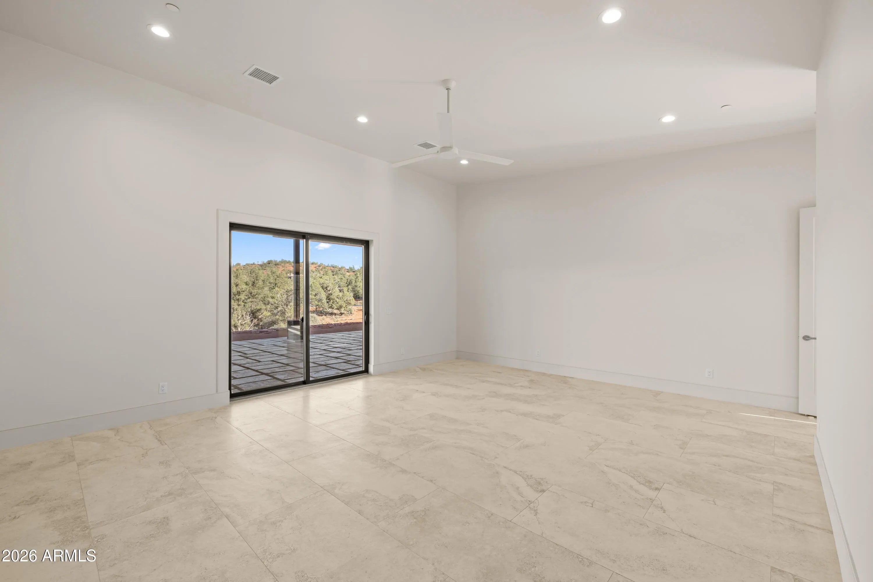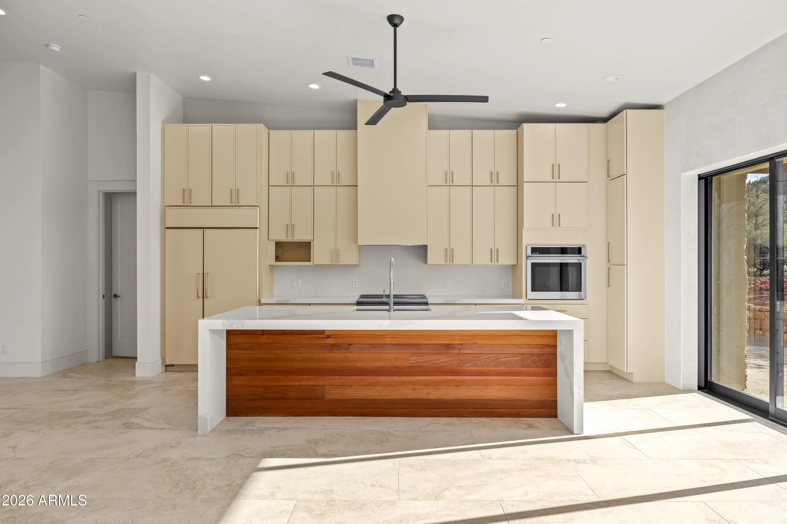 The perfect traffic-free location in Sedona. Feel an immediate sense of escape from the world within your indoor/outdoor backyard oasis of stunning panoramic views and zen-like tranquility. The tourists are on the other side of town. This high-end gated community affords easy access to Phoenix and beyond. A study in enduring construction, built with 8-inch insulated concrete forms (ICF), natural stone, fire-treated redwood, and a metal roof, the home was designed for longevity, resilience, and exceptional thermal performance. Thick walls create deep-set windows and a sense of permanence rarely found in contemporary builds. Cross-ventilation and expansive openings help keep the home comfortable for much of the year, minimizing the need for mechanical heating and cooling. Telescoping window glass doors dissolve the boundary between indoors and out, inviting gentle desert breezes and uninterrupted red rock vistas into the living spaces. At the heart of the home, an entertainer's kitchen and gathering space open seamlessly to a redwood-accented travertine terrace. A full wall of retracting glass frames Cathedral Rock in cinematic fashion, making for an unforgettable backdrop. The floor plan is intentionally scaled, intimate yet open. All the bedrooms have soundproof walls for privacy. The primary suite offers a serene retreat with an adjoining den, office, fitness studio, or optional bedroom. Two additional guest suites, each with private entrances and dramatic views, are designed with flexibility in mind. There is a new washing machine near the primary suite. In addition, there is a washer-dryer hookup in the garage. Plumbing and 220V power have been thoughtfully installed in the master and 4th bedroom to accommodate future concepts, an art studio, a caretaker kitchenette, or a wellness space. An extended 2.5 car garage with dramatic view windows and workshop-ready 220V service supports creative pursuits or collector needs. A sprinkler alarm will alert the local fire station in the event of a fire. Approach along a sweeping drive bordered by handcrafted red rock walls quarried directly from the site and reinforced with concrete and rebar. Real stacked-stone accent panels complement refined redwood details, creating a cohesive architectural narrative rooted in the land itself. The exterior is prepared for personalization: " Irrigation infrastructure and approved planting plans are in place " Stone-lined drainage washes installed " Power and plumbing are ready for a future spa or pool " Pebbled aggregate driveway and parking court for a polished arrival The home's neutral interior palette, Italian tile, quartz surfaces, and natural finishes provide a sophisticated blank canvas for a discerning owner's aesthetic vision. A rare natural Legacy, Cross Creek Ranch is one of Sedona's most treasured private enclaves, defined by lush meadows, cottonwood and sycamore groves, amber cliffs, and panoramic red rock vistas. Historic 1880s irrigation canals feed Oak Creek, creating a true oasis within the high desert. Modern convenience complements the tranquility, with newly installed fiber optic connectivity, providing seamless high-speed access for remote work and global connection. Seize this timely opportunity to acquire a custom-crafted Sedona estate built with intention, designed for longevity, and positioned within one of the region's most extraordinary private communities. Cross Creek Ranch has several access points into Red Rock State Park, where the hiking options are endless. For the buyer who values privacy, architectural substance, and an immersive connection to nature, this is Sedona at its most refined.