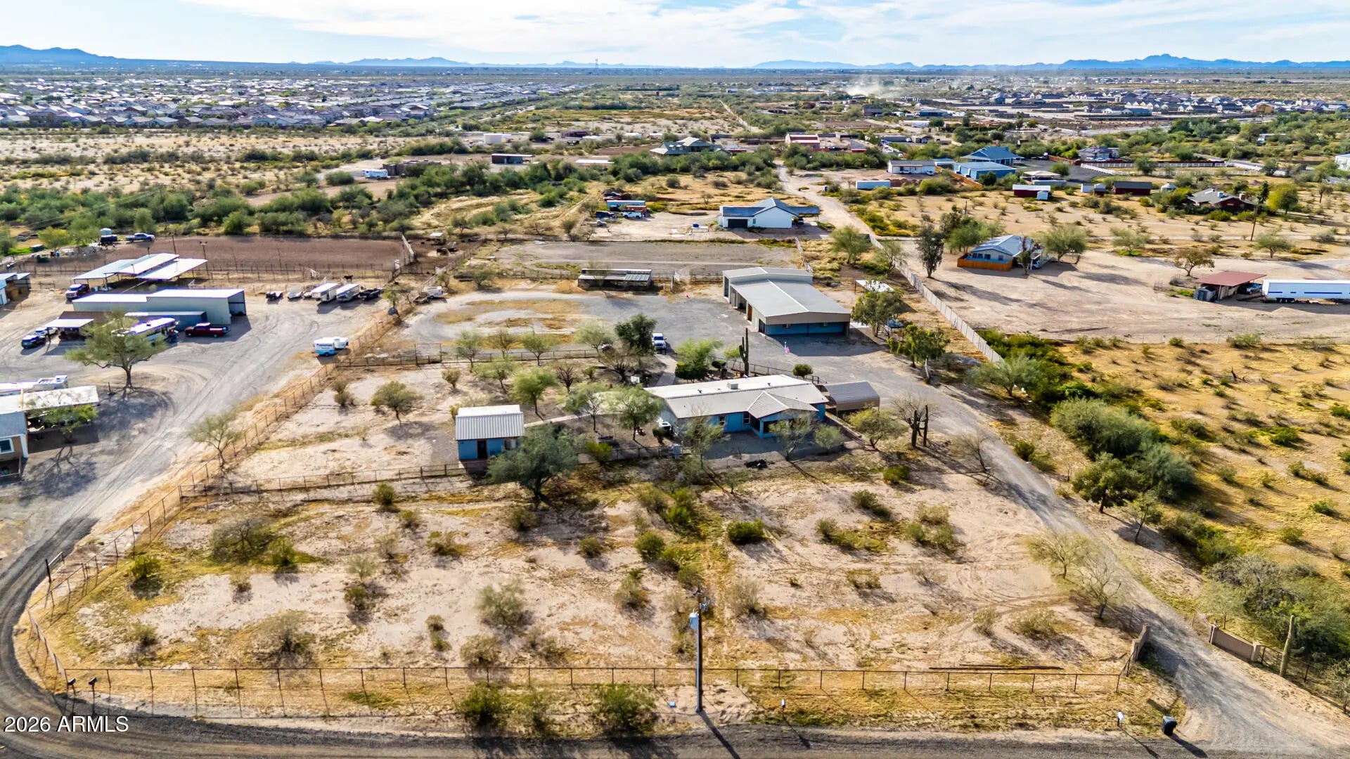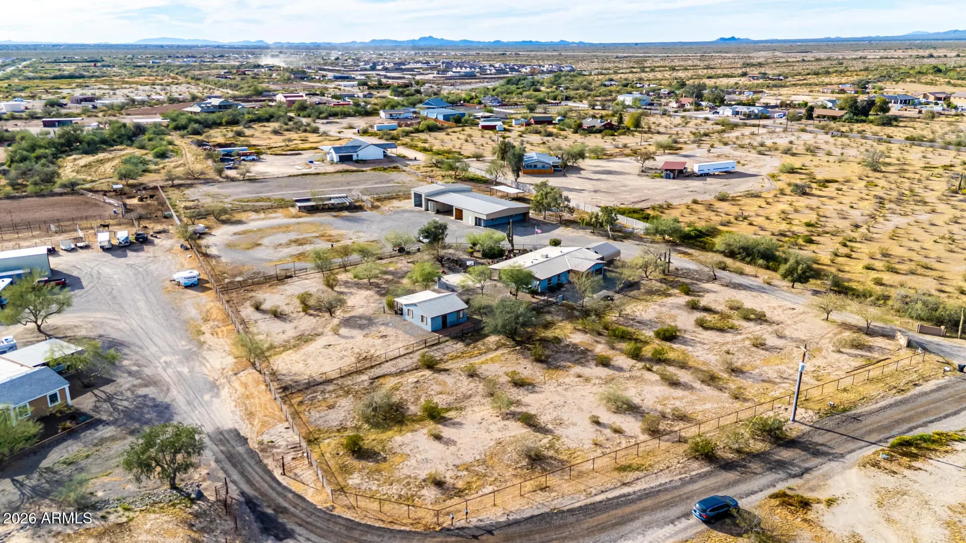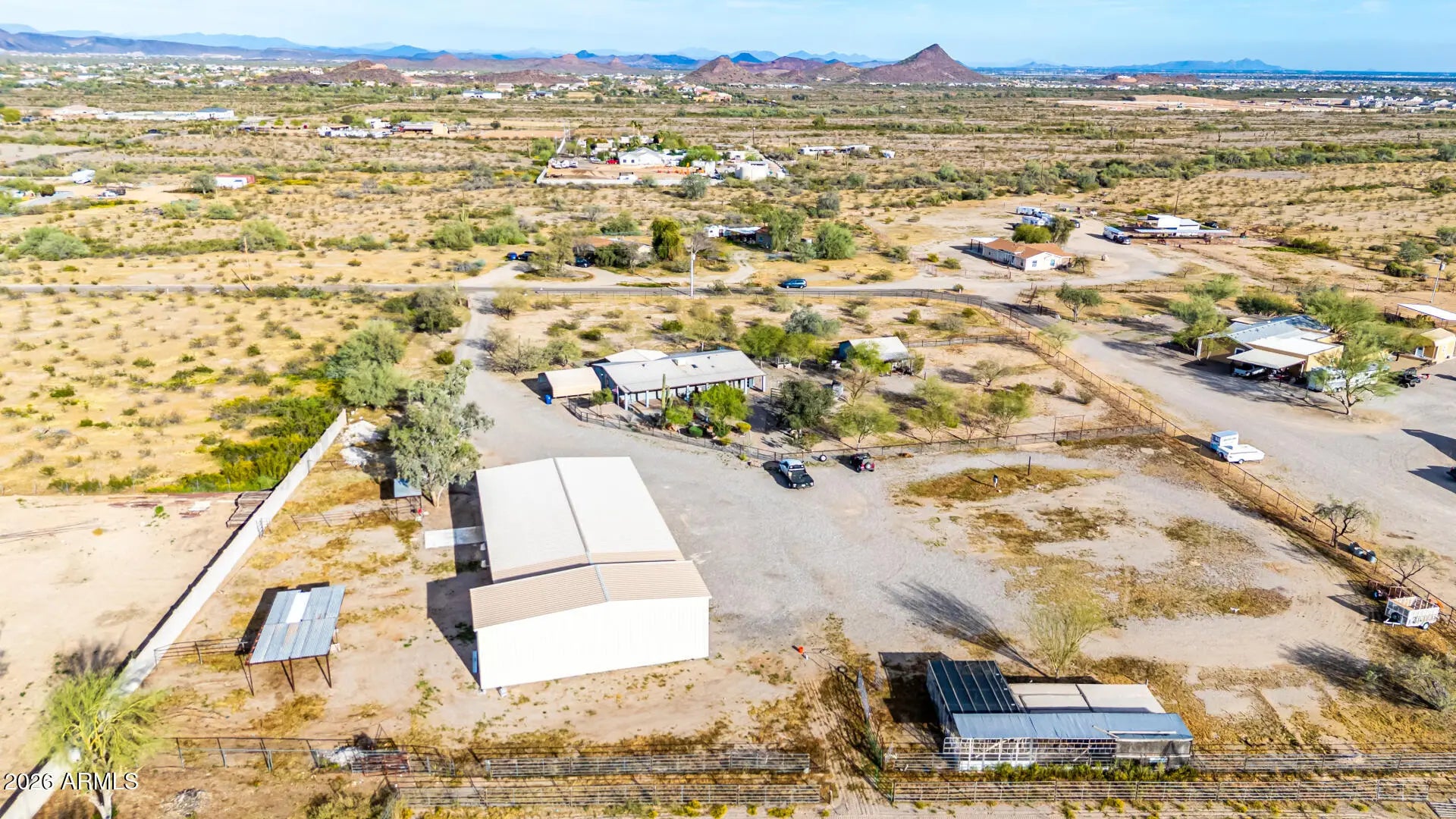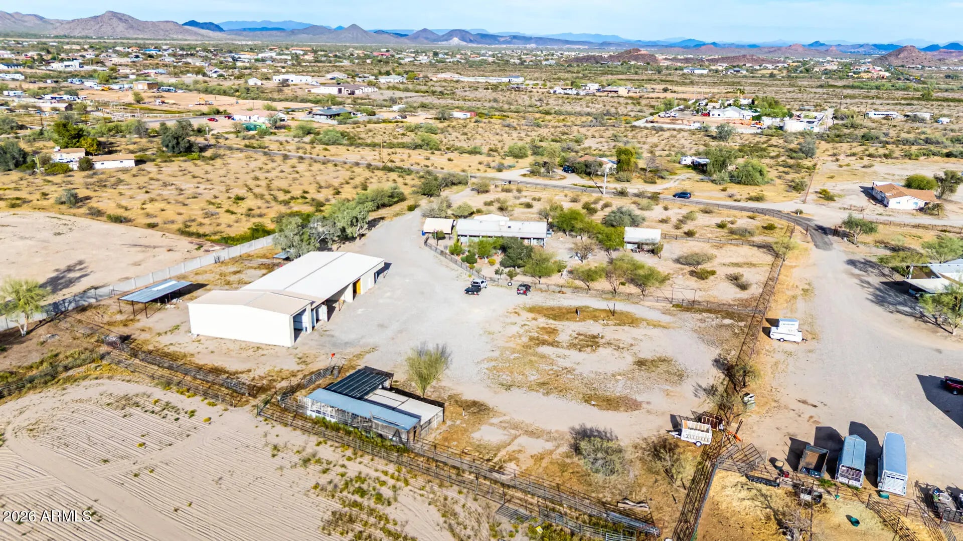 Check out this beautiful home now for sale in Surprise! Nestled on a HUGE 5 acre lot & featuring detached a detached workshop w/carport & RV parking including 4 RV hook ups as well as stalls for horses and full size roping arena area, this is sure to be the home you've been looking for! Inside you will find spacious dining & living areas w/vaulted ceilings,, and custom palette throughout. The fabulous kitchen offers ample cabinetry w/granite counters, all the SS appliances you'll need for home cooking, a center island, and a skylight. You'll love the primary suite, boasting plantation shutters, a walk-in closet, and a lavish bath w/dual sinks. Separate guest house also includes its own living area and kitchen! Your new home is waiting for you, hurry and act no