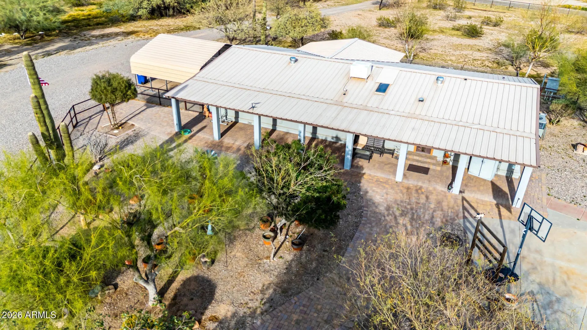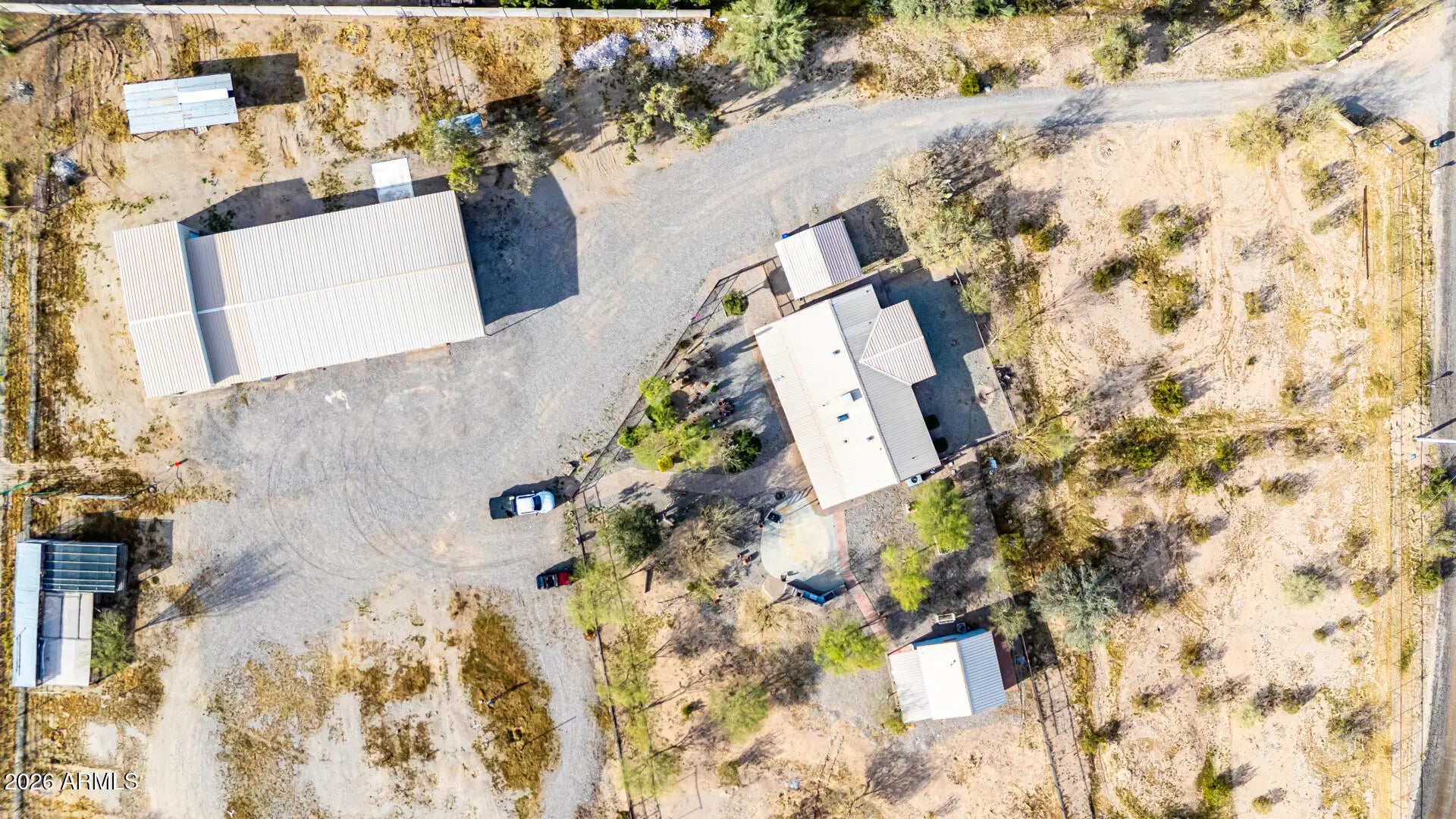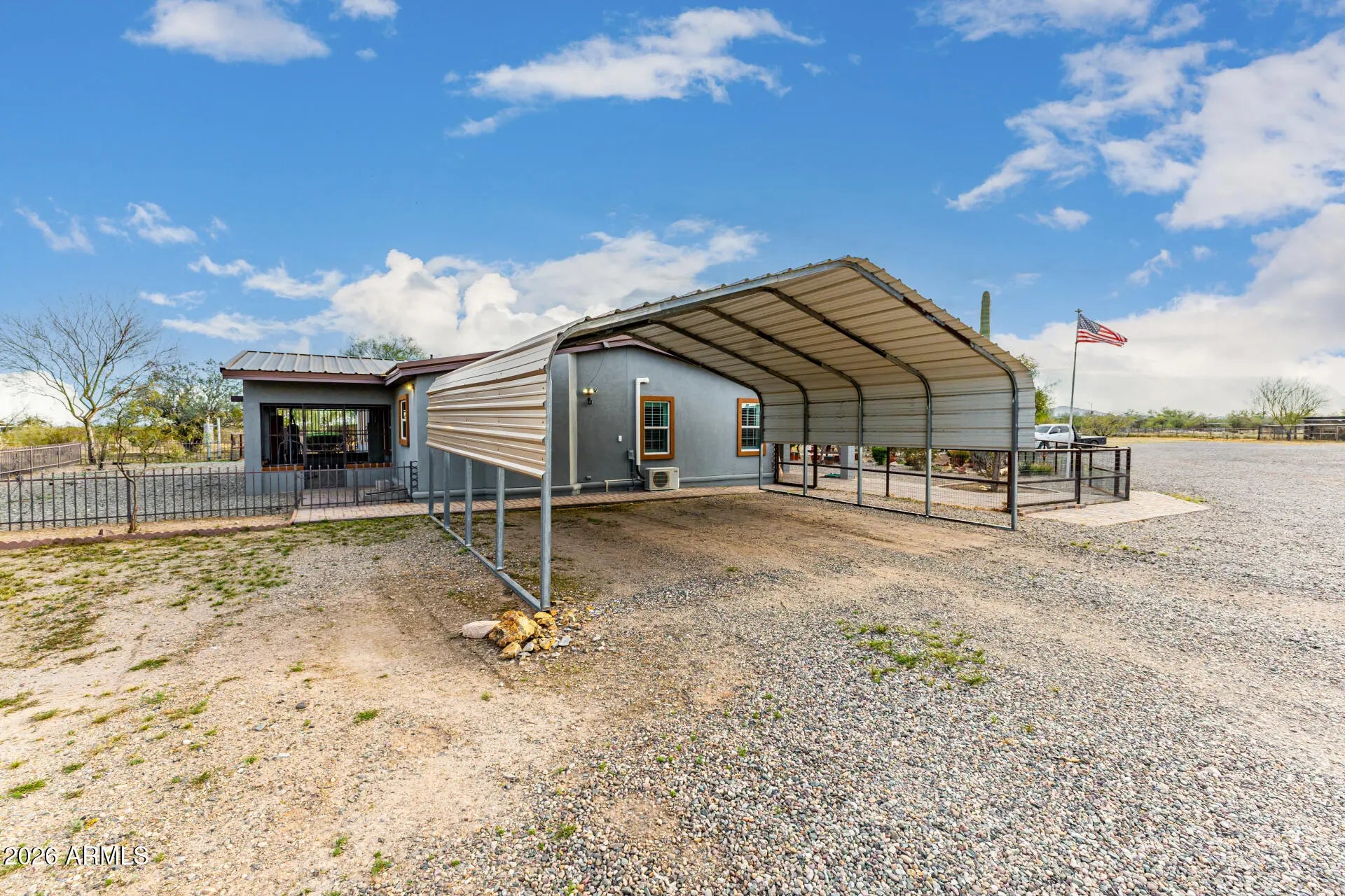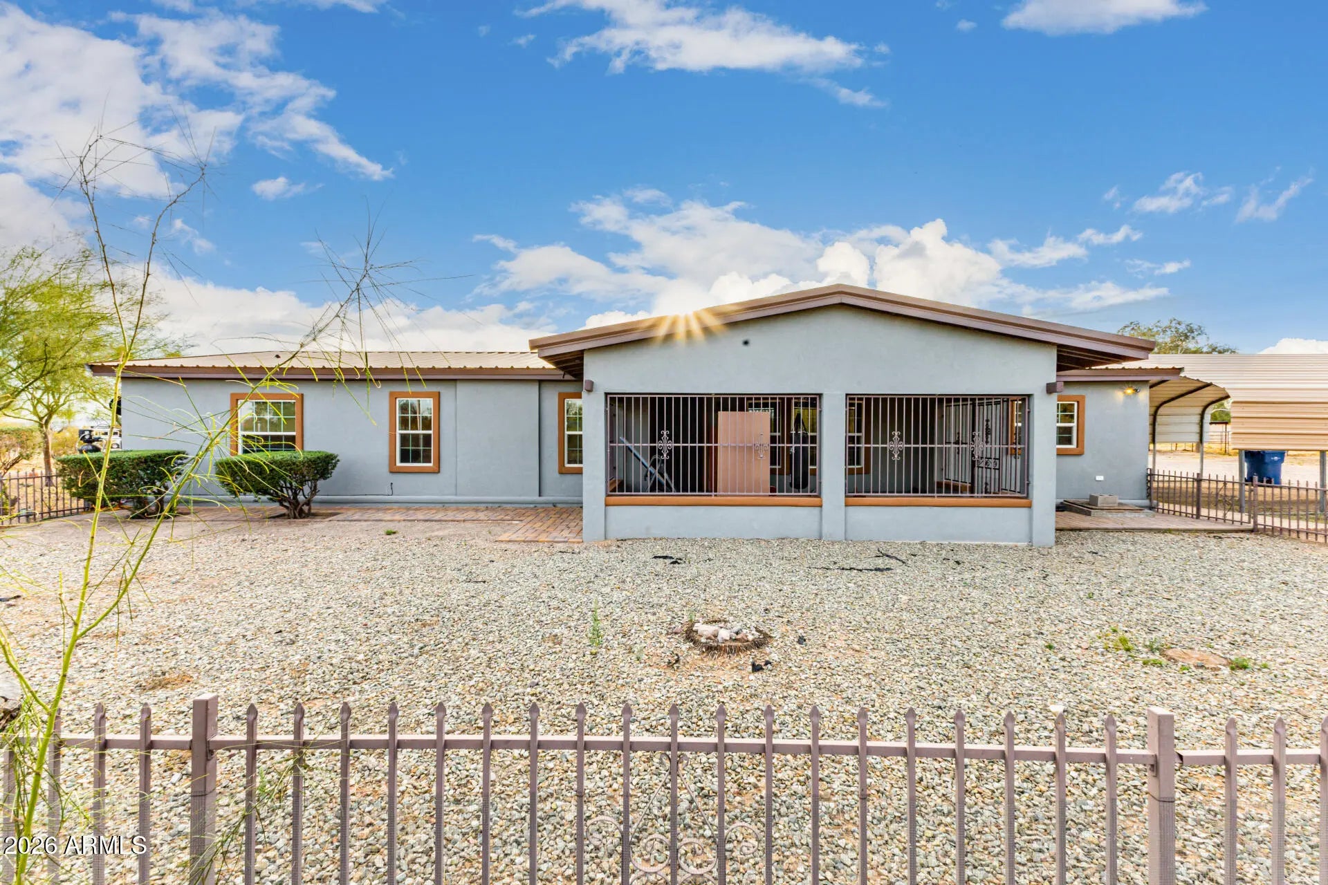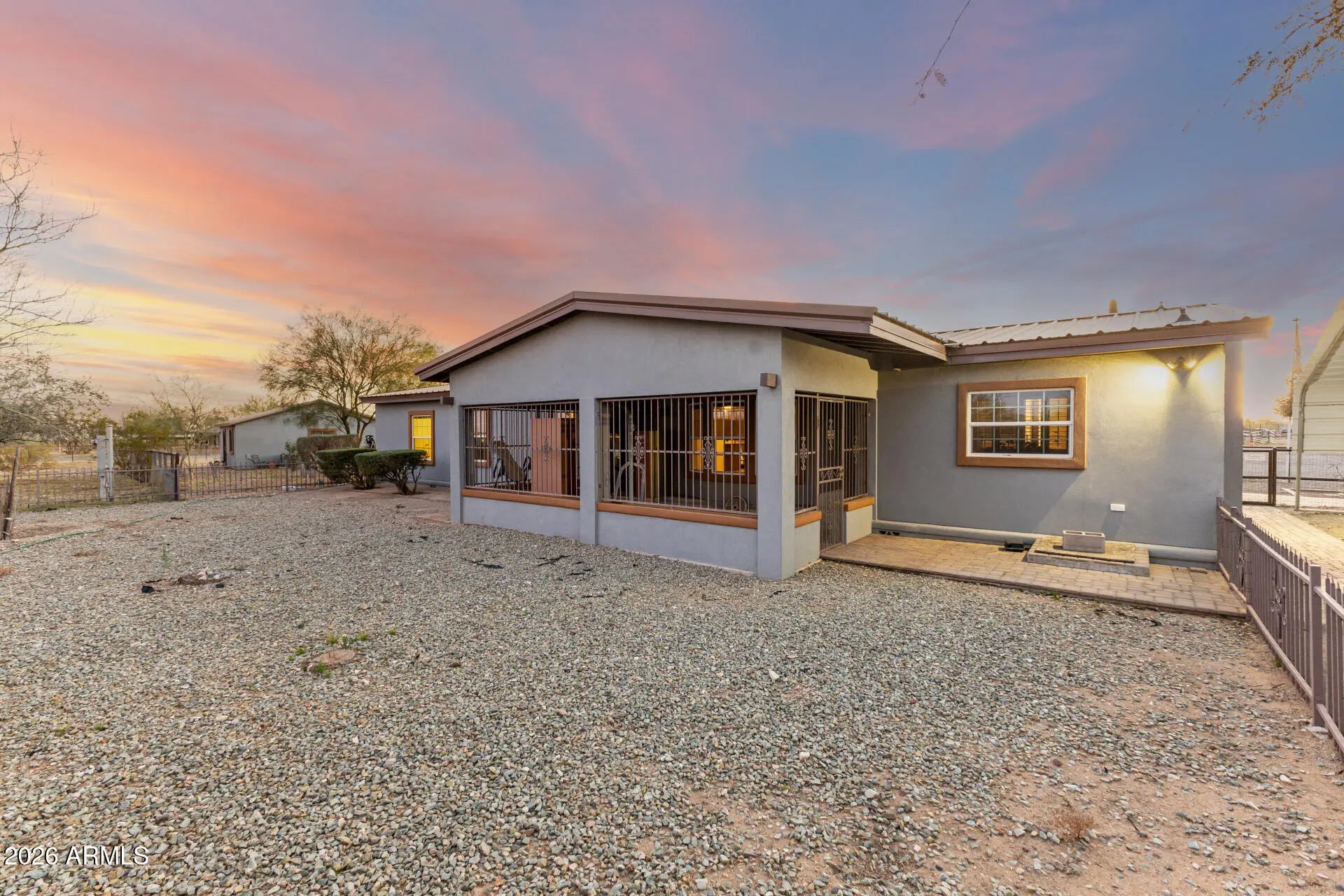 Check out this beautiful home now for sale in Surprise! Nestled on a HUGE 5 acre lot & featuring detached a detached workshop w/carport & RV parking including 4 RV hook ups as well as stalls for horses and full size roping arena area, this is sure to be the home you've been looking for! Inside you will find spacious dining & living areas w/vaulted ceilings,, and custom palette throughout. The fabulous kitchen offers ample cabinetry w/granite counters, all the SS appliances you'll need for home cooking, a center island, and a skylight. You'll love the primary suite, boasting plantation shutters, a walk-in closet, and a lavish bath w/dual sinks. Separate guest house also includes its own living area and kitchen! Your new home is waiting for you, hurry and act no