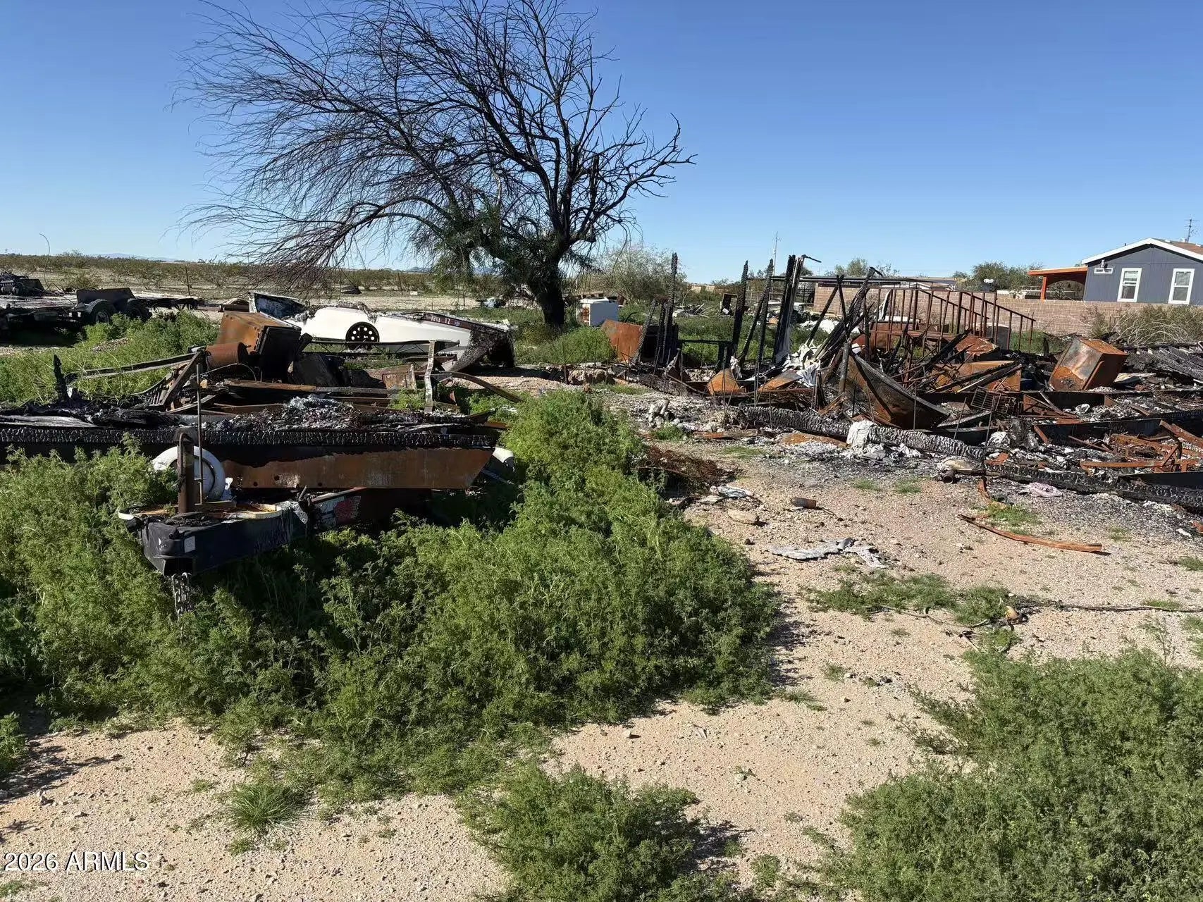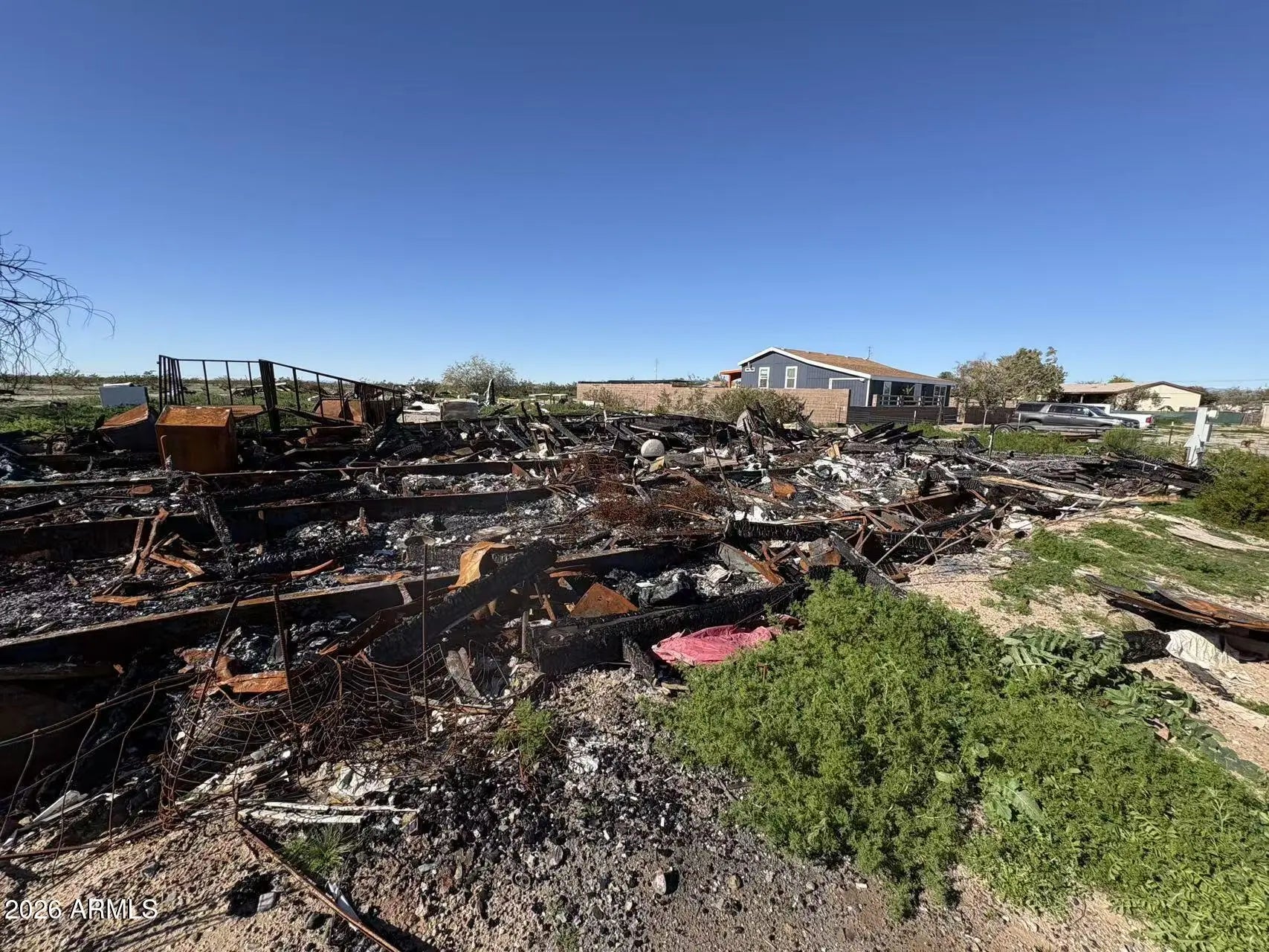 Excellent investment or renovation opportunity! This property has sustained fire damage and is being sold as-is, offering a blank canvas to rebuild and design to your specifications. Scenic mountain views, backing to unfenced county land, and no rear neighbors provide added privacy and open-space surroundings. Horse & Horse enthusiast can enjoy the great open spaces & ride for miles. Electric is connected. Shared well and septic system in place. Please submit offers after touring the property. Serious inquiries only--seller will not entertain low offers. The property used to be mobile home with 4B/2BA, 2,433 sqft. The last two pictures were taken before the fire damage and is for reference only.