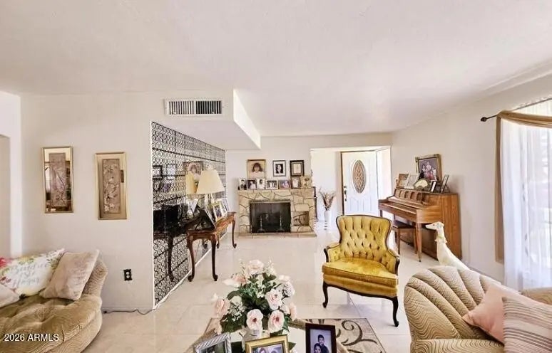 Meticulously maintained 4-bedroom, 1.75-bath home, it's move-in ready. Perfect for families & entertainers alike. Step inside to be greeted by elegant tile flooring throughout, leading you to a spacious formal living area featuring a cozy fireplace & a formal dining area. The well-appointed kitchen boasts ample cabinet space, making it an ideal space for gatherings. Just off the kitchen, a charming family room awaits, complete with its own fireplace, providing a warm & inviting atmosphere. The master suite offers a convenient vanity, a private shower & garden tub area. The exterior of the home is just as impressive, with beautifully manicured front & backyard spaces, blank canvas' awaiting your creations!