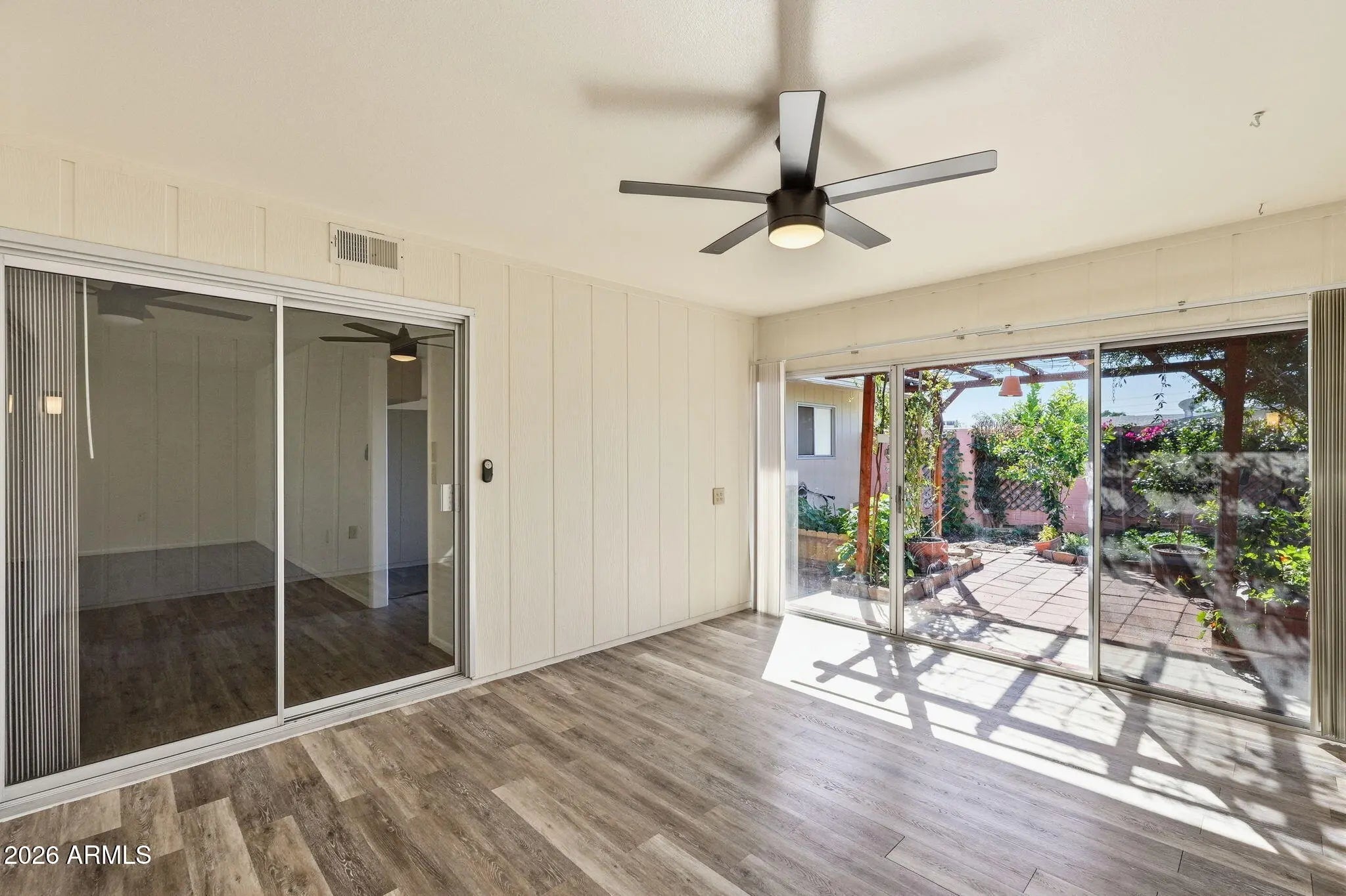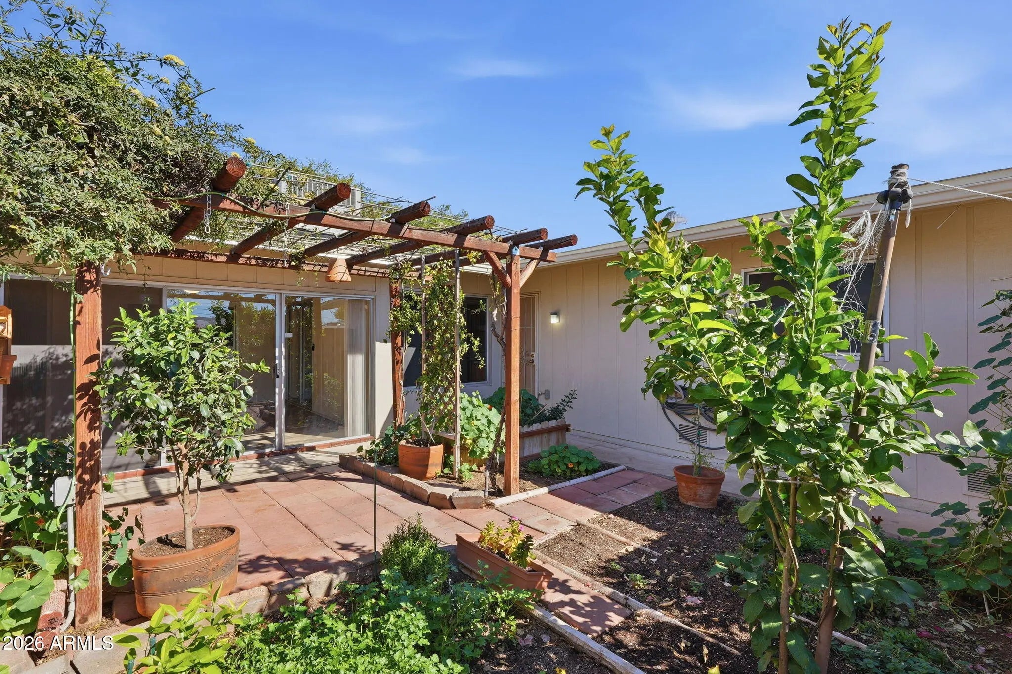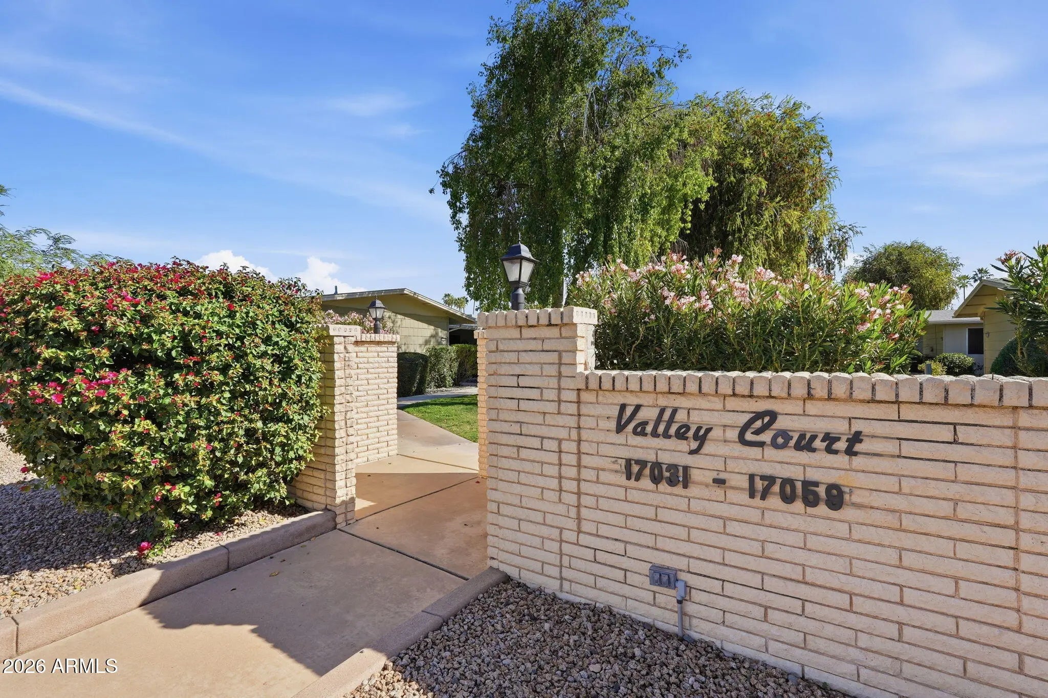 Charming 2 bedroom, 2 bath apartment-style home featuring a beautiful grassy courtyard and a newer HVAC system for year-round comfort. Spacious living and dining areas flow into a bright Arizona room with laminate flooring--perfect for crafts, hobbies, or a home office. Both bathrooms offer convenient walk-in showers. The backyard is ready for your gardening ideas, and pets are welcome. Ideally located close to shopping, dining, and medical facilities, this home offers comfort, convenience, and easy living.